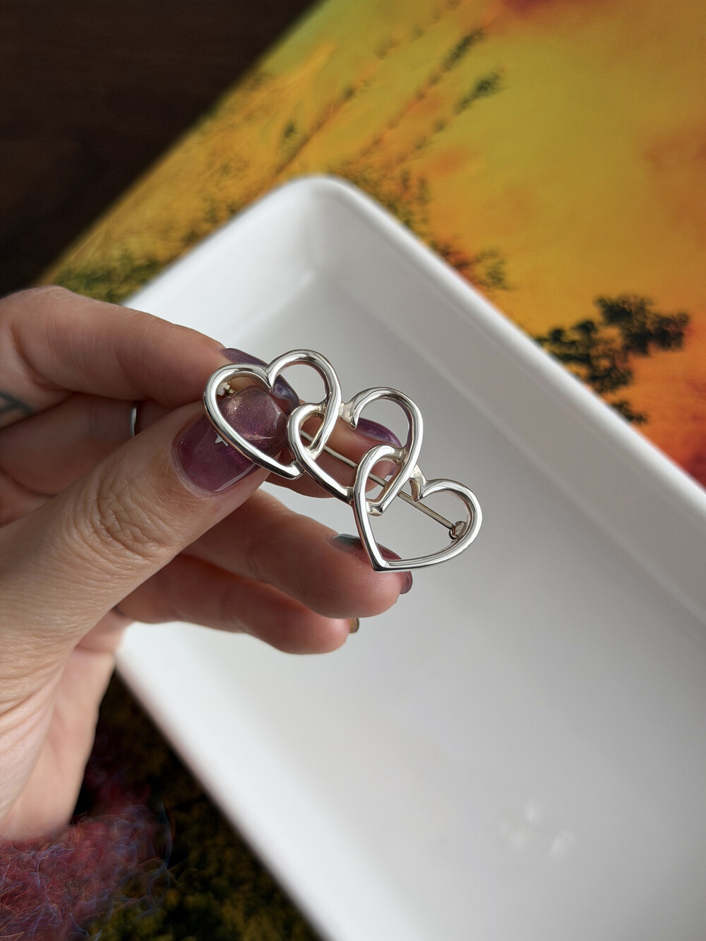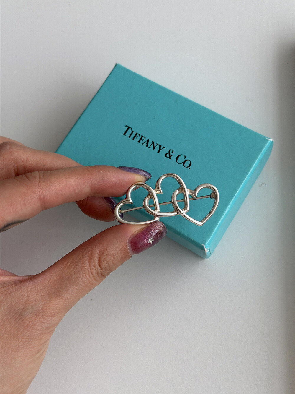 빈티지 Tiffany & Co. 트리플 오픈 하트 브로치입니다.