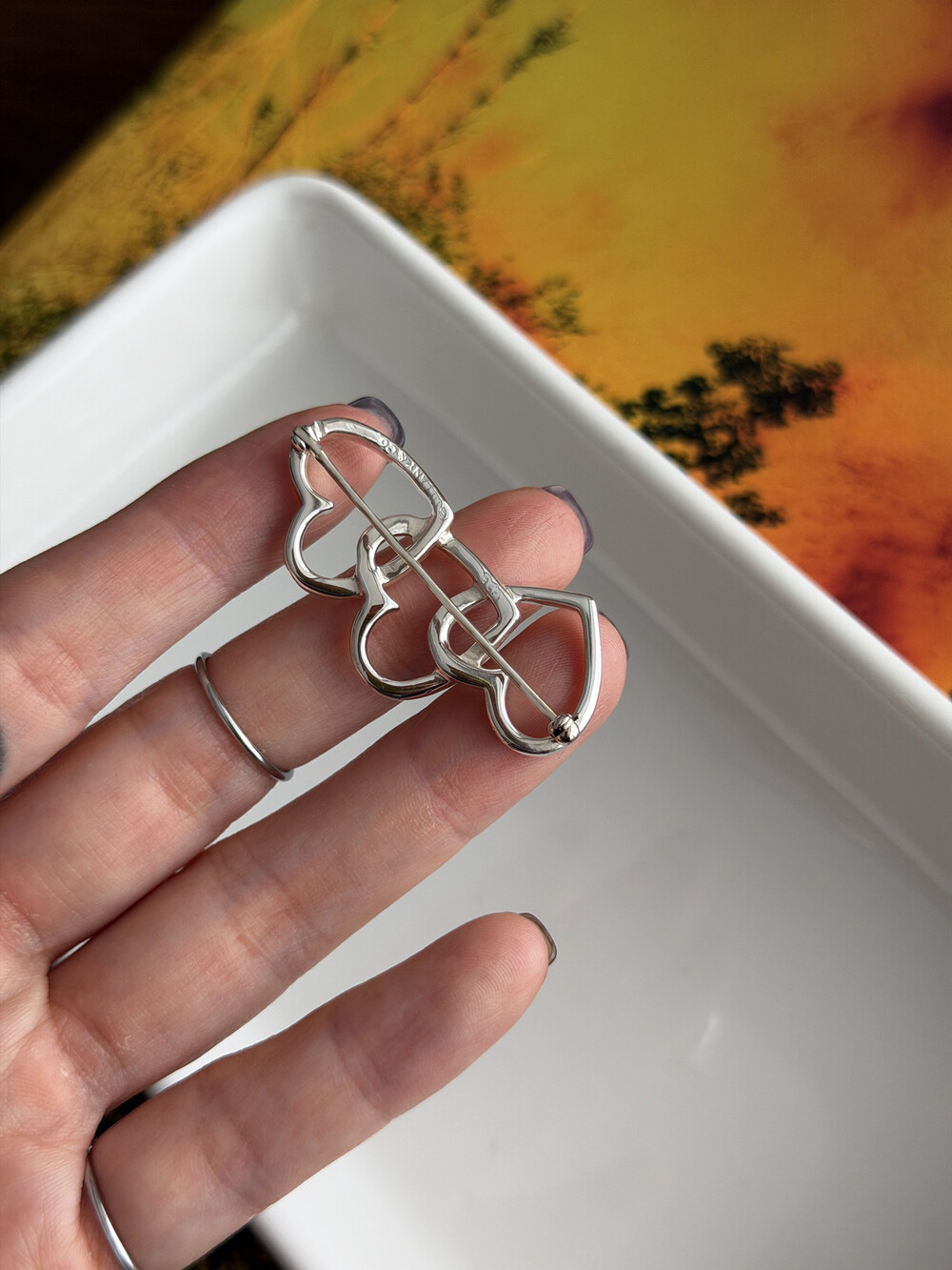 Vintage Tiffany & Co. Triple Open Heart Silver Brooch