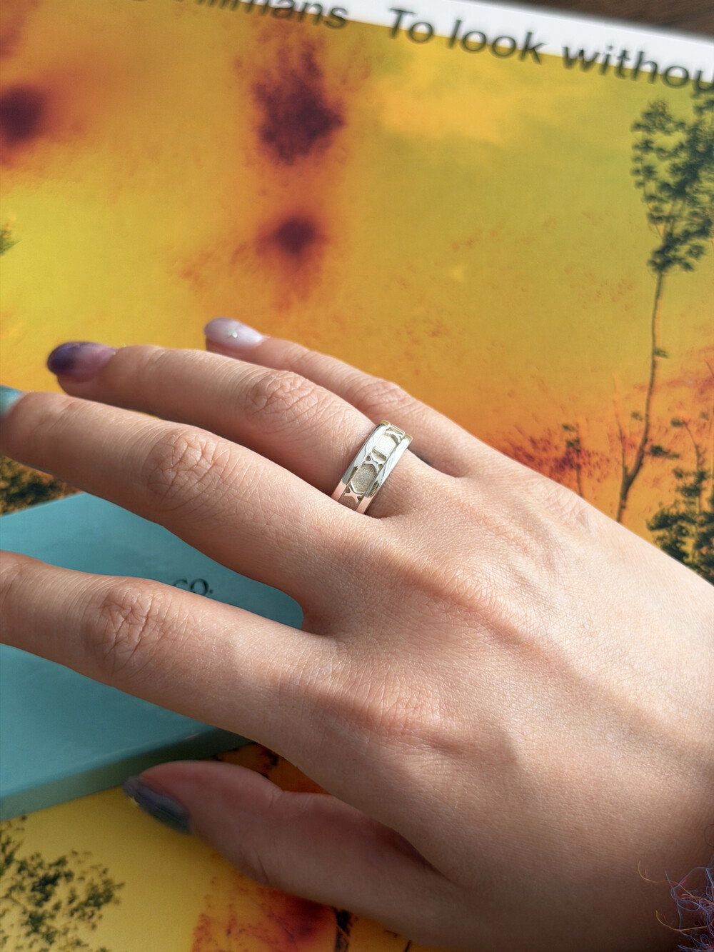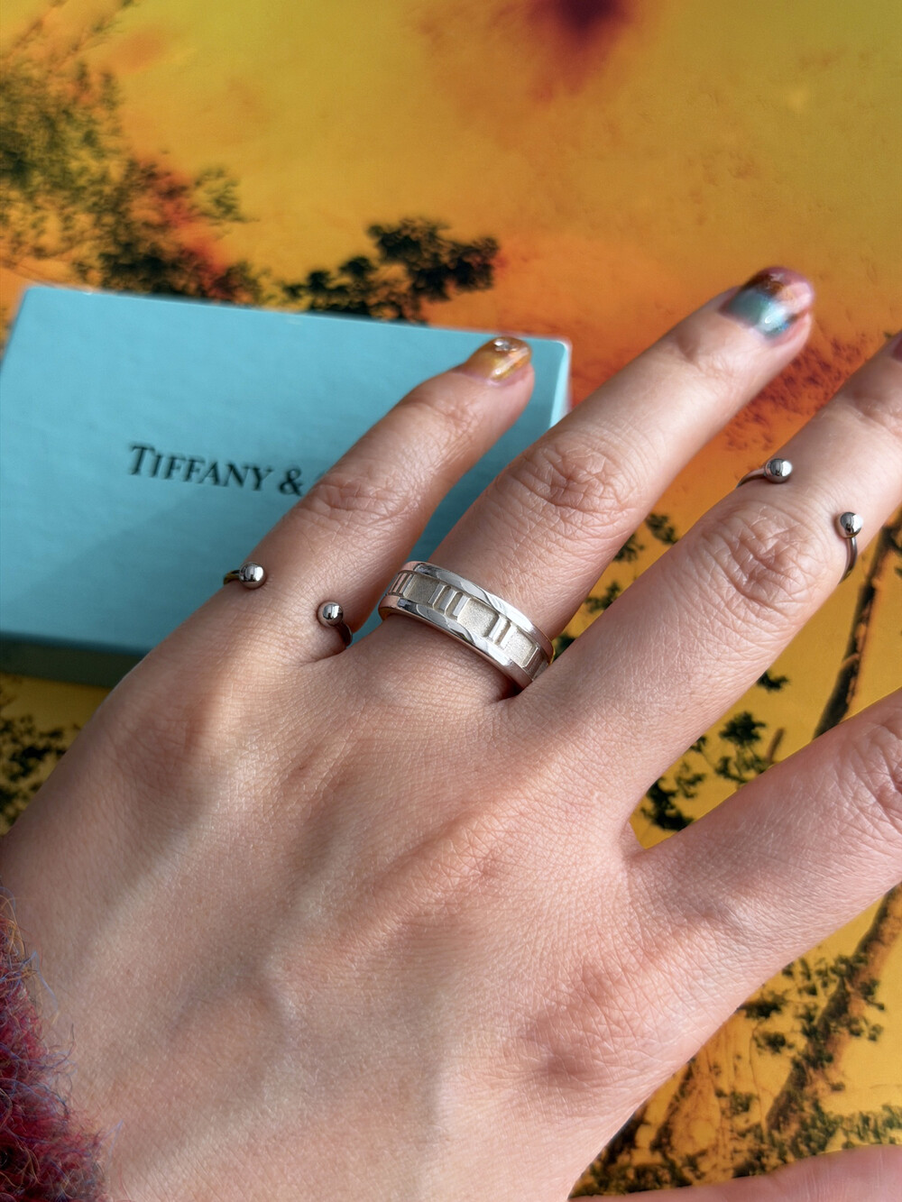 이 빈티지 티파니 앤코 아틀라스 반지는, 스털링 실버(Silver 925)로 제작되었습니다. 은은하게 번지는 실버의 광택이 과하지 않게 빛을 머금어, 데일리 착용에서도 자연스럽게 분위기를 만들어주는 모델입니다.