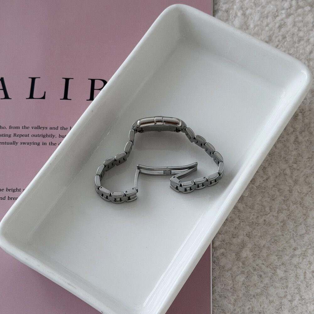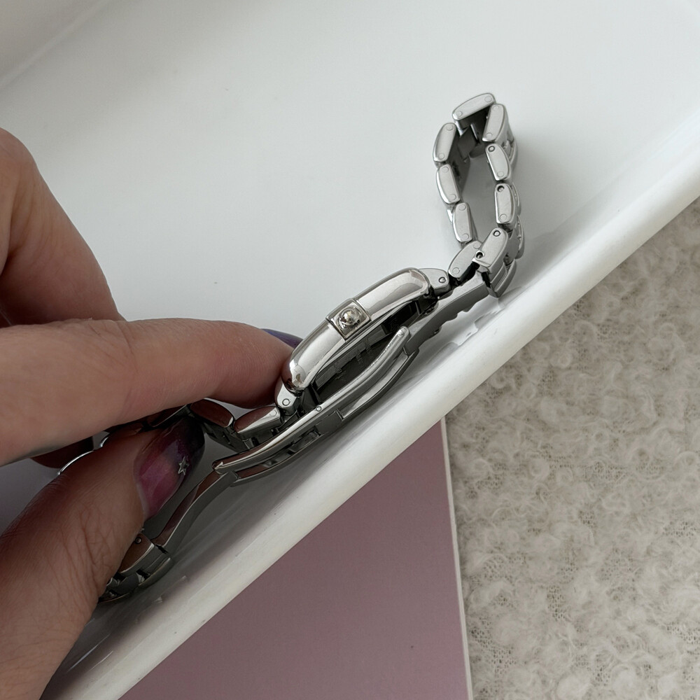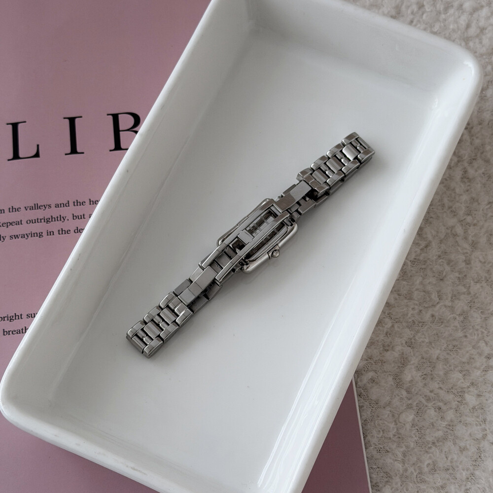 부드러운 곡선의 스퀘어 바디와 화이트 다이얼 위를 장식하는