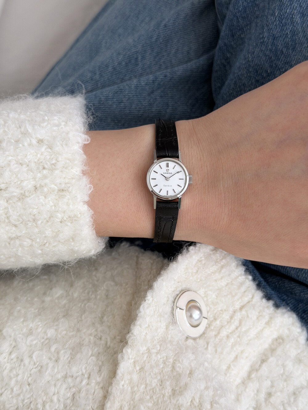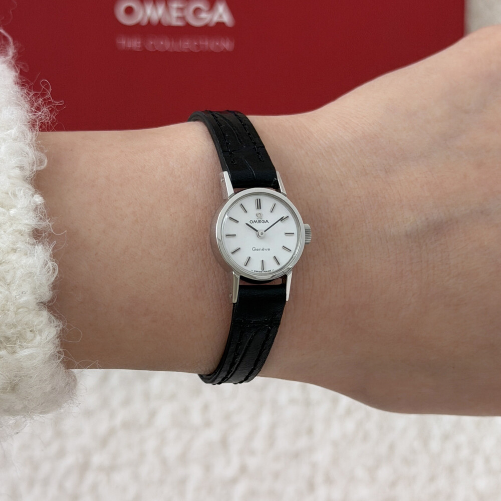 1968년도에 제작된 오메가 제네브 모델로 부드러운 곡선의 라운드 케이스,