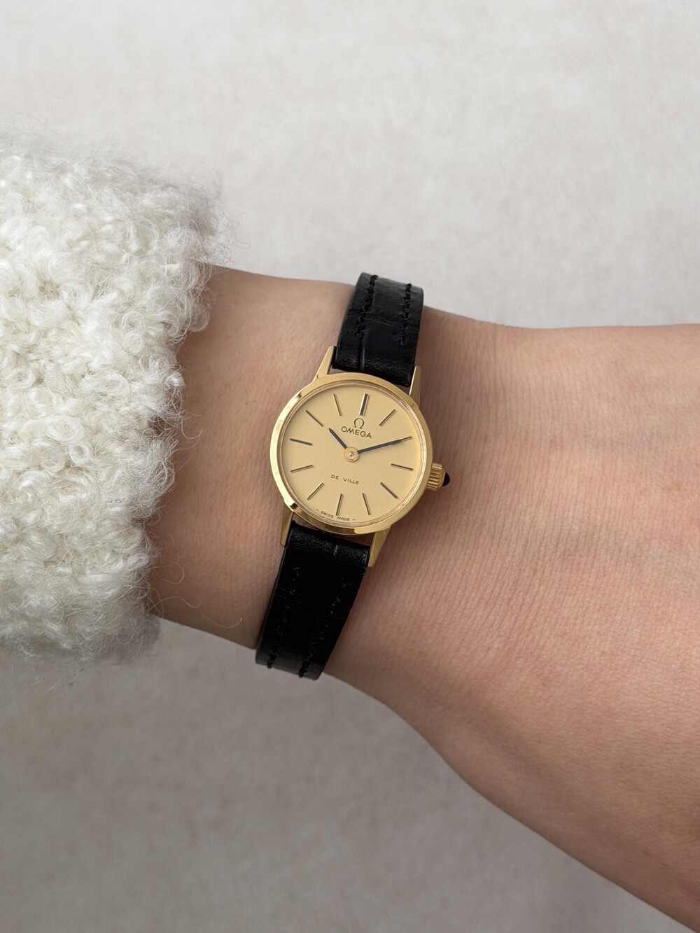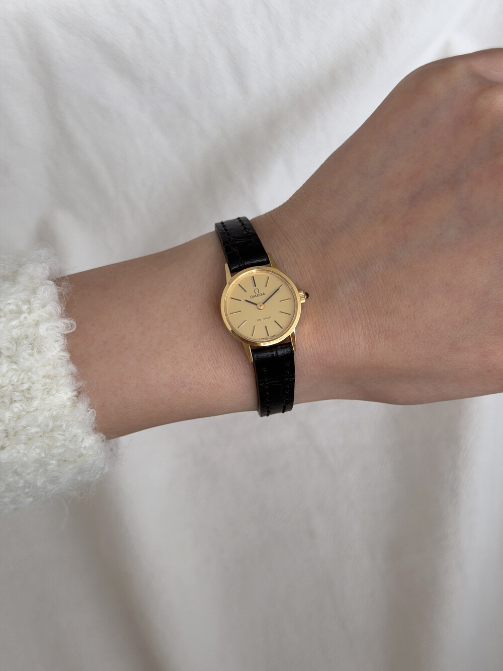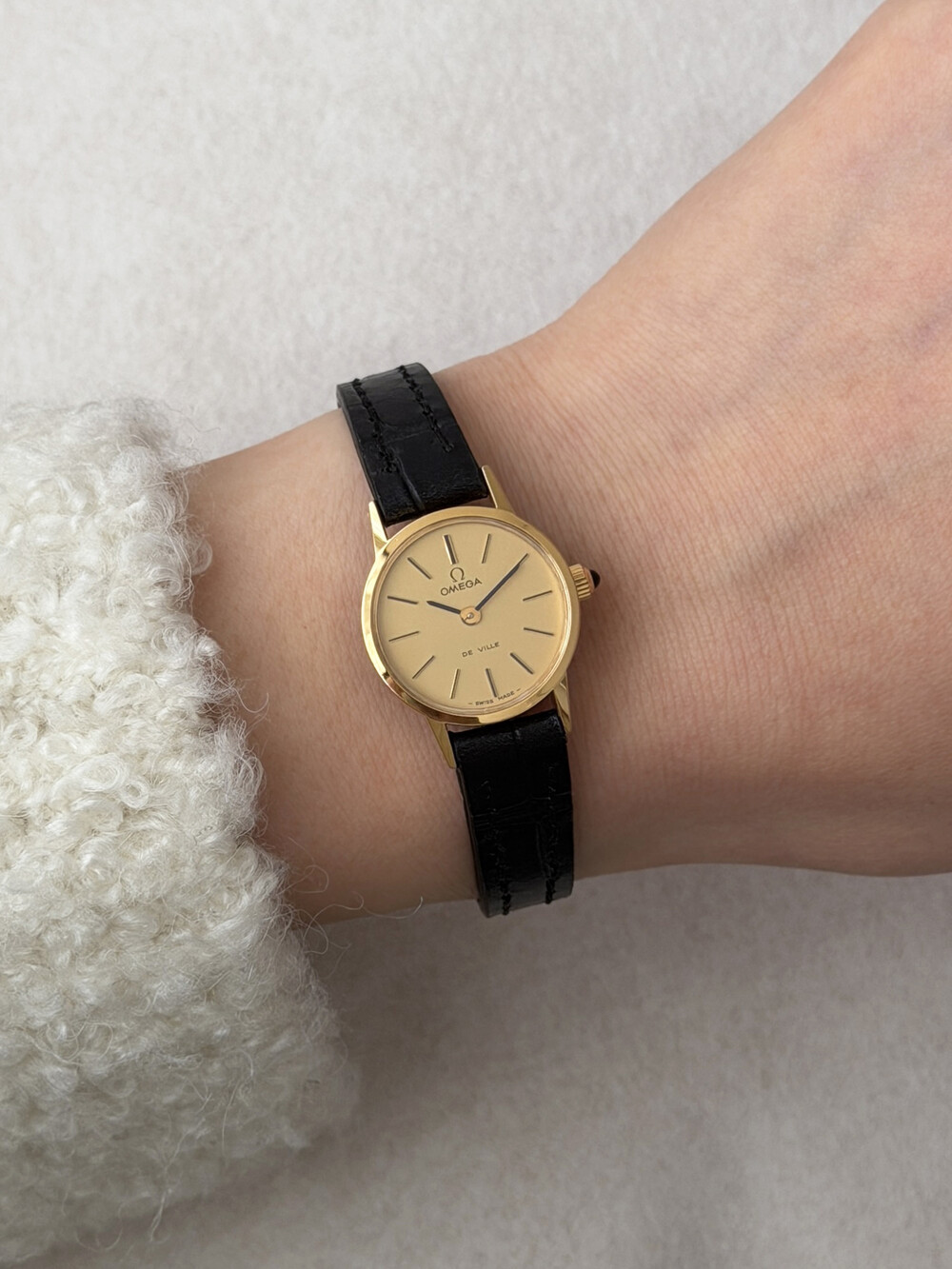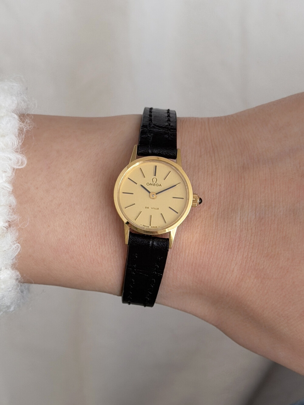 1977년도에 제작된 오메가 드빌 모델로 클래식한 골드톤 다이얼과