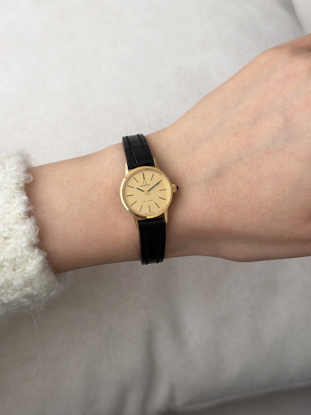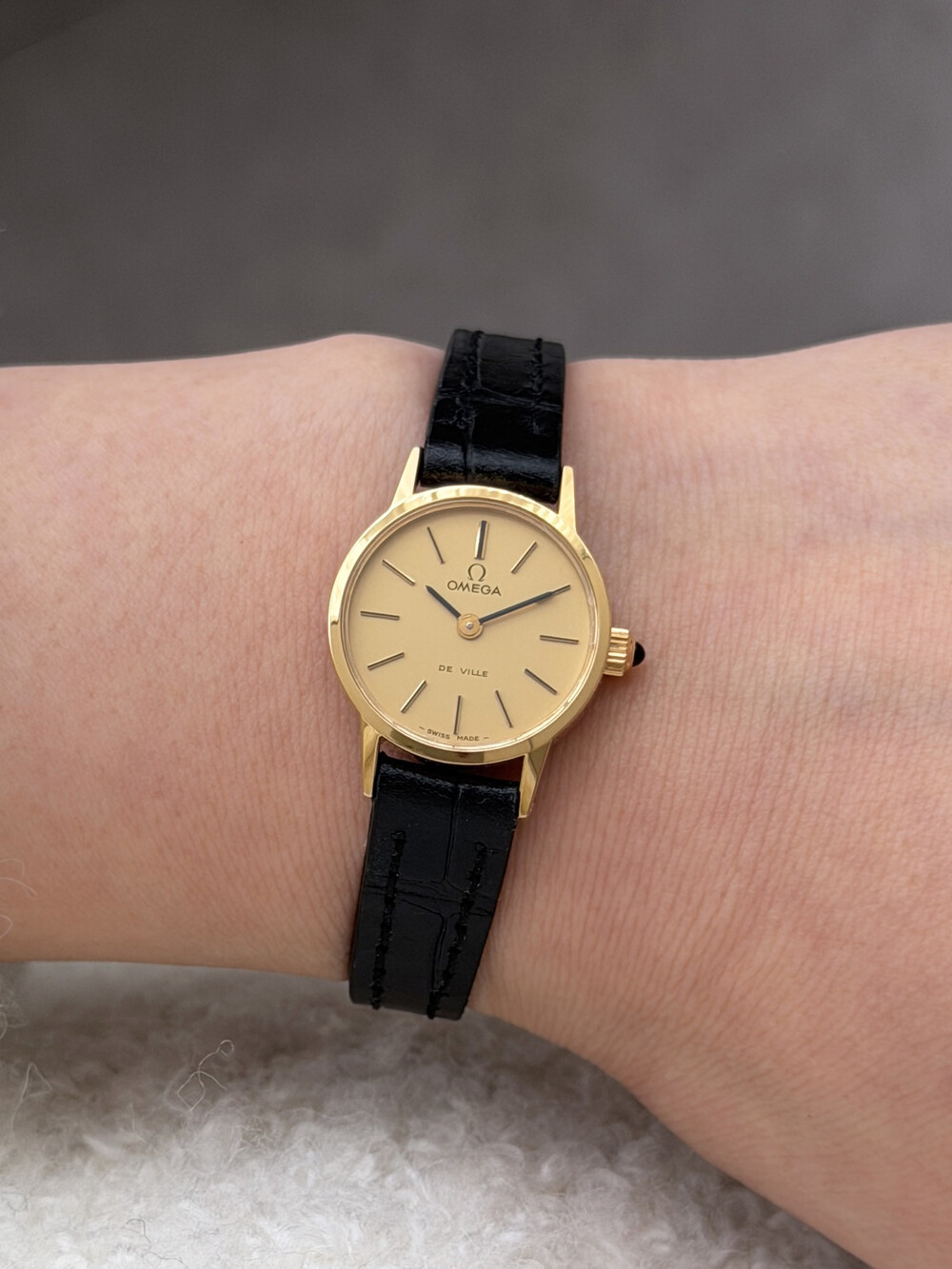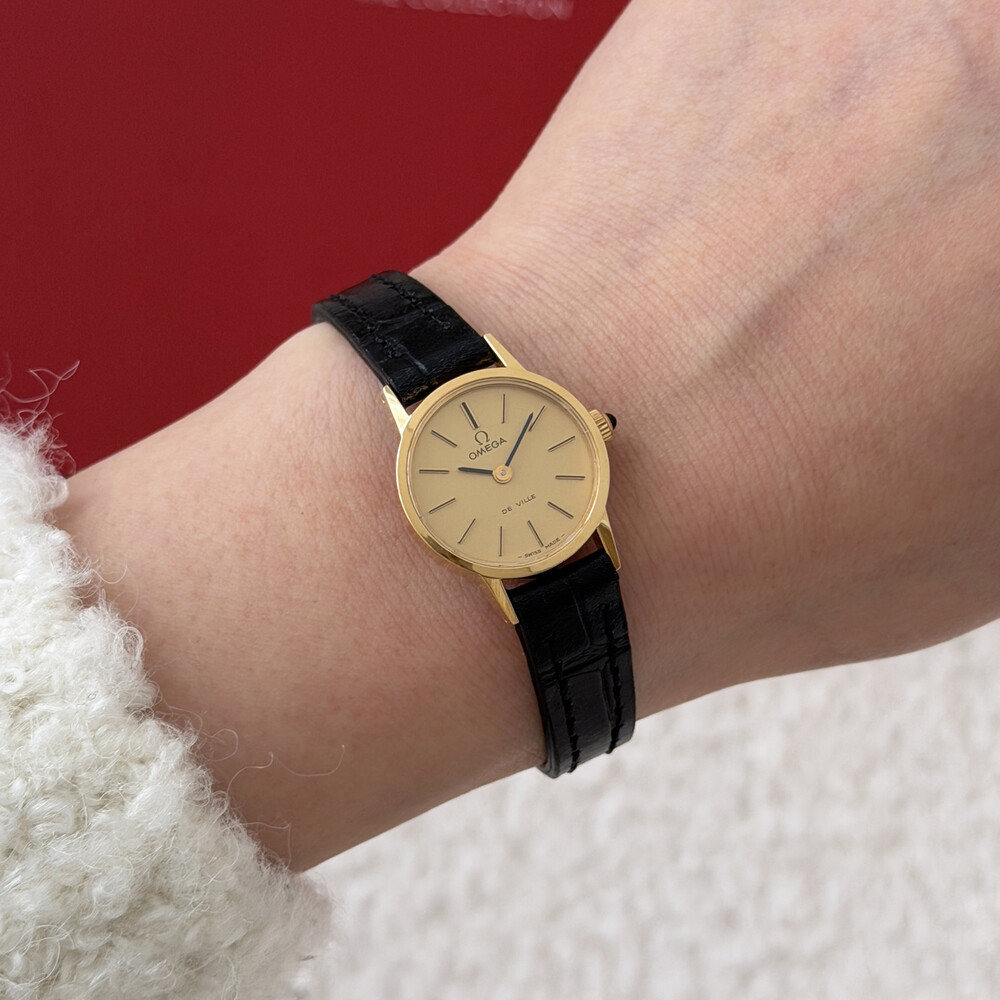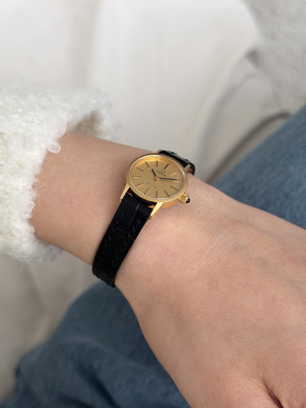 1977년도에 제작된 오메가 드빌 모델로 클래식한 골드톤 다이얼과