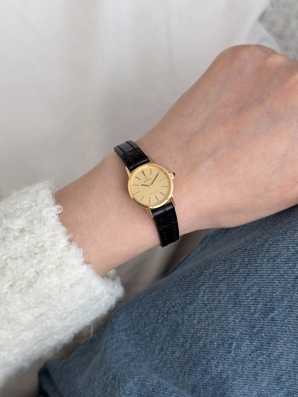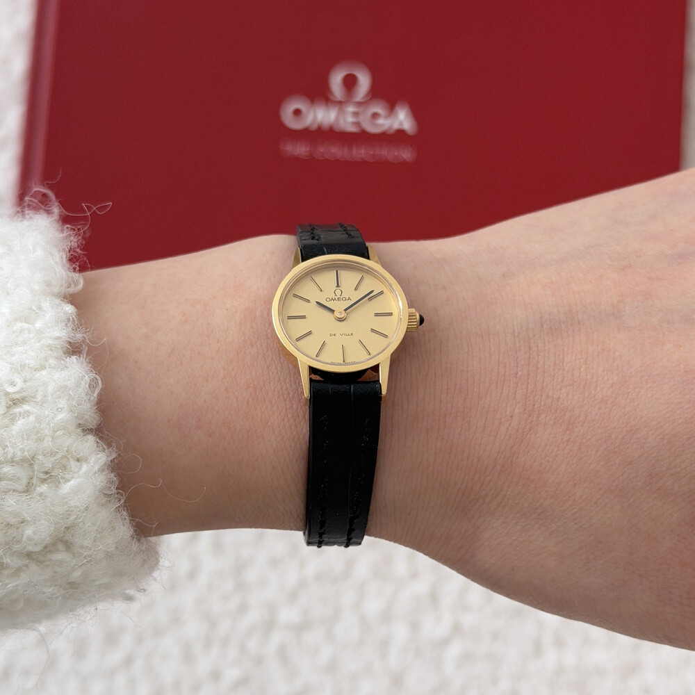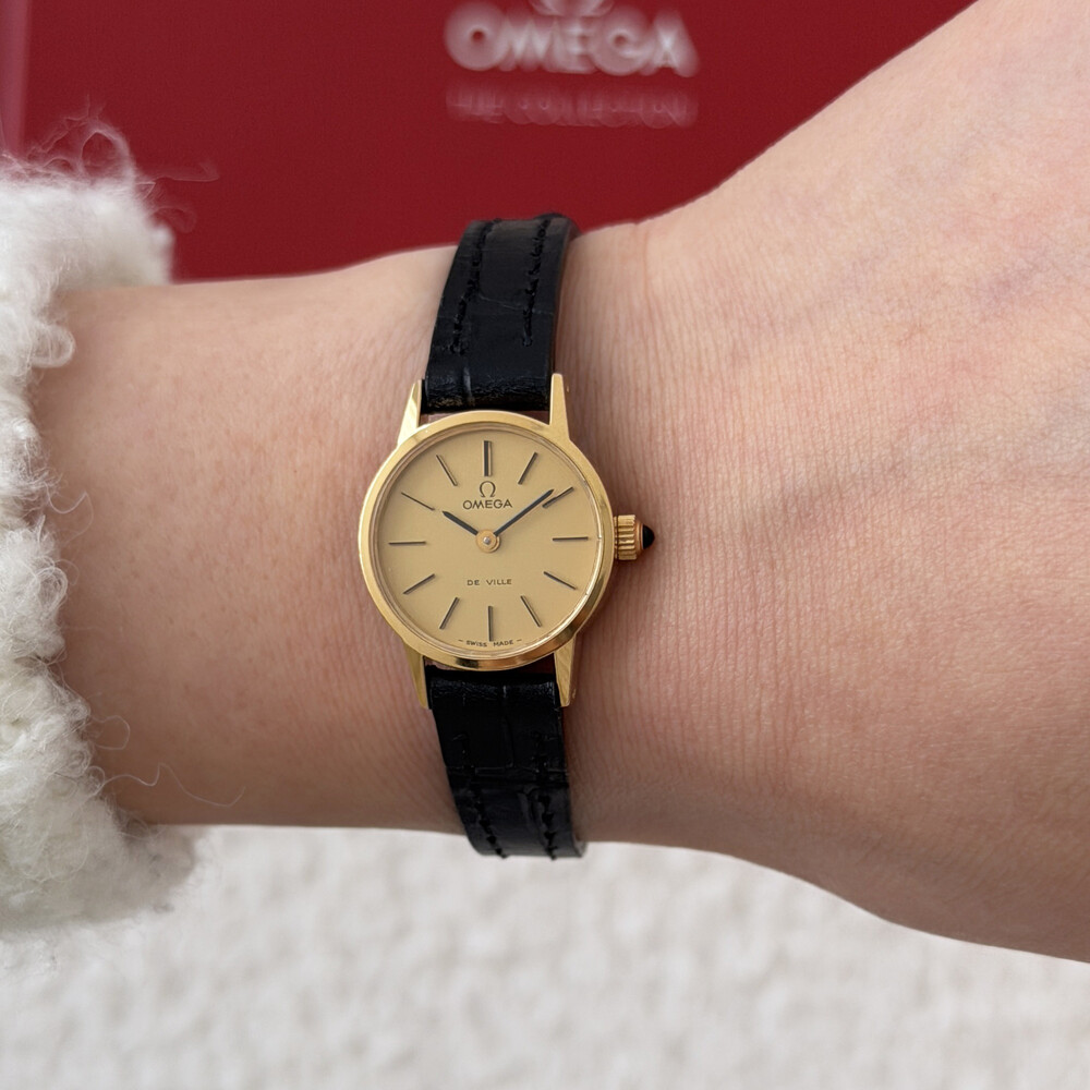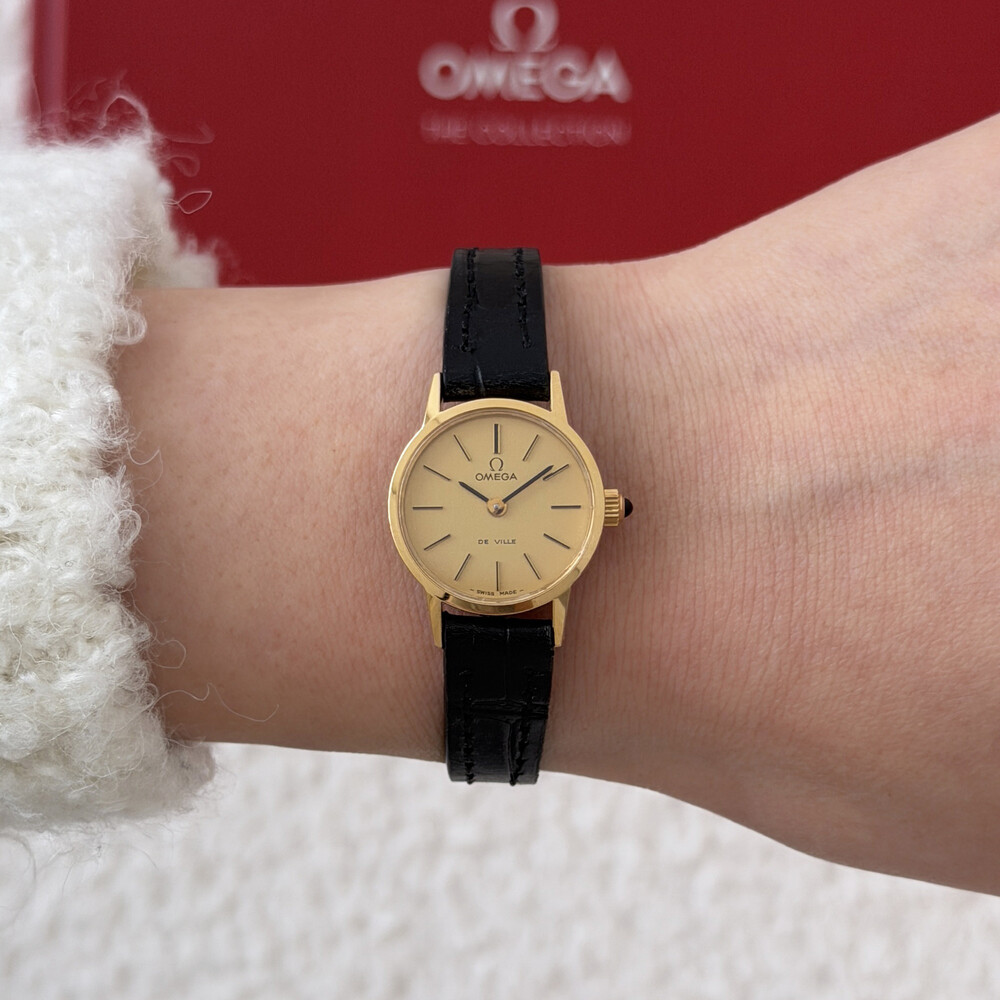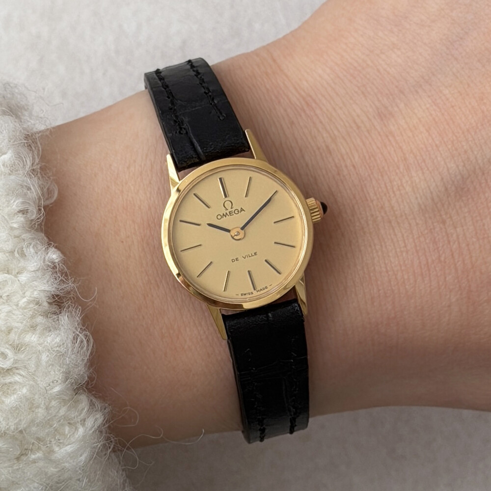 1977년도에 제작된 오메가 드빌 모델로 클래식한 골드톤 다이얼과