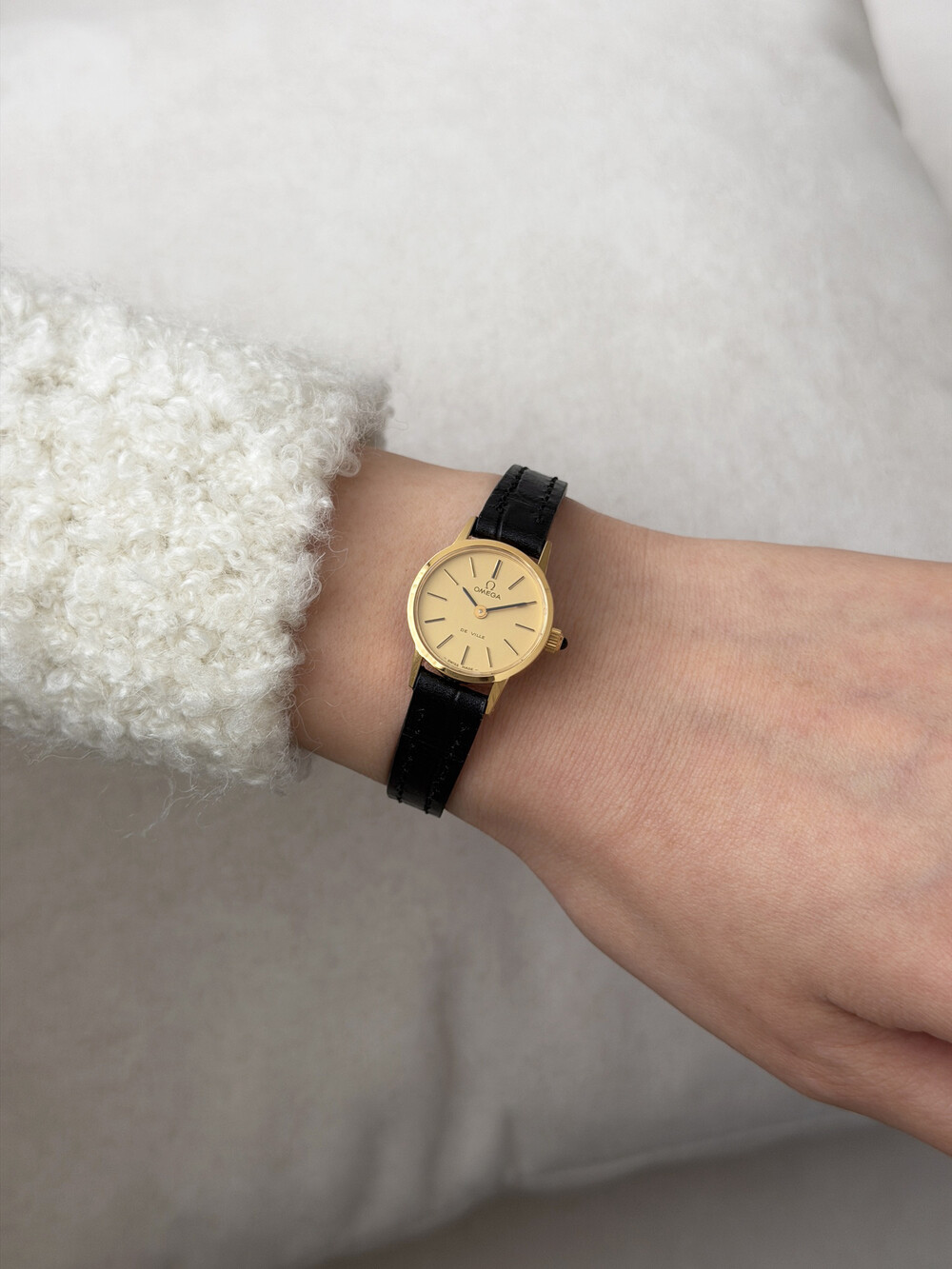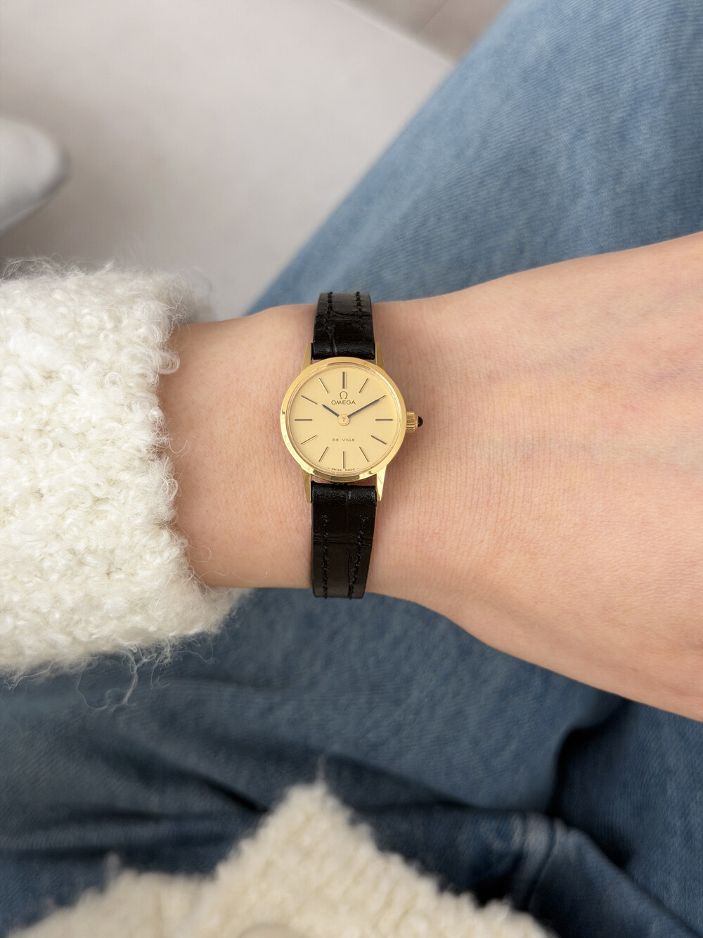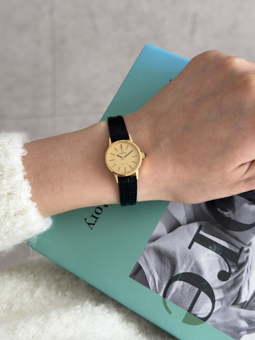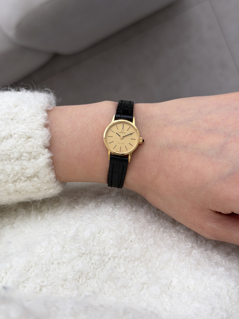 1977년도에 제작된 오메가 드빌 모델로 클래식한 골드톤 다이얼과