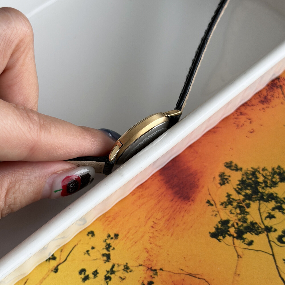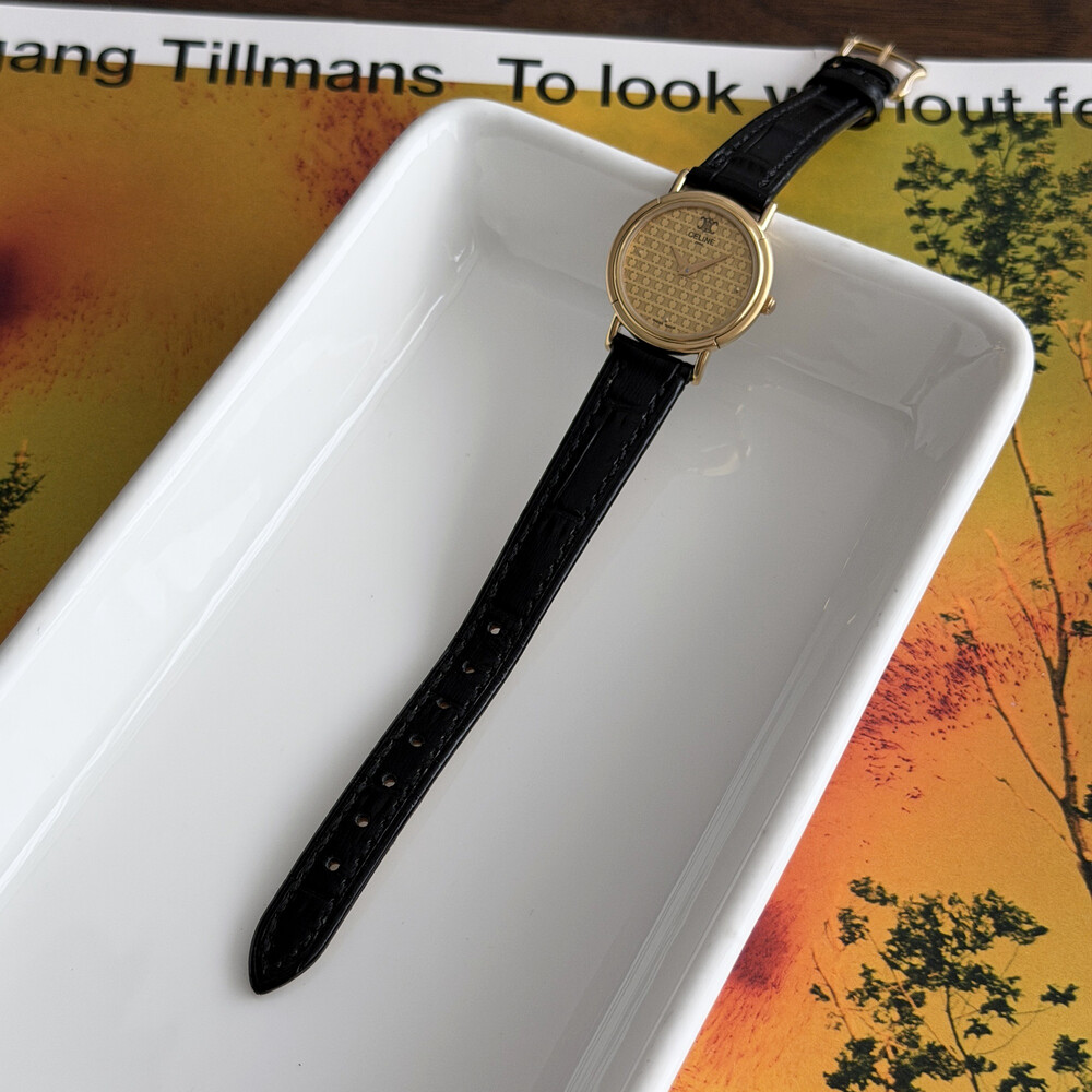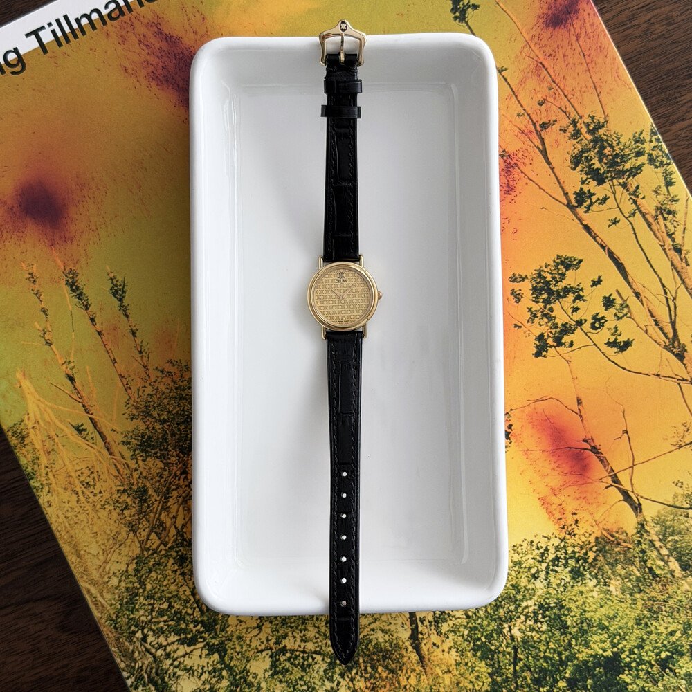 부드러운 골드 톤 케이스와 다이얼 위를 장식하는 셀린느 시그니처 트리오페 패턴이 매력적인 모델입니다.