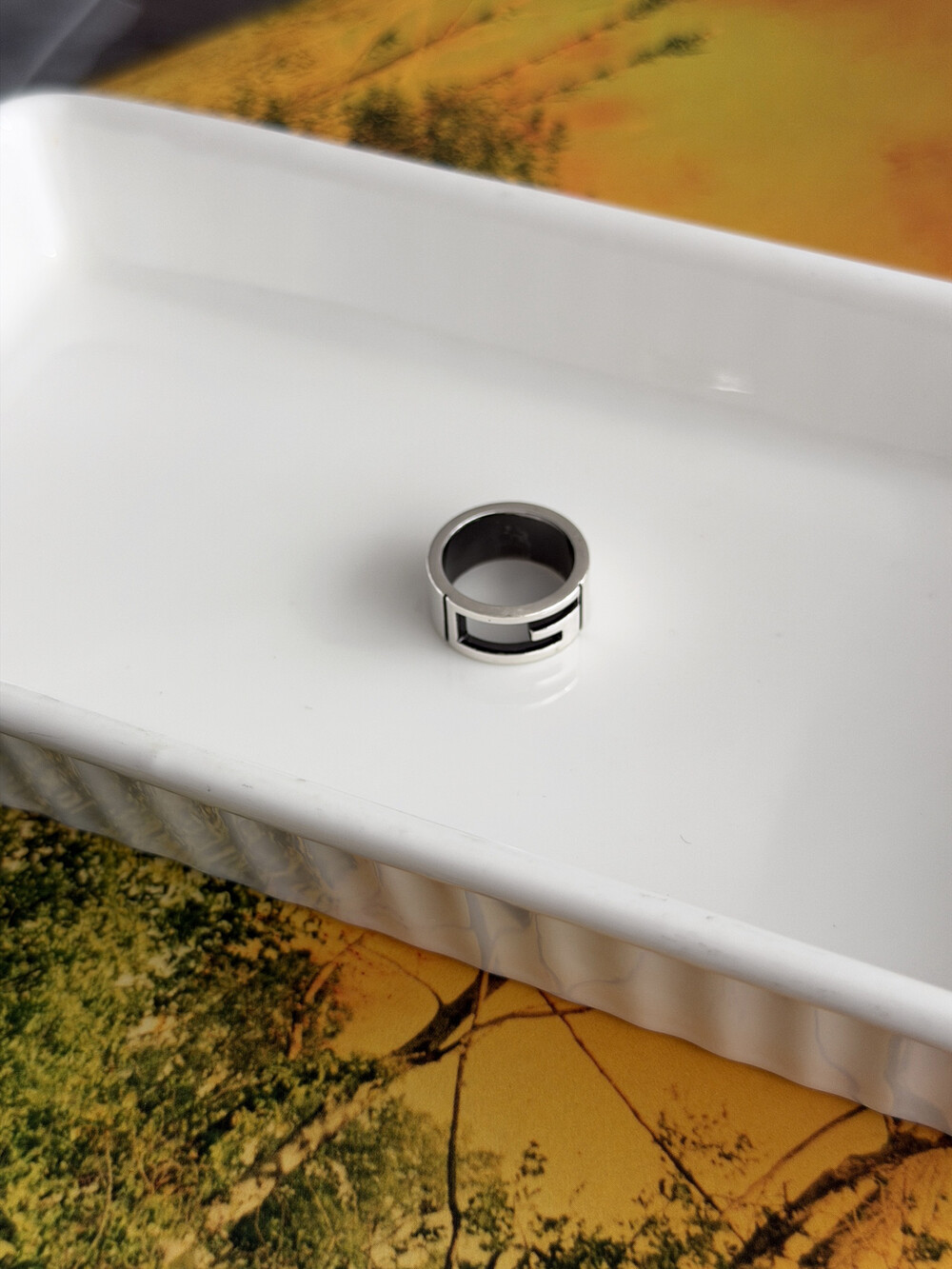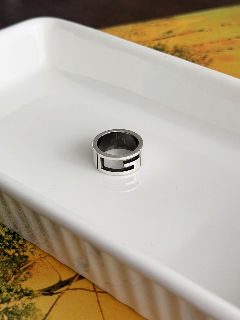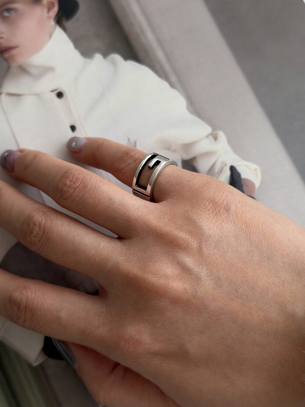 이 빈티지 구찌 반지는, 스털링 실버(Silver 925)로 제작되었습니다. 은은하게 번지는 실버의 광택이 과하지 않게 빛을 머금어, 데일리 착용에서도 자연스럽게 분위기를 만들어주는 모델입니다.