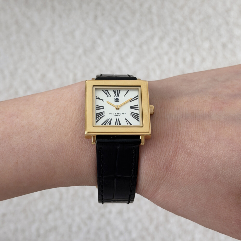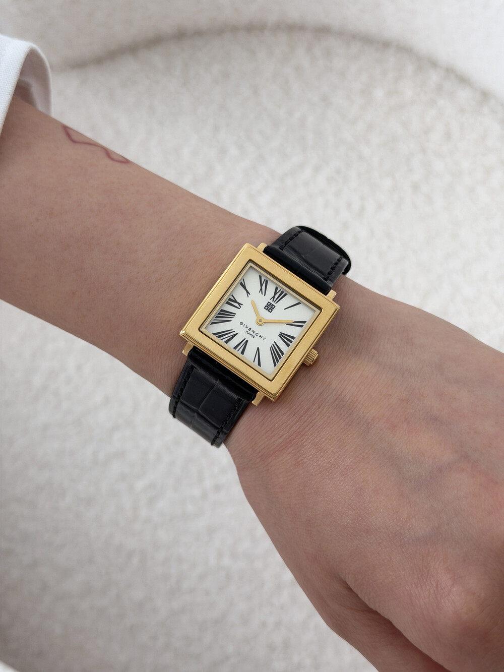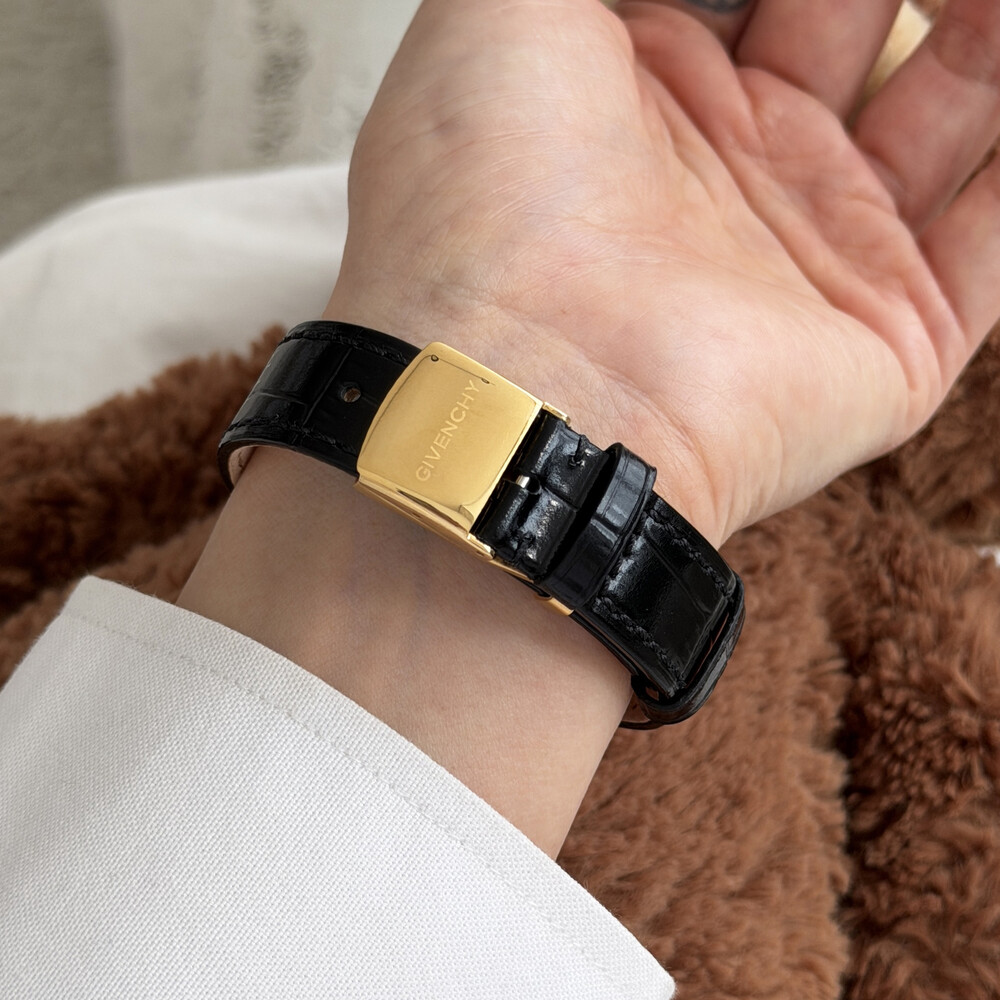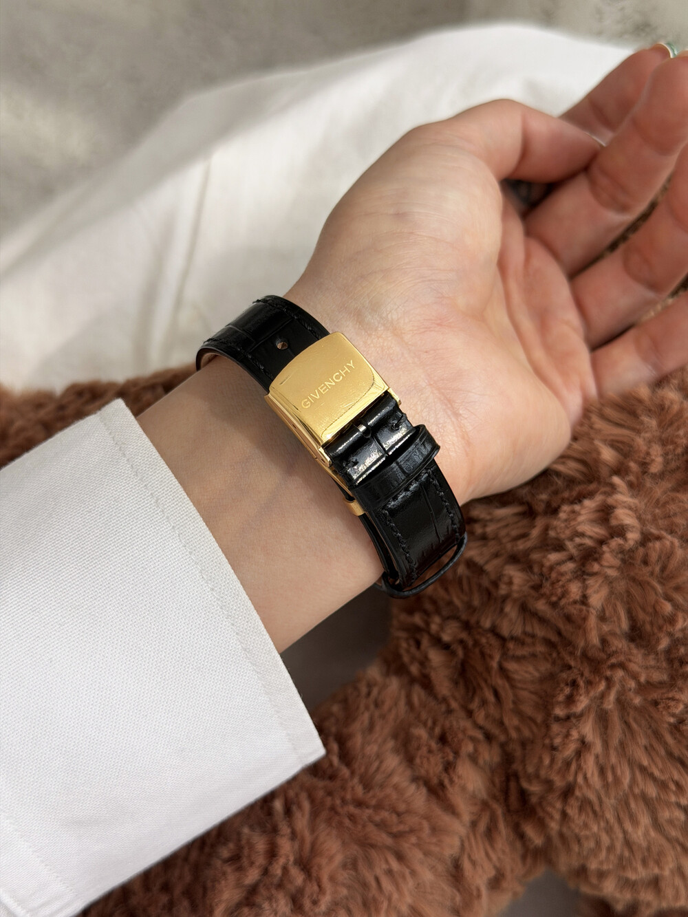 여성용으로 제작된 지방시 시계이며 스위스 쿼츠 무브먼트로 제작되었습니다.