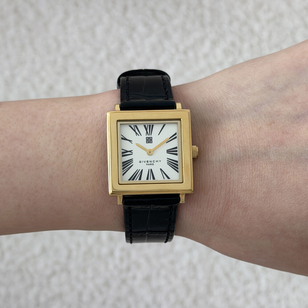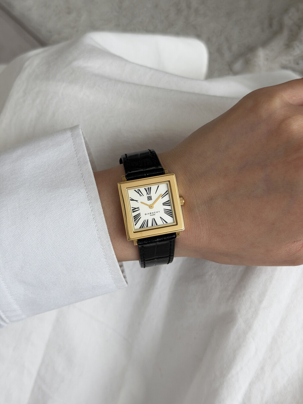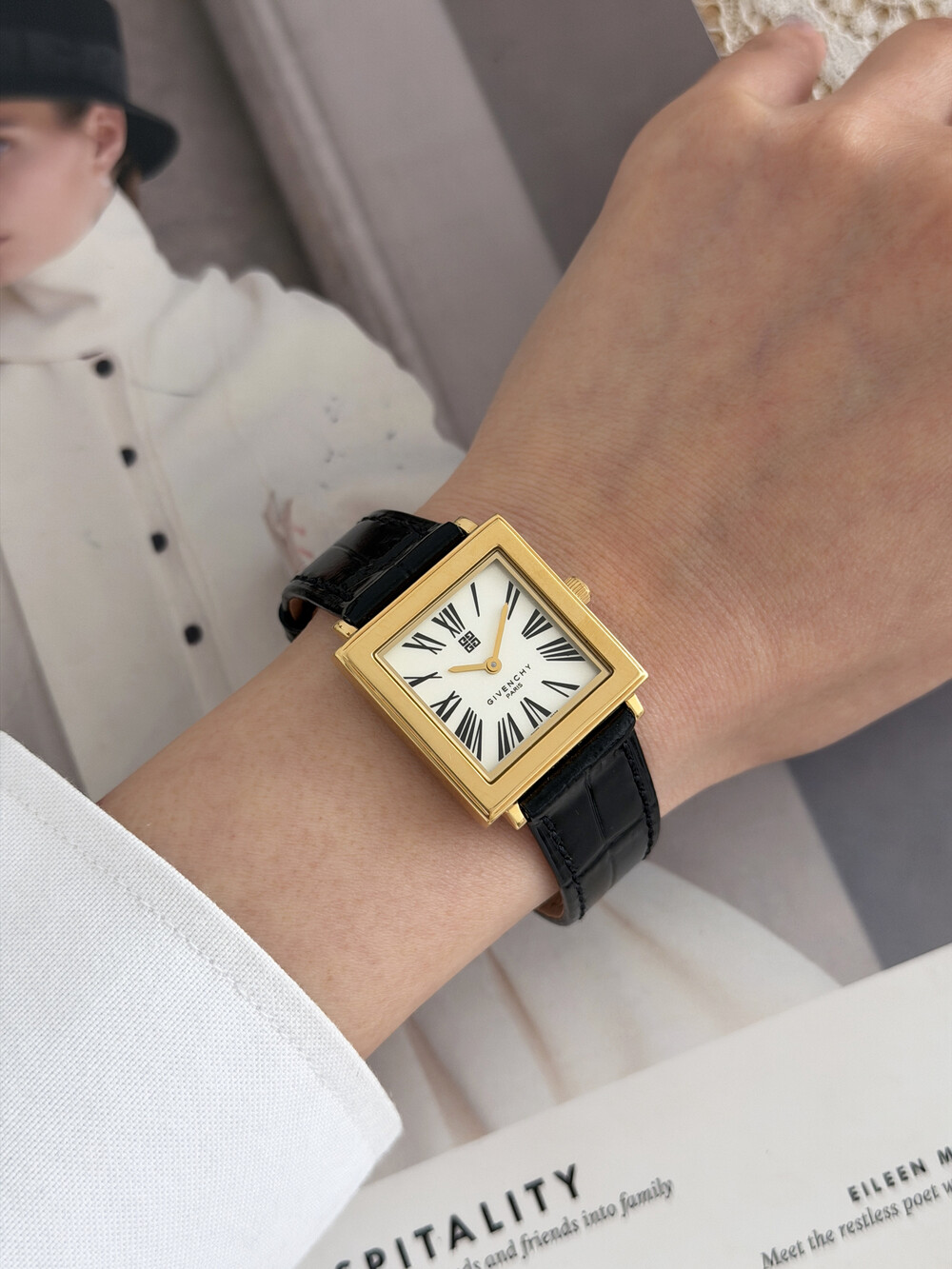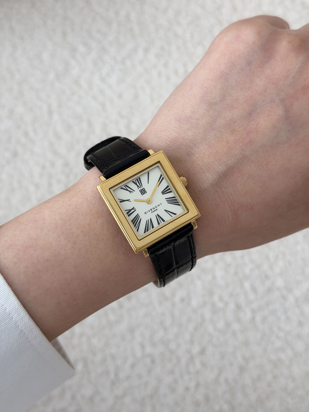 여성용으로 제작된 지방시 시계이며 스위스 쿼츠 무브먼트로 제작되었습니다.