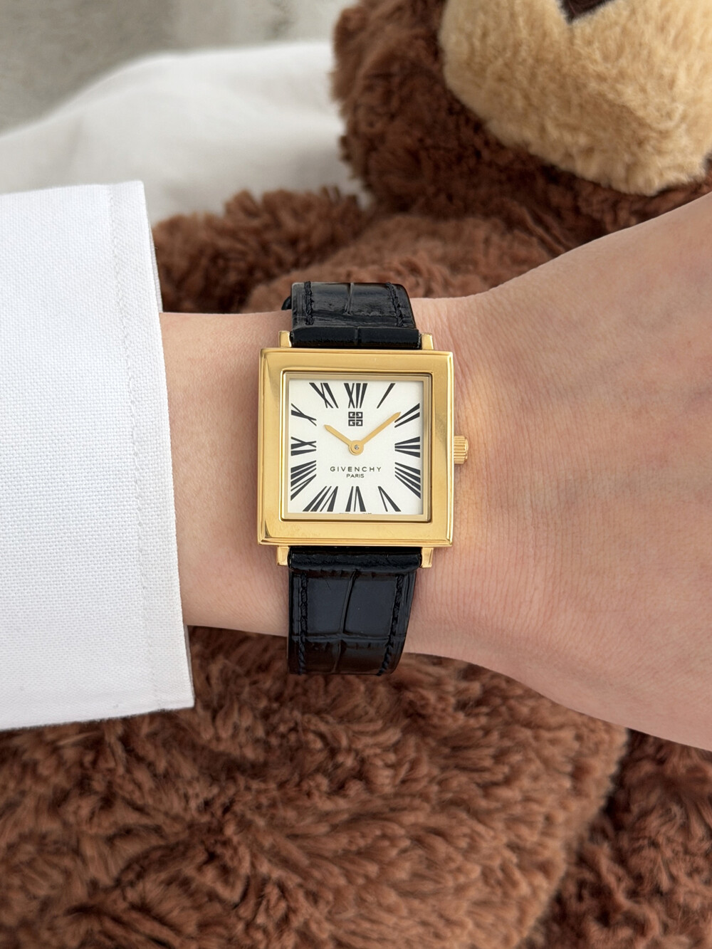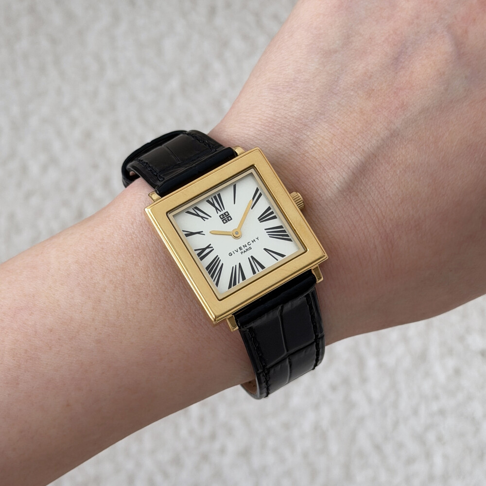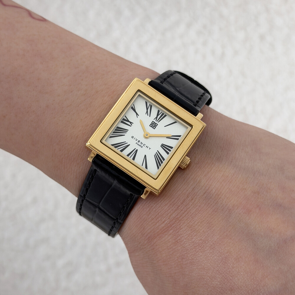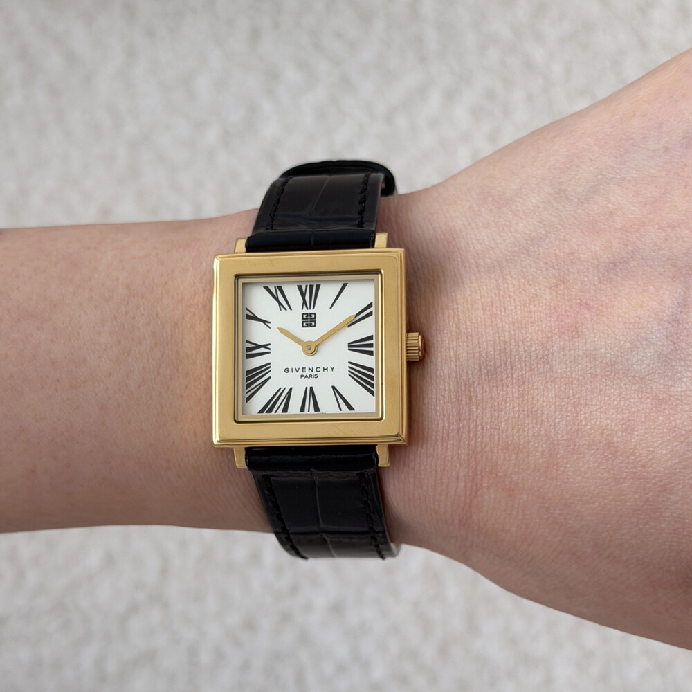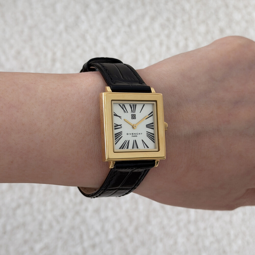 여성용으로 제작된 지방시 시계이며 스위스 쿼츠 무브먼트로 제작되었습니다.