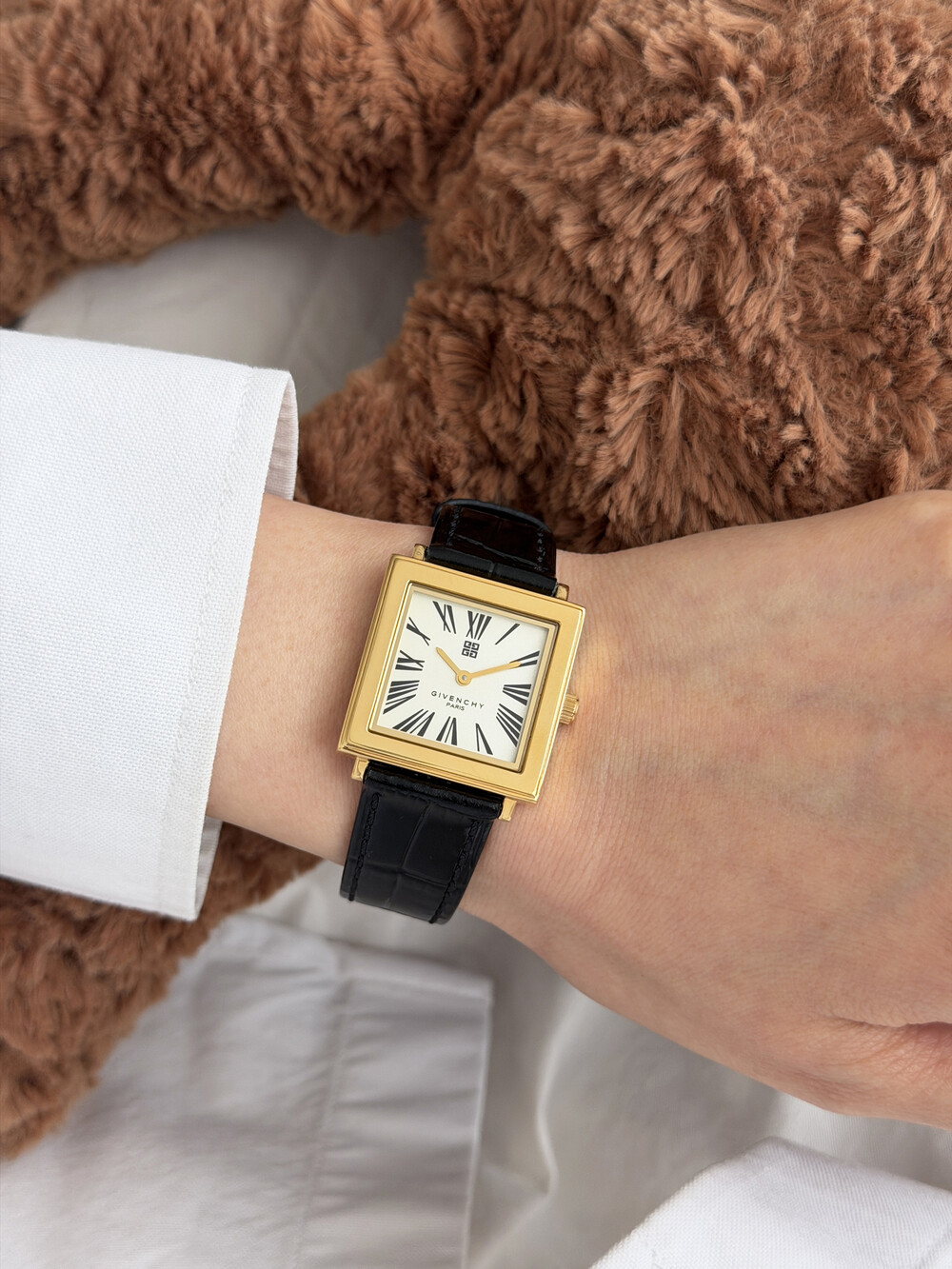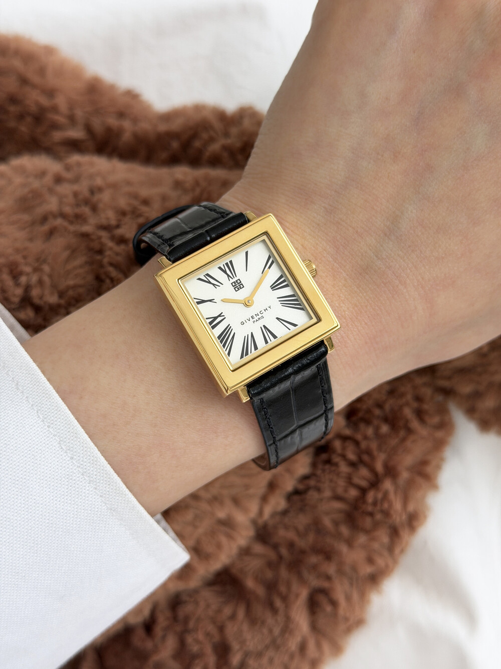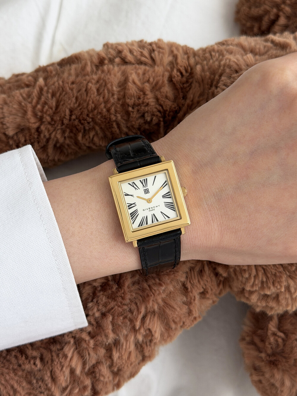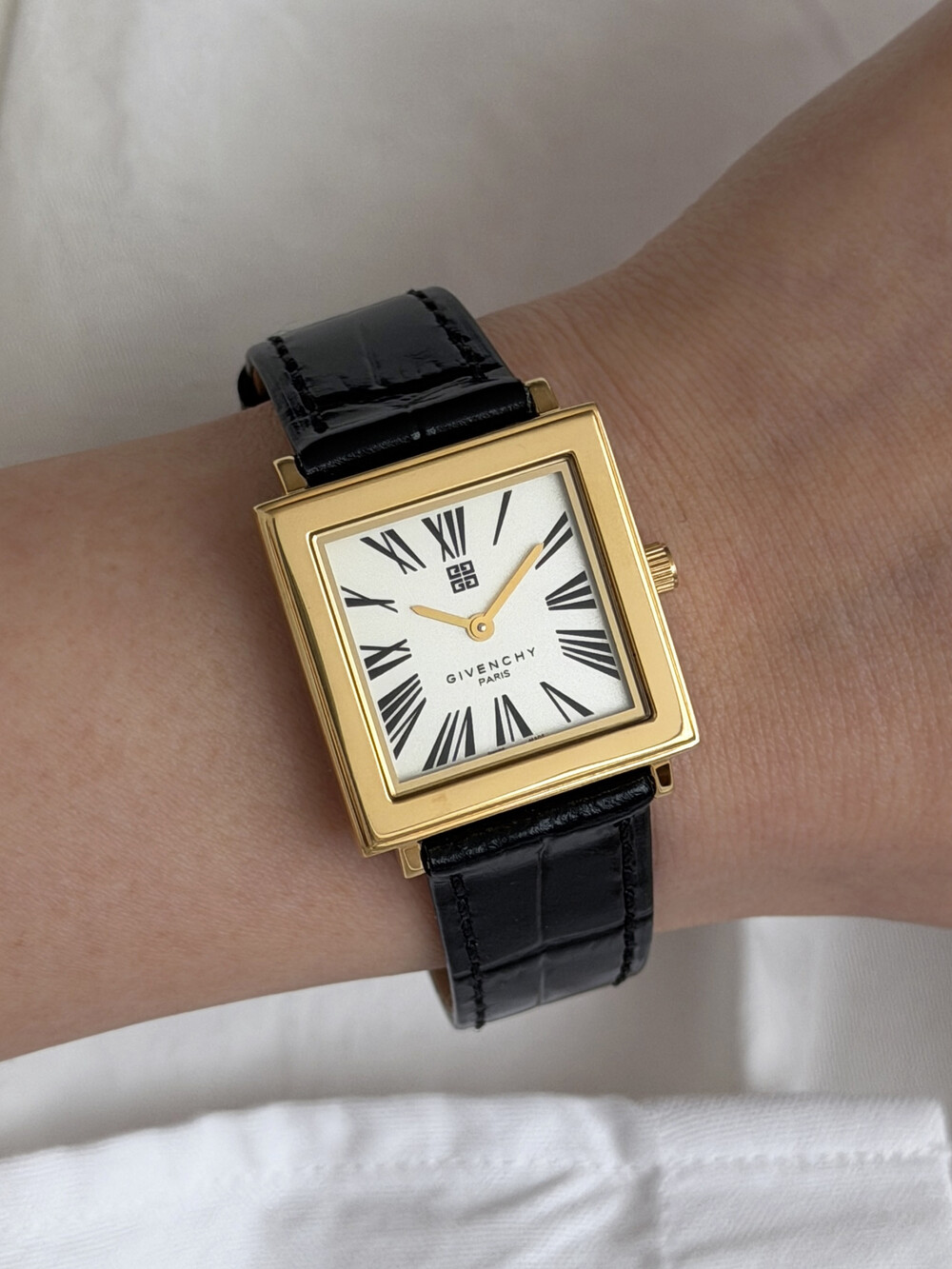 여성용으로 제작된 지방시 시계이며 스위스 쿼츠 무브먼트로 제작되었습니다.