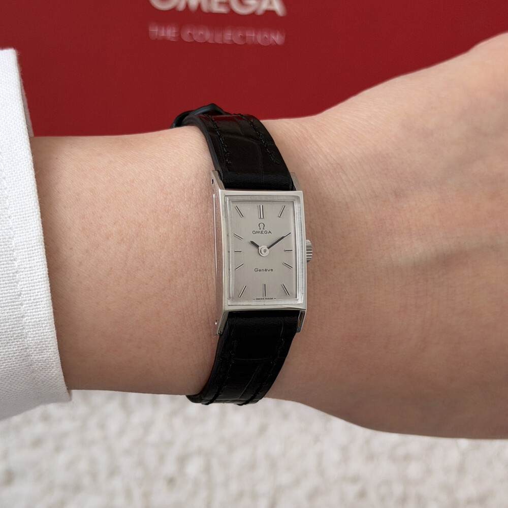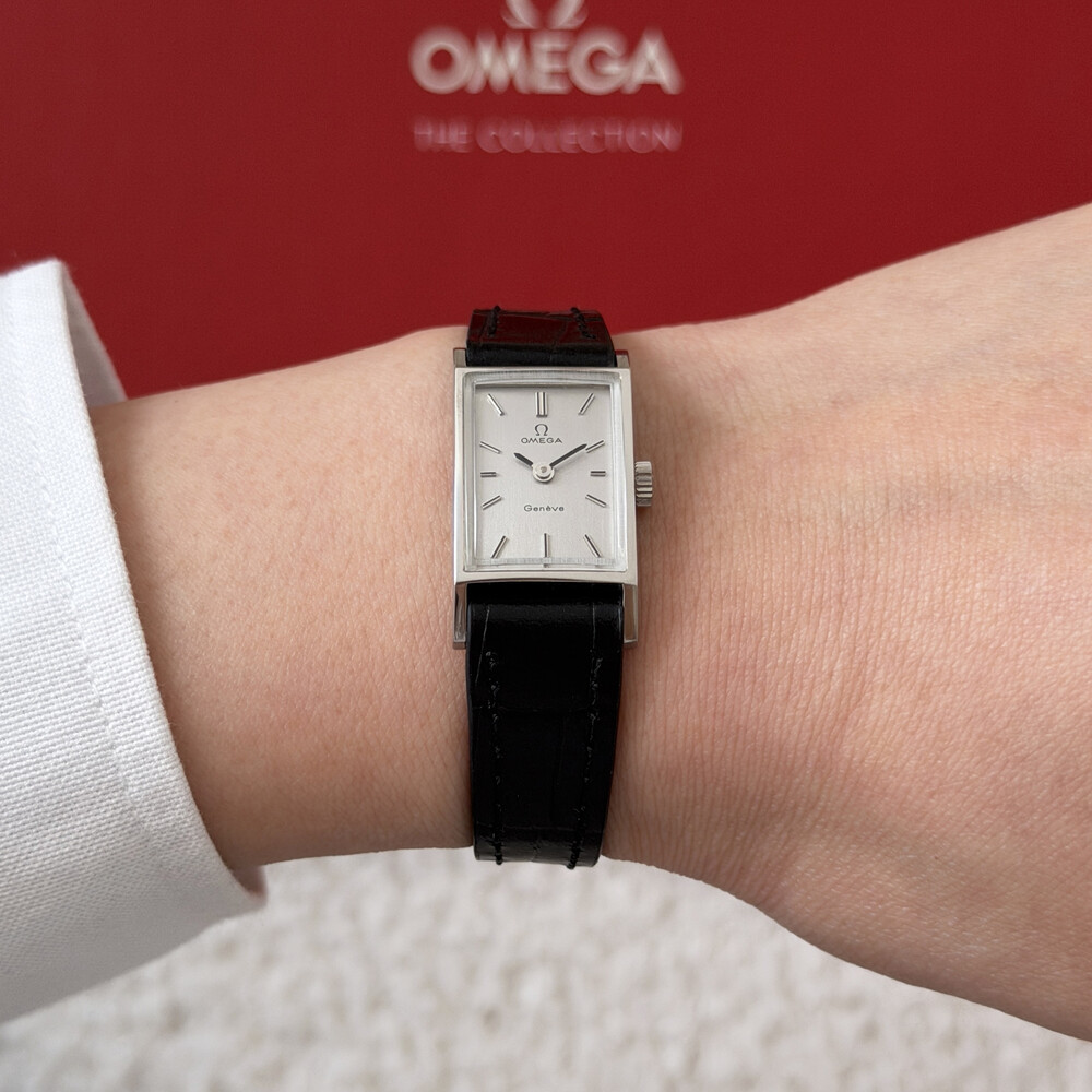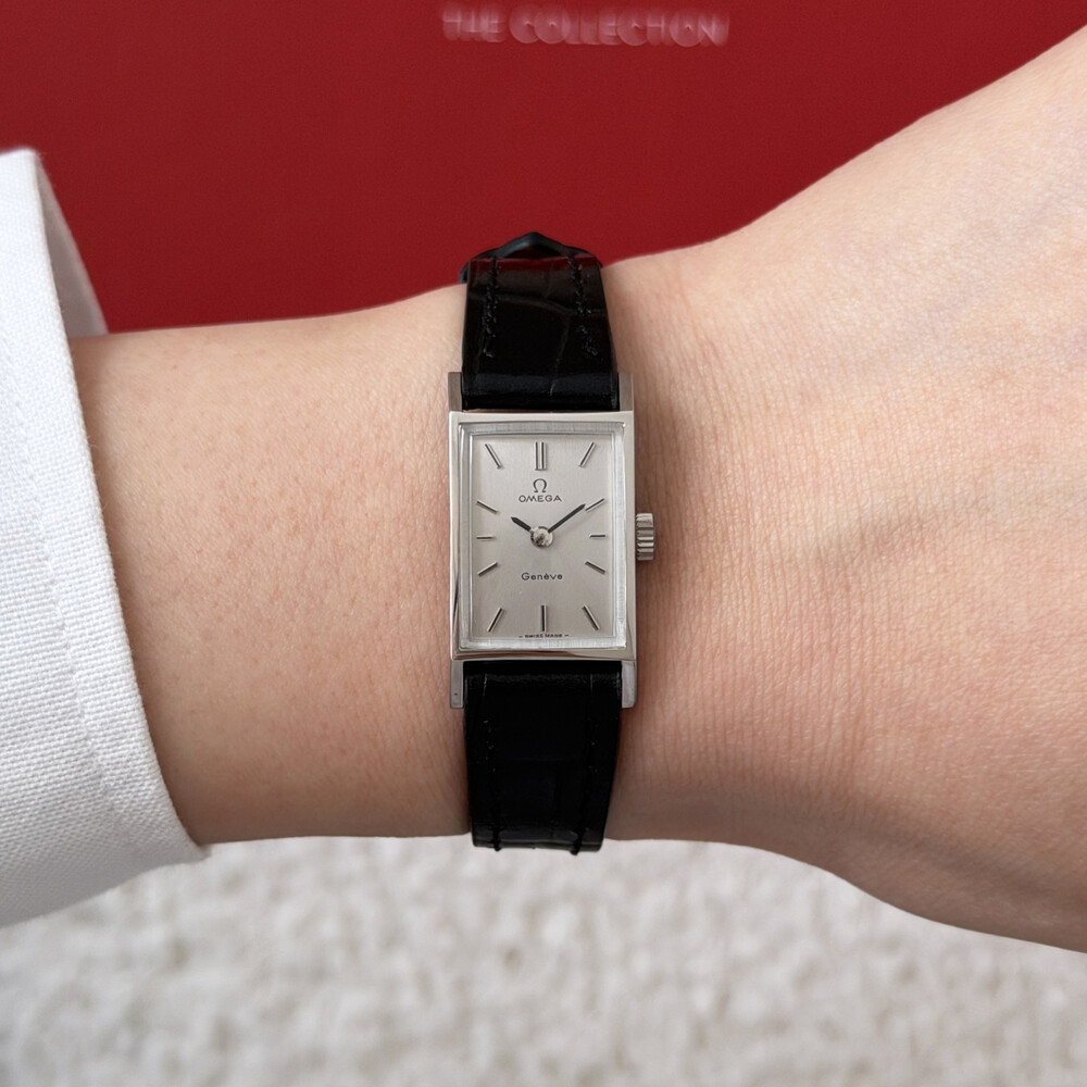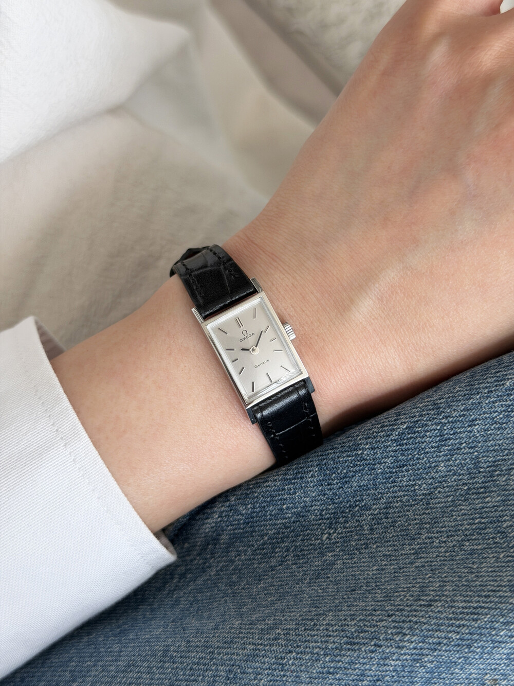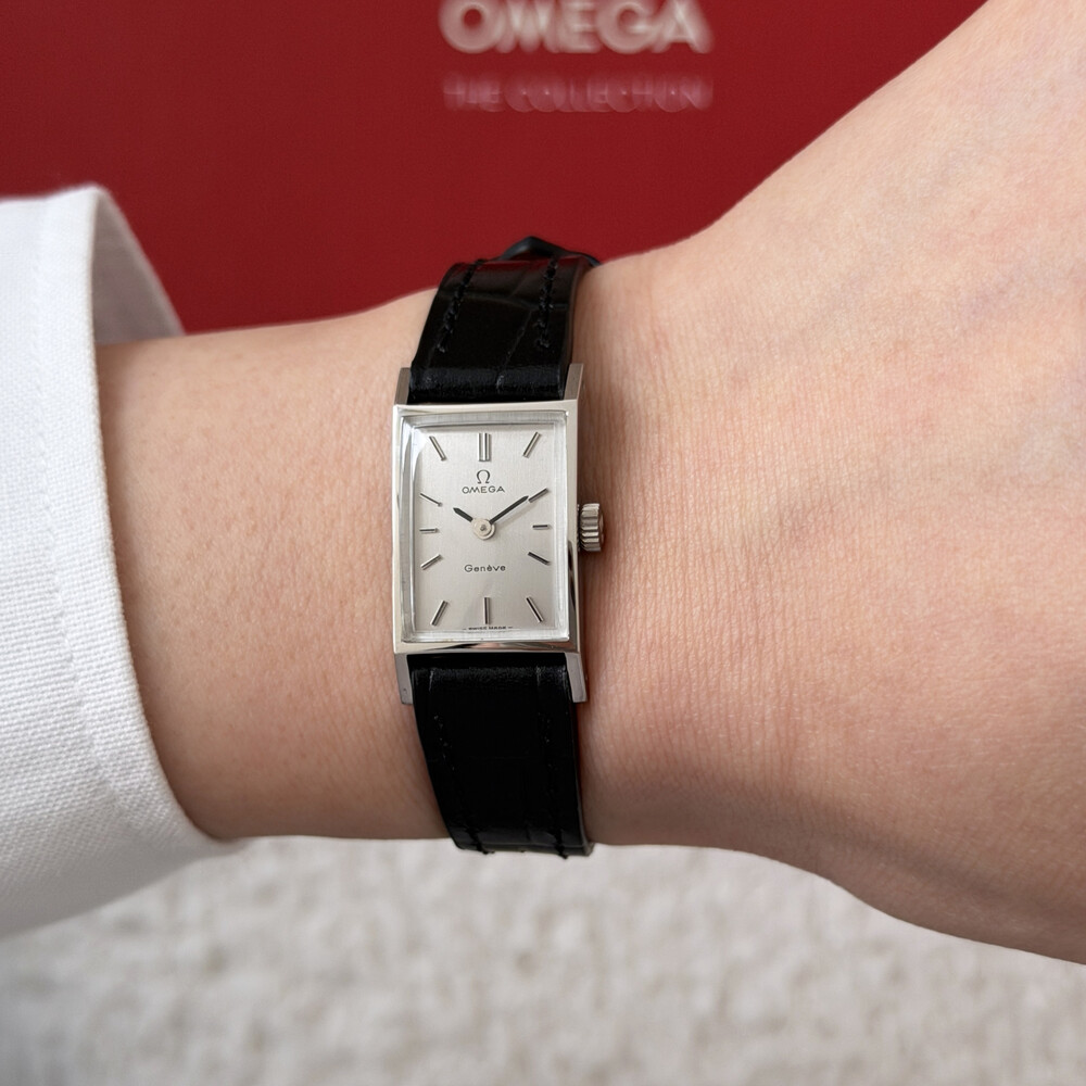 1971년도에 제작된 오메가 제네브 모델로 클래식한 스퀘어 케이스와