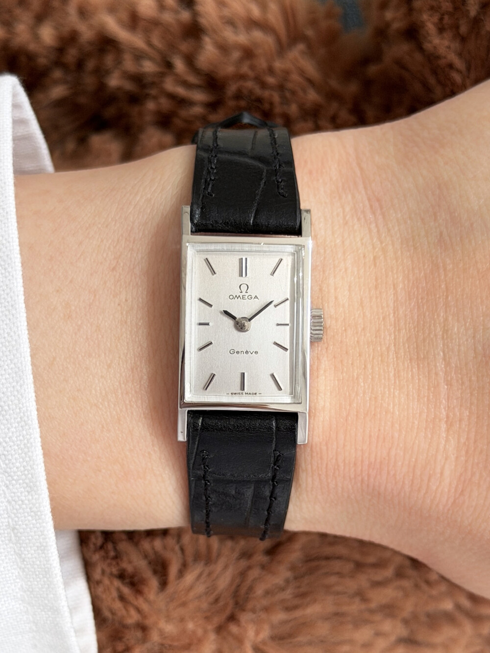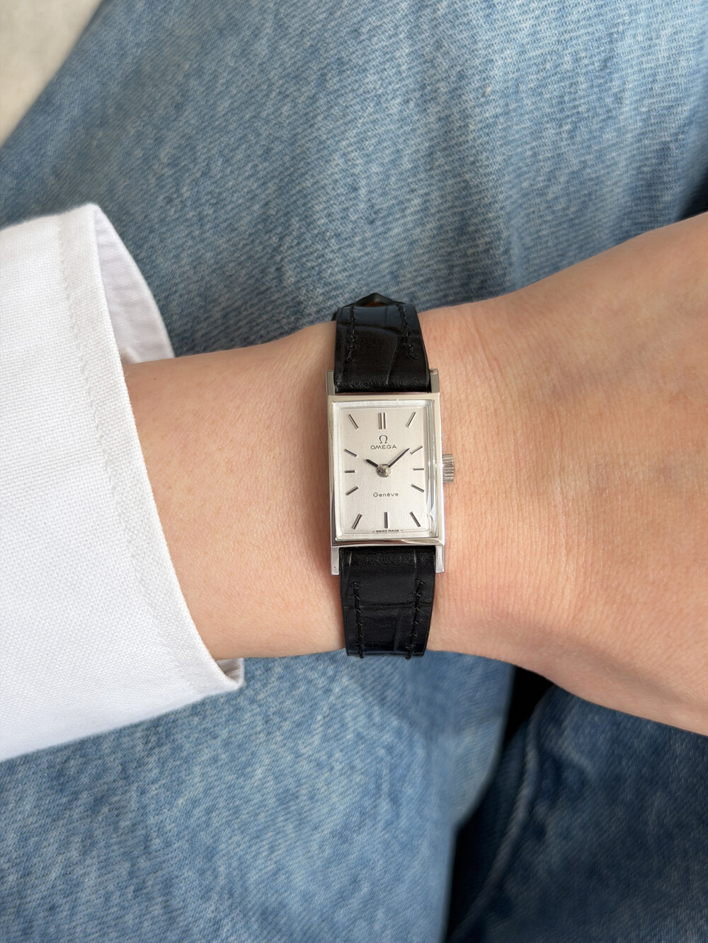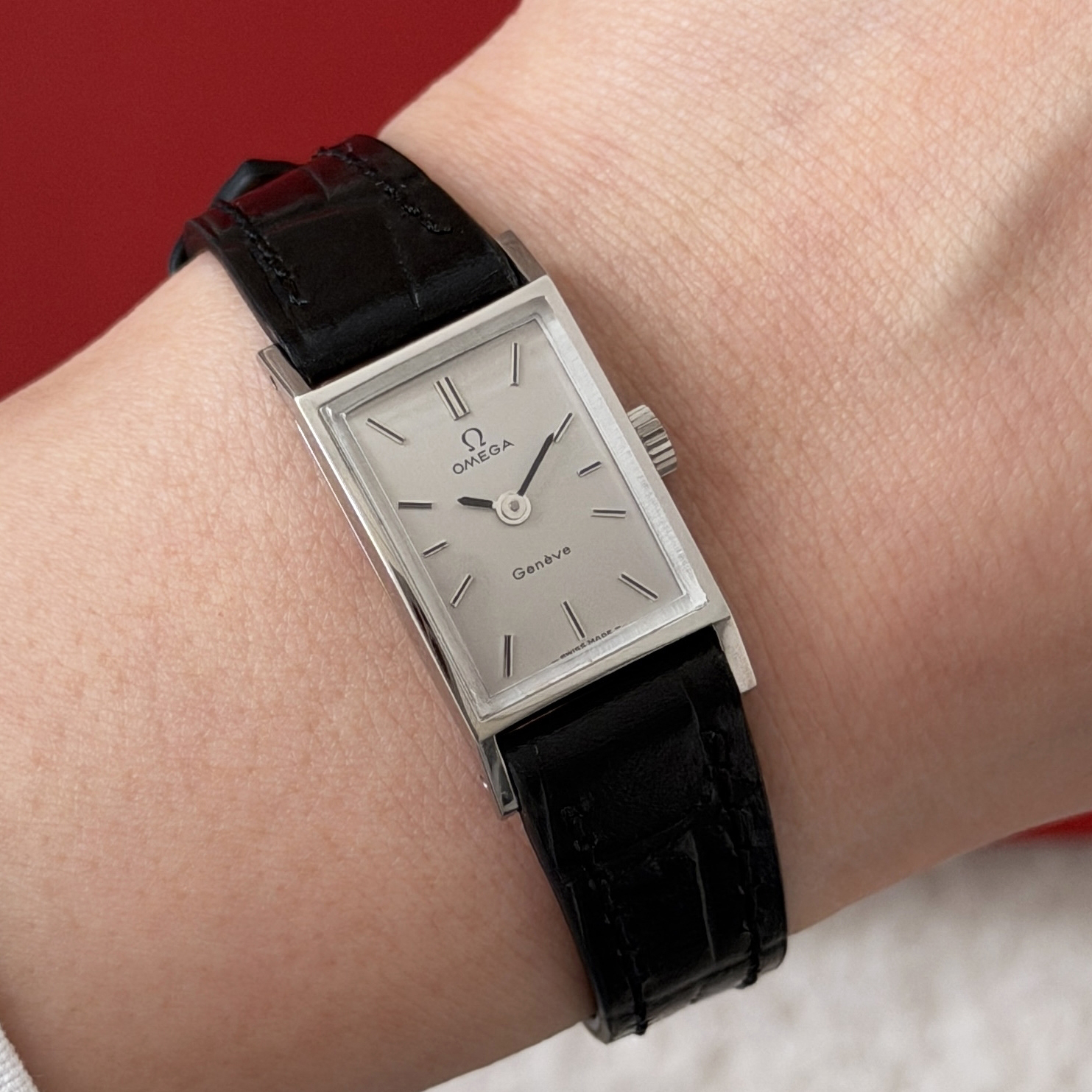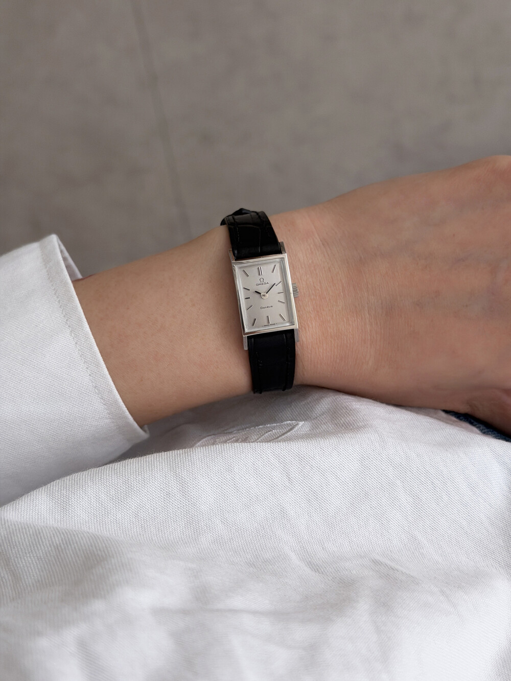 1971년도에 제작된 오메가 제네브 모델로 클래식한 스퀘어 케이스와
