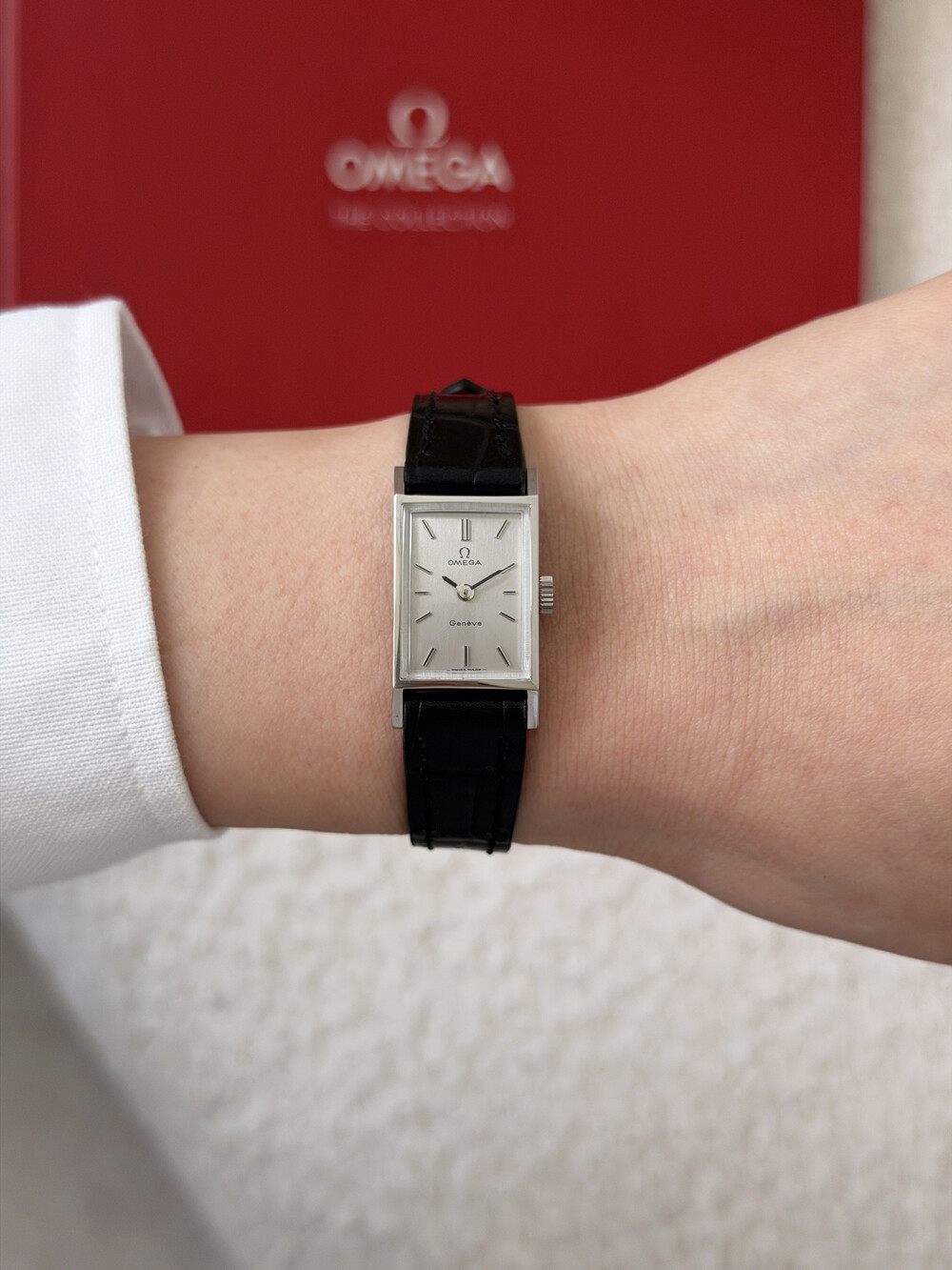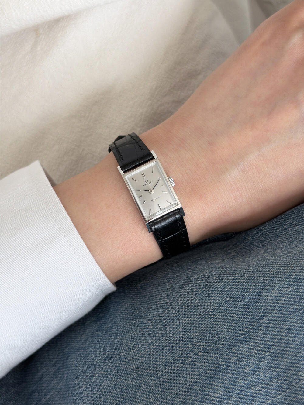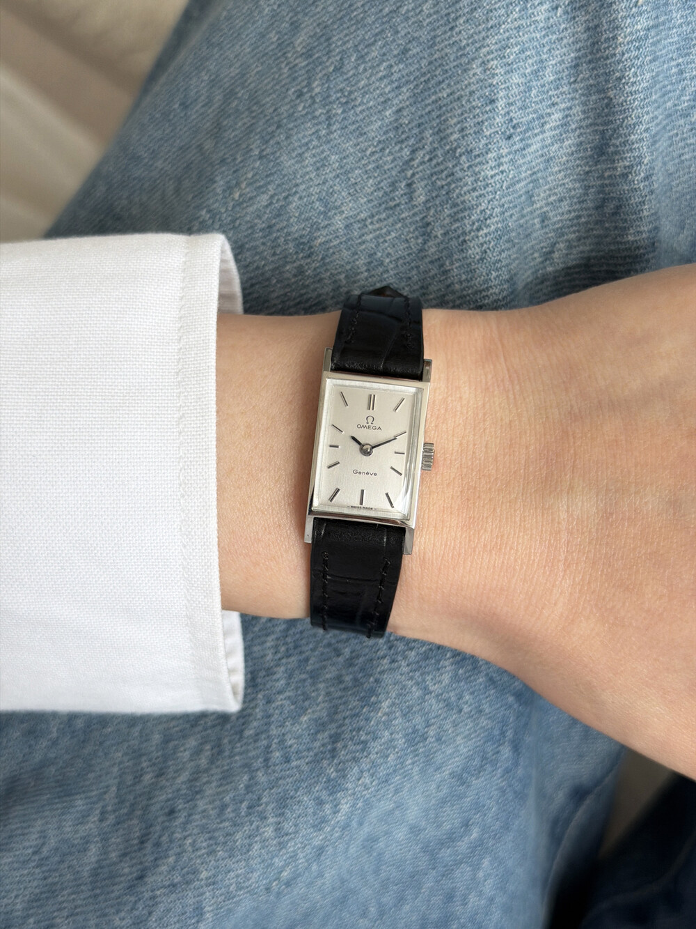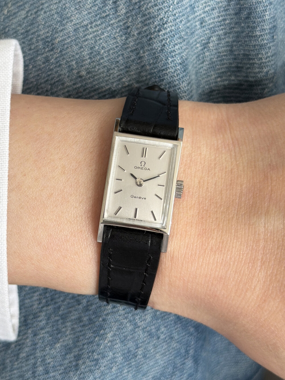 1971년도에 제작된 오메가 제네브 모델로 클래식한 스퀘어 케이스와
