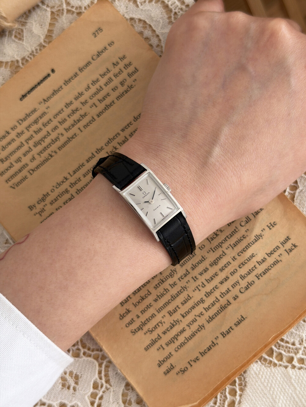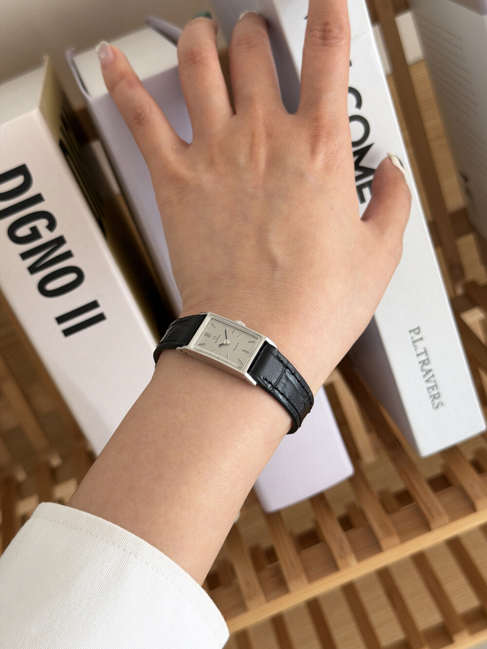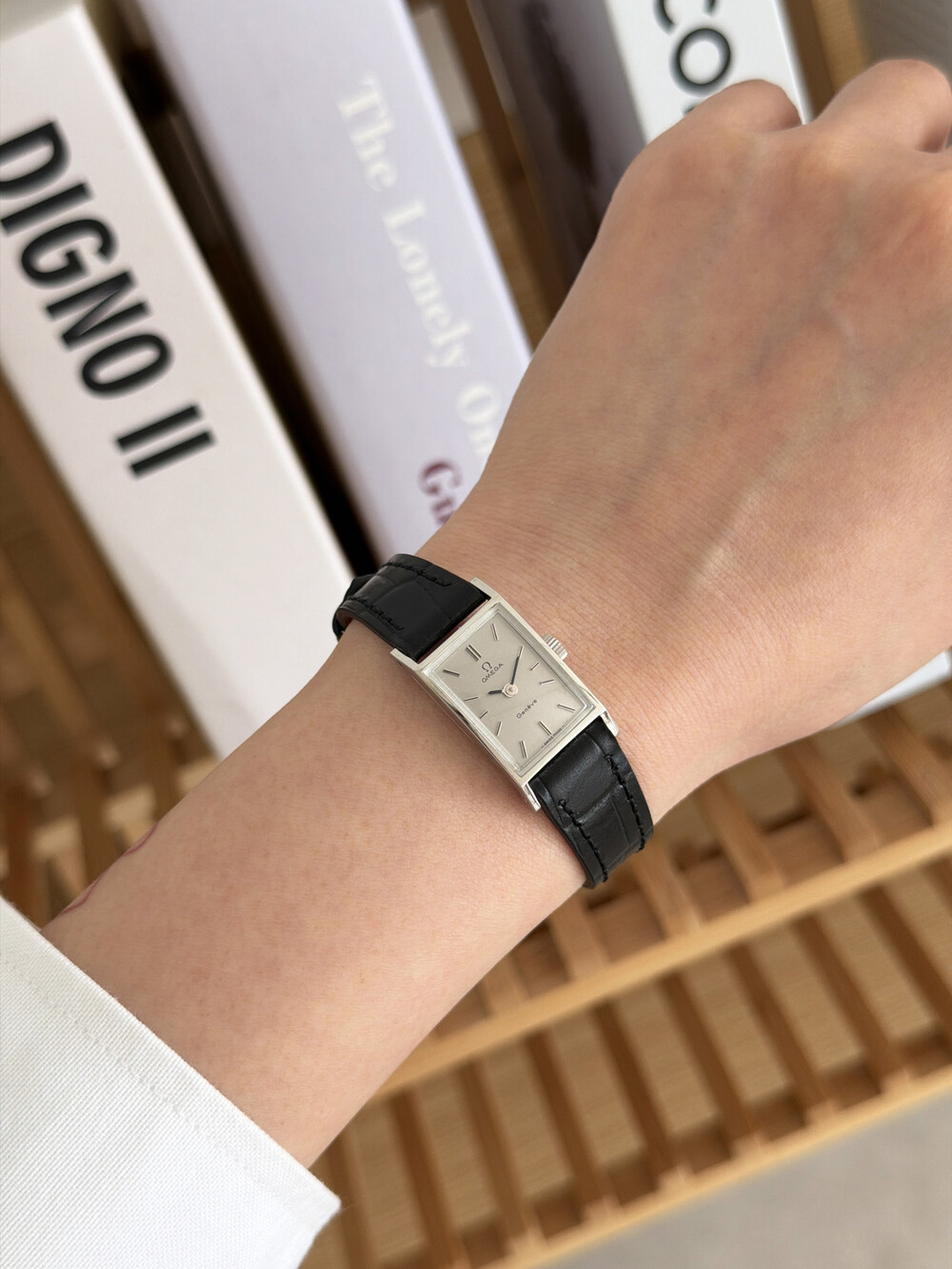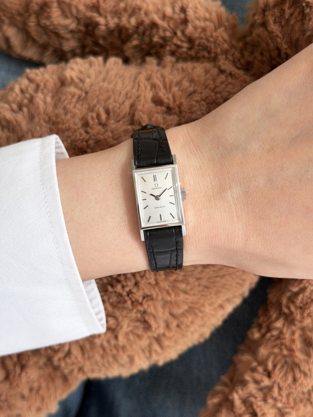 1971년도에 제작된 오메가 제네브 모델로 클래식한 스퀘어 케이스와