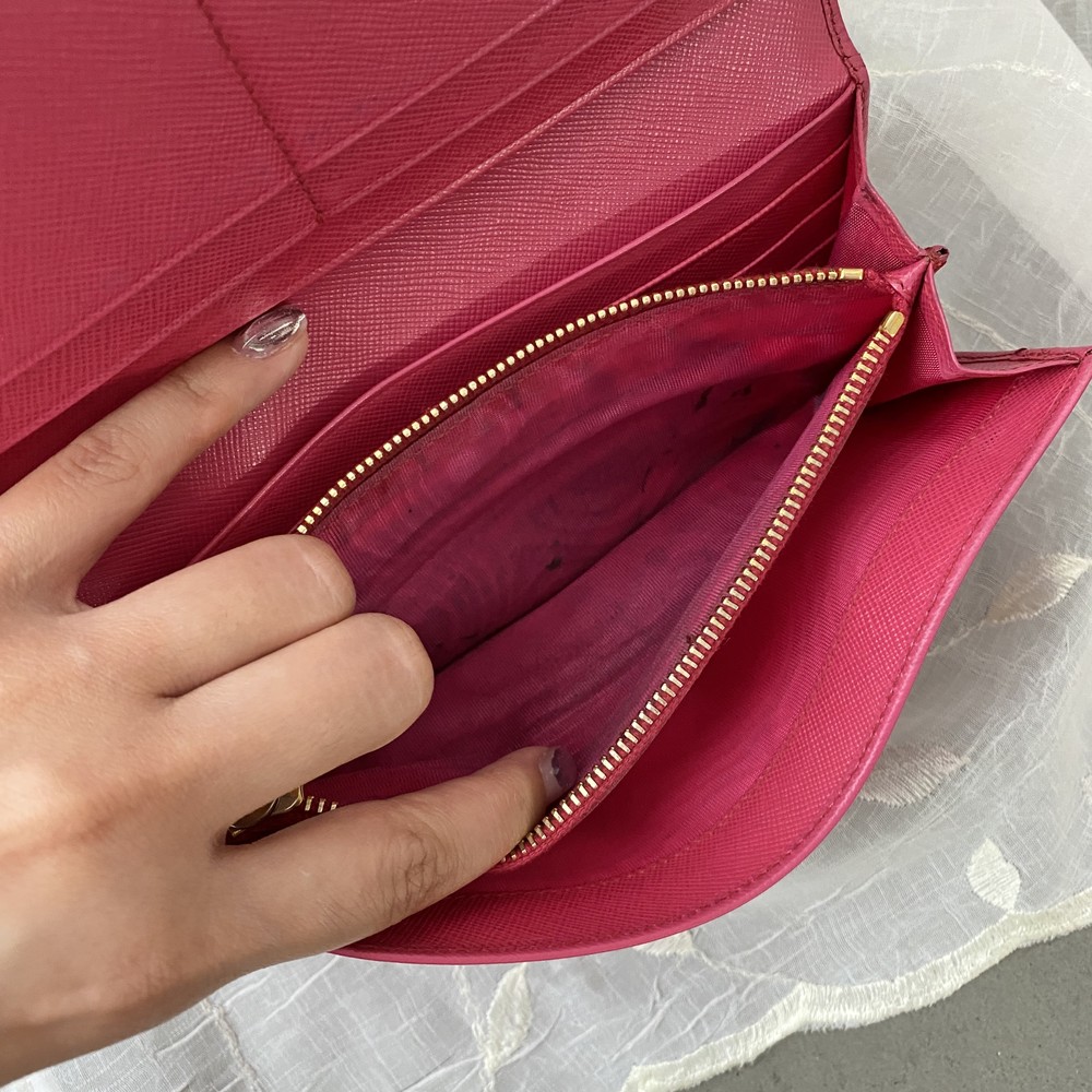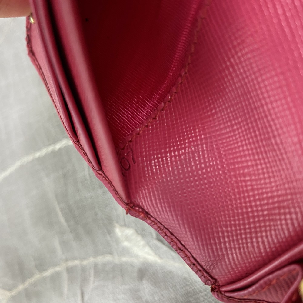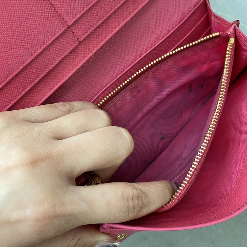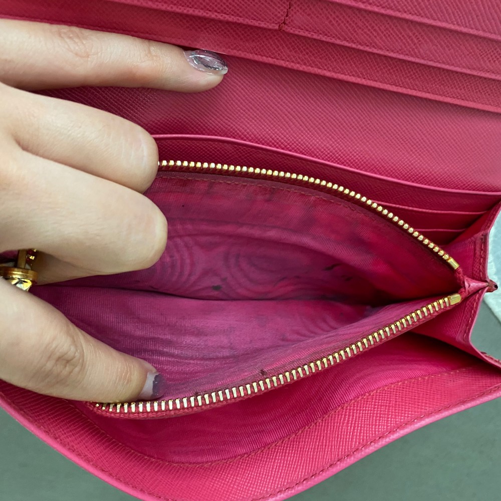 내부 포켓 속 내피가 파랗게 오염 및 외각 라인에 상처가 있습니다.