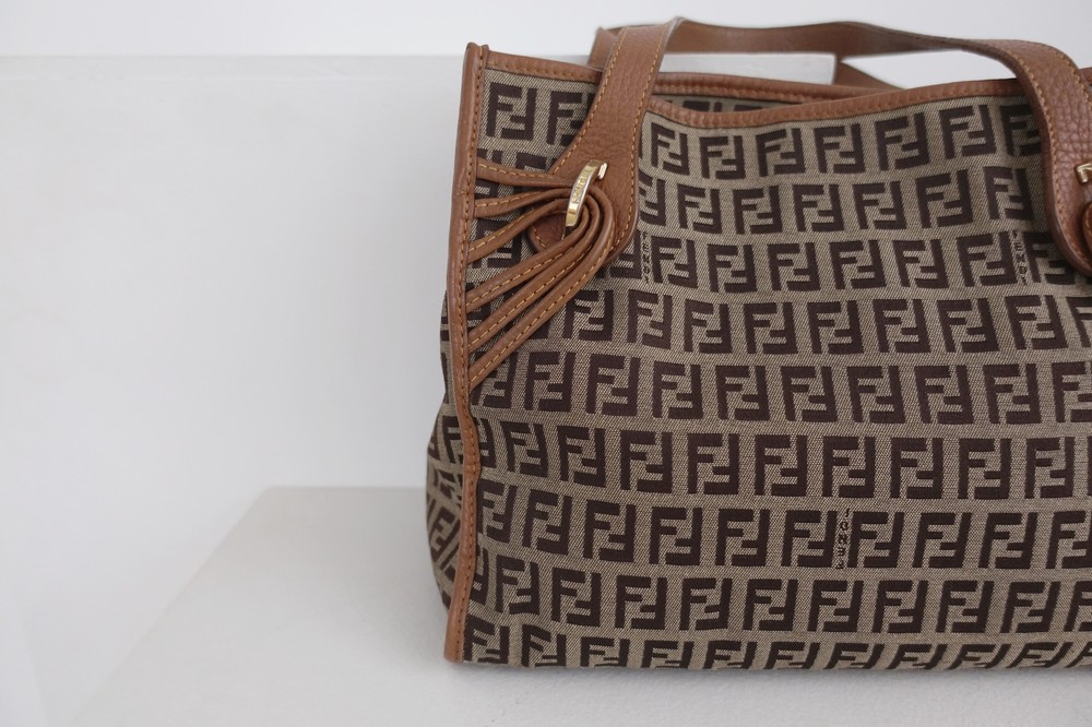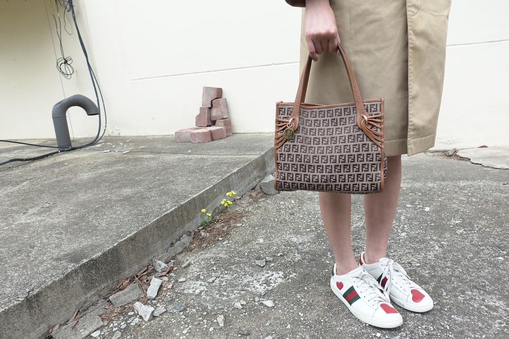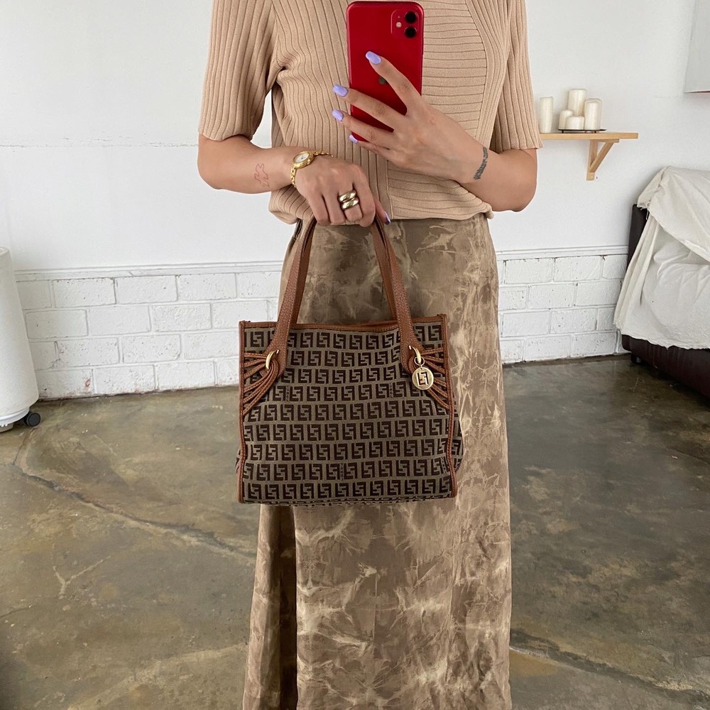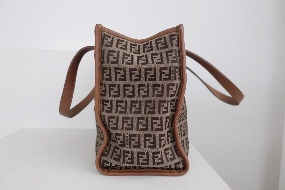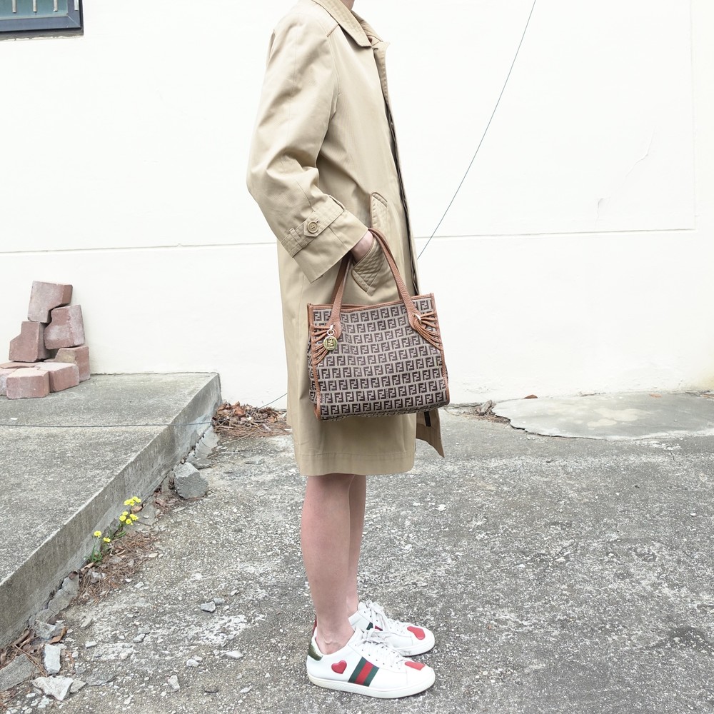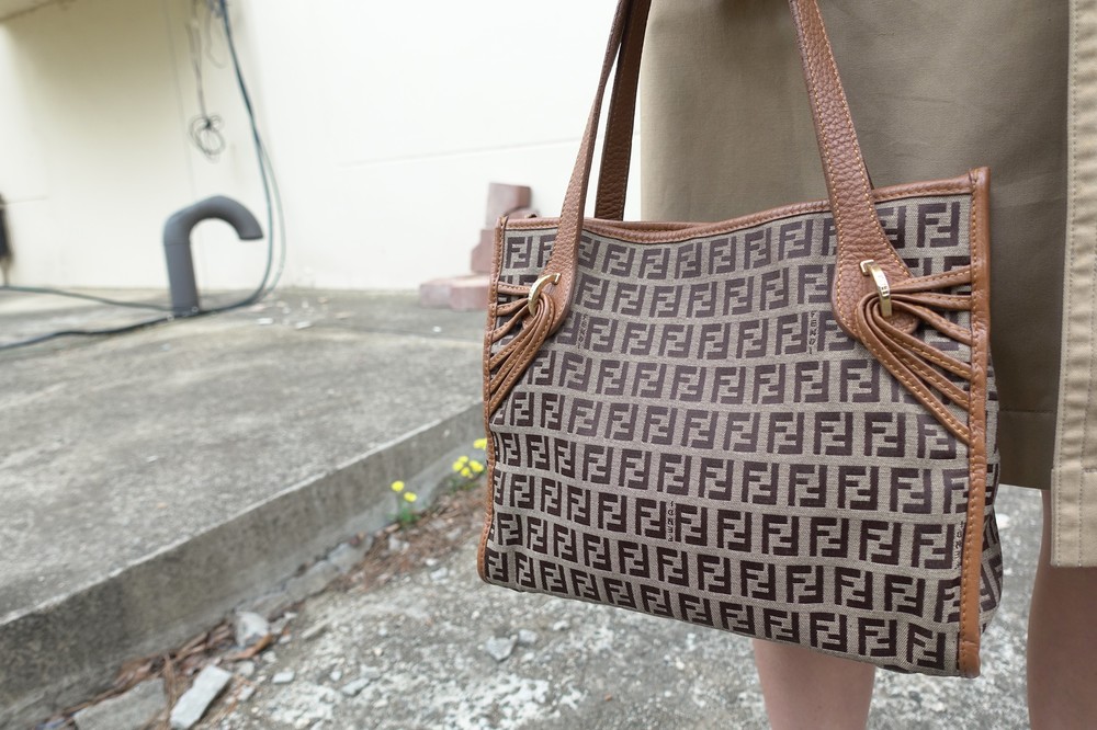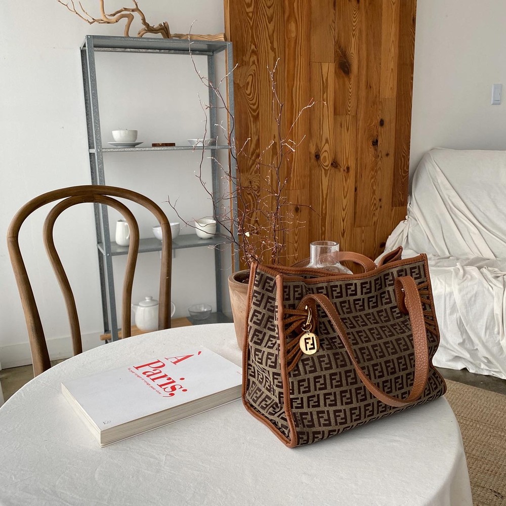미니멀한 주키노 패턴과 브라운 톤의 테두리 가죽과도 조합이 아름다운 펜디 가방입니다.