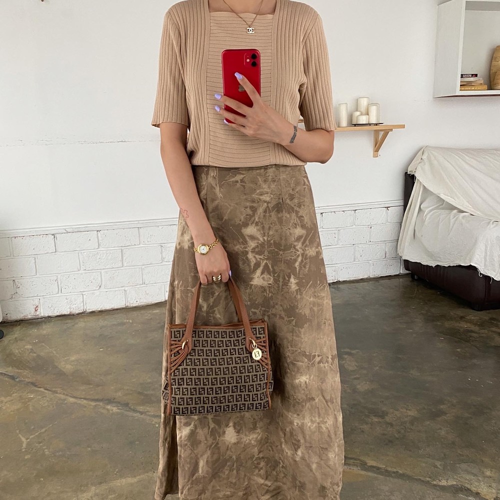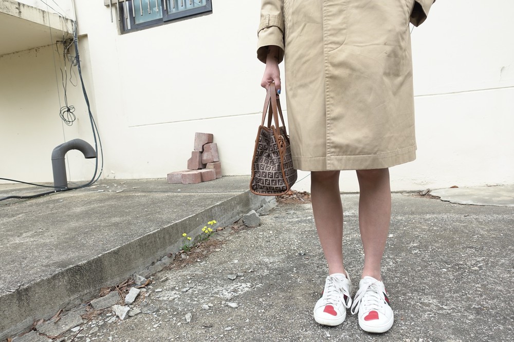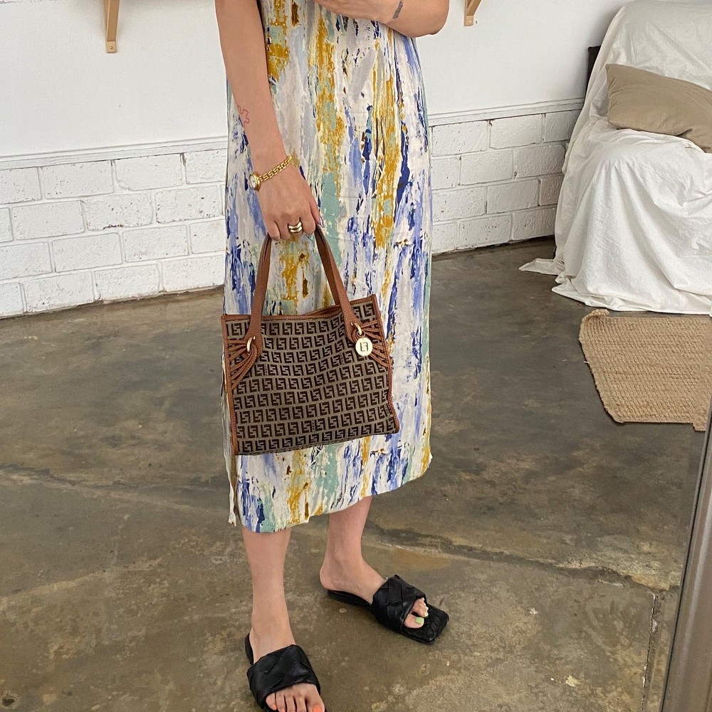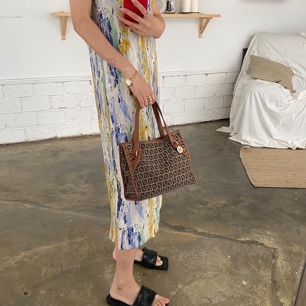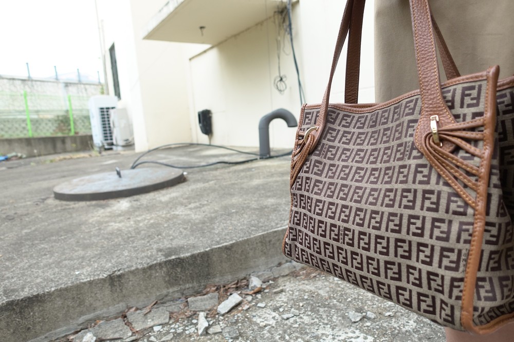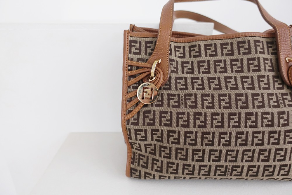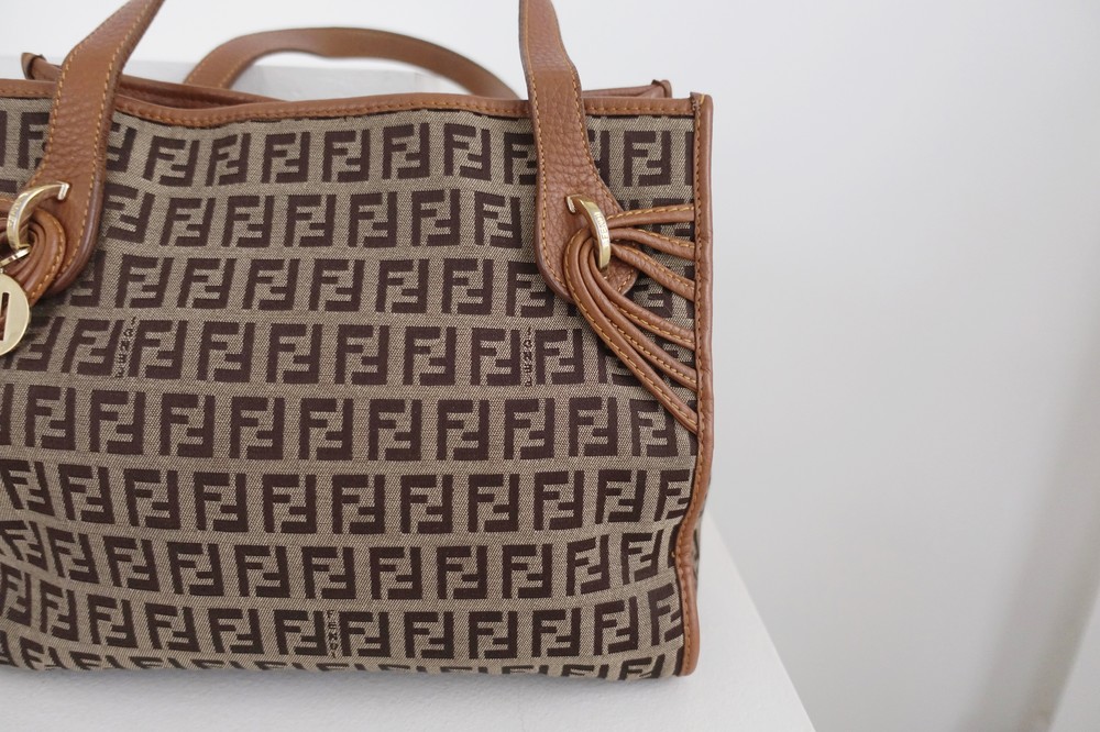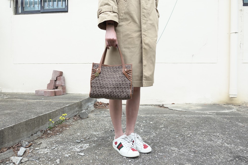미니멀한 주키노 패턴과 브라운 톤의 테두리 가죽과도 조합이 아름다운 펜디 가방입니다.