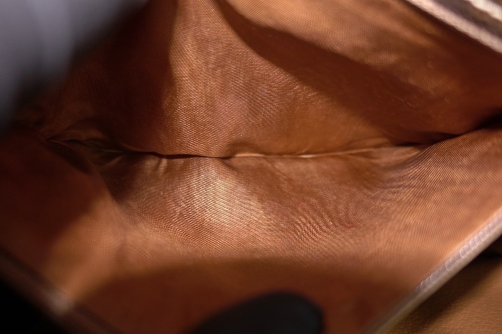 헤드 탑 , 내부 코너의 바디를 감싸는 테두리 가죽 (파이핑)들 과 스트랩에 약간의 데미지들이 있습니다.