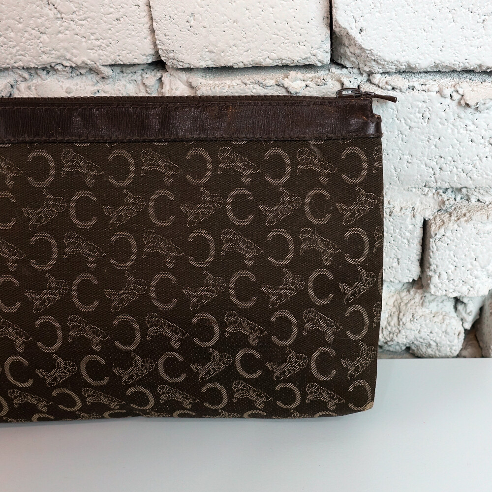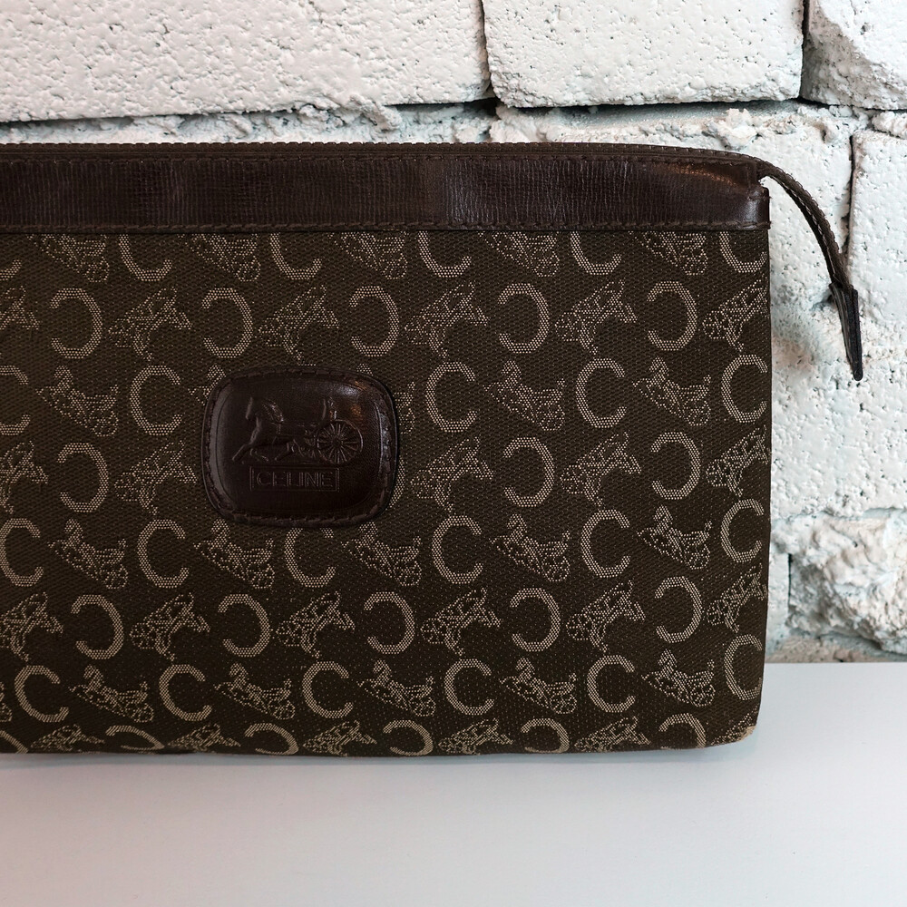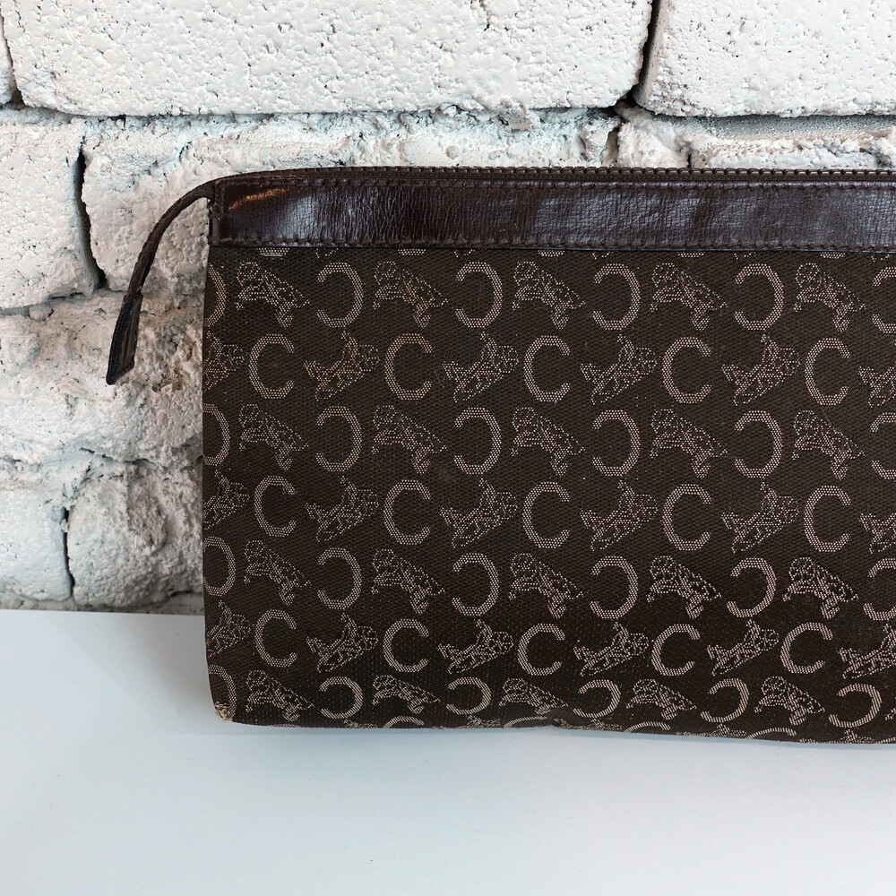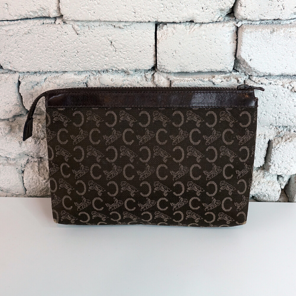 오래된 빈티지 셀린느 클러치 백으로 바디 캔버스 왼쪽 상단, 바닥 캔버스에 생활 흠집이 있습니다.