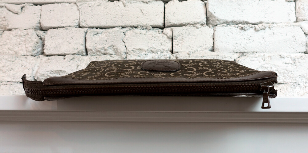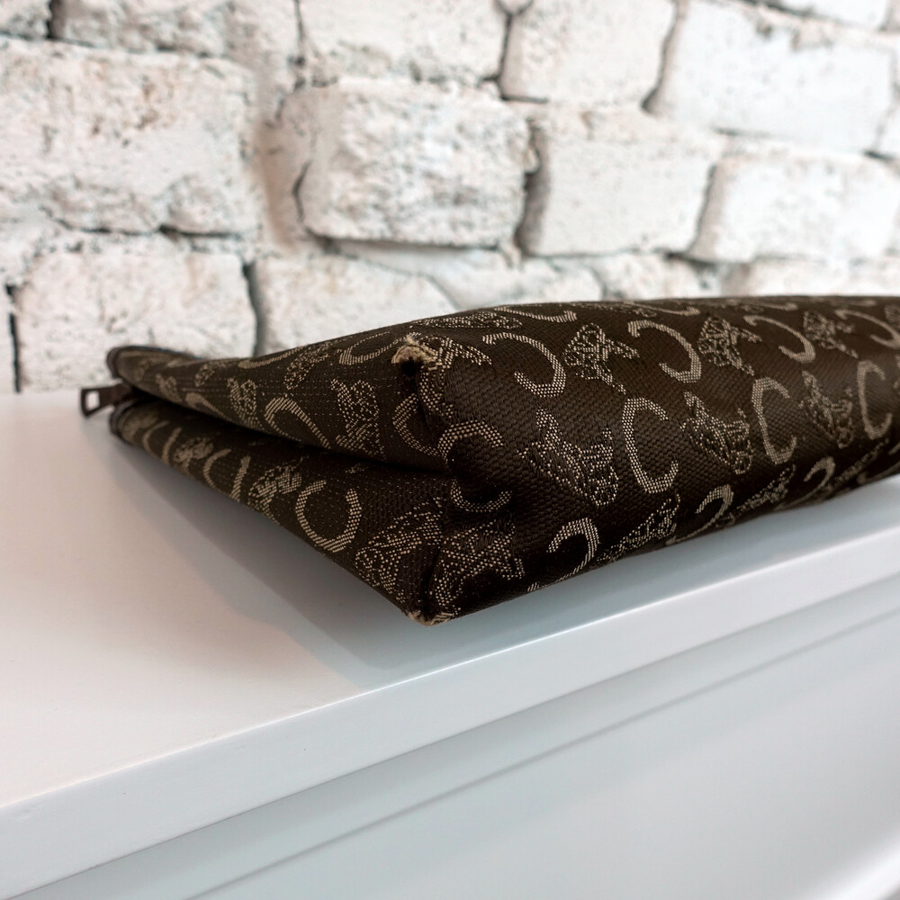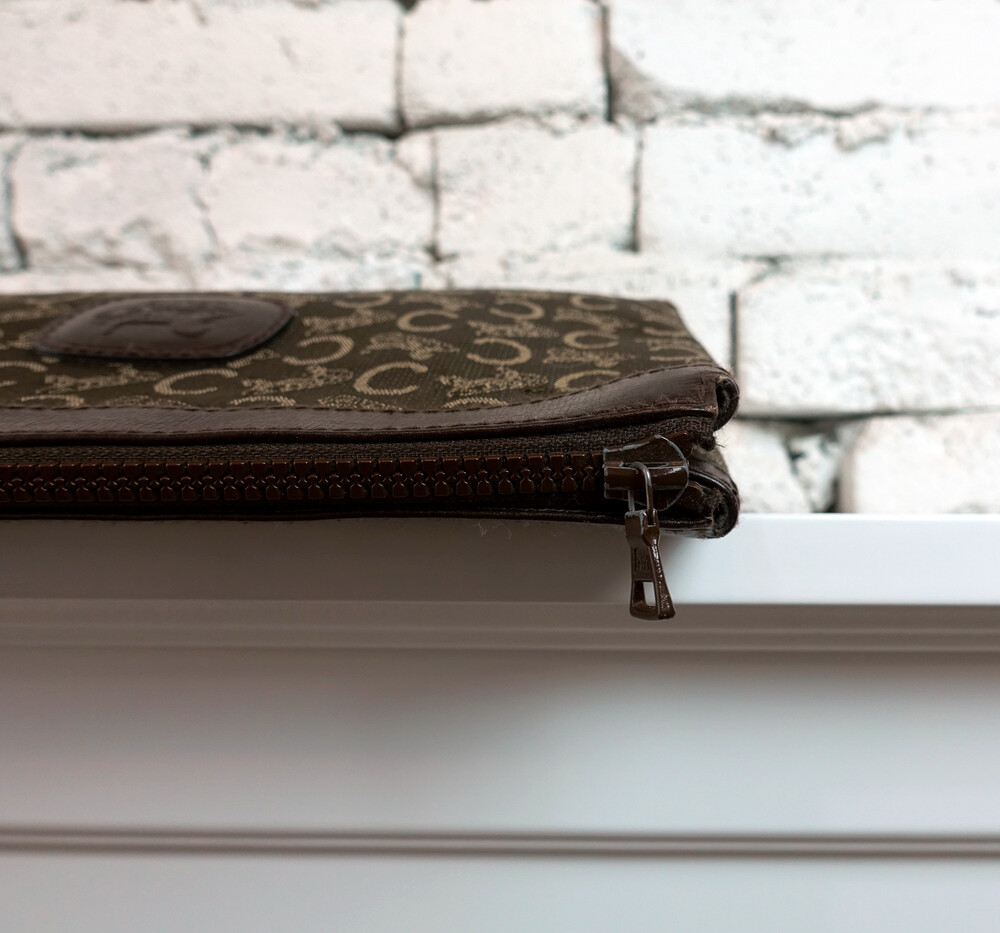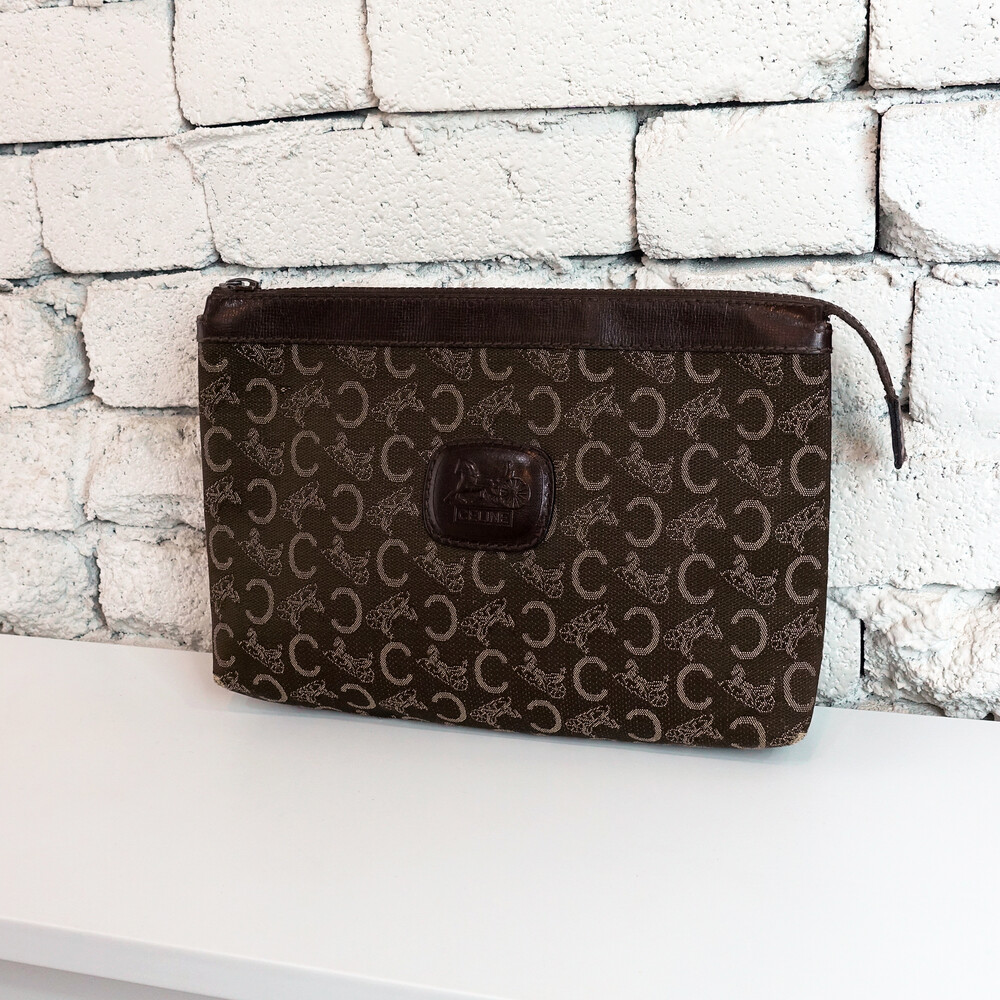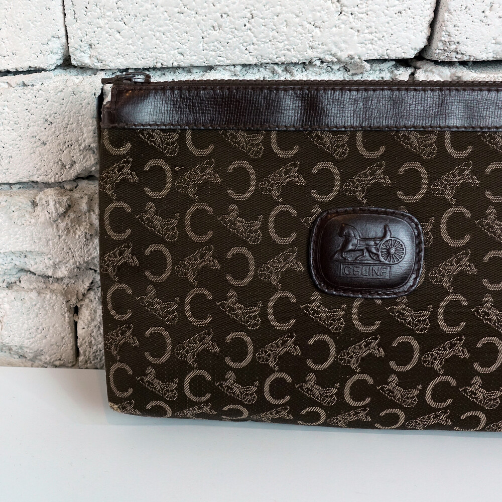 오래된 빈티지 셀린느 클러치 백으로 바디 캔버스 왼쪽 상단, 바닥 캔버스에 생활 흠집이 있습니다.