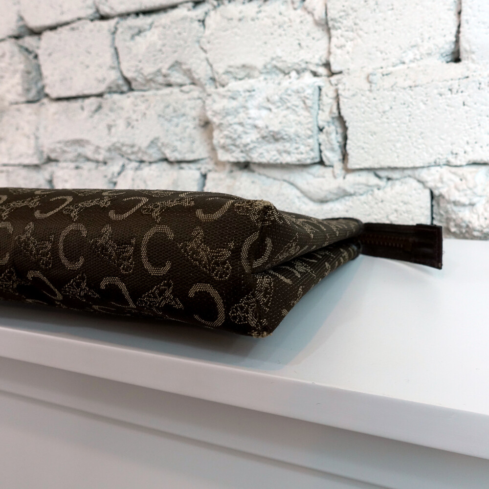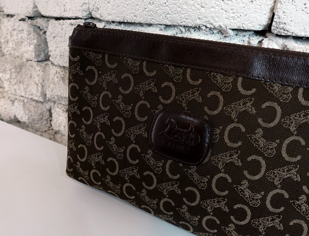 하드 캔버스 바디와 부드러운 가죽 헤드탑에 중앙의 셀린느 마차 심볼이 매력적인 셀린느 클러치 백입니다.