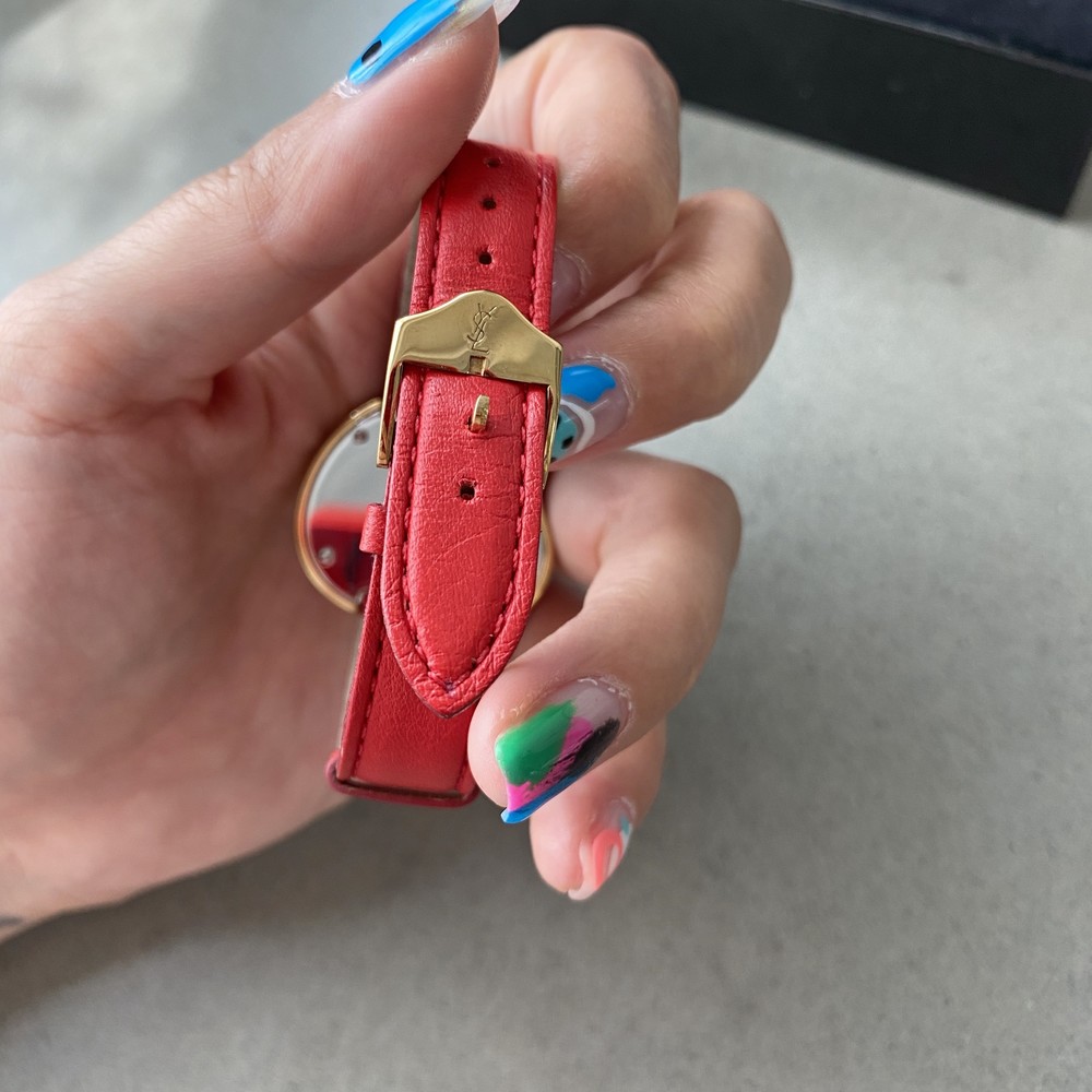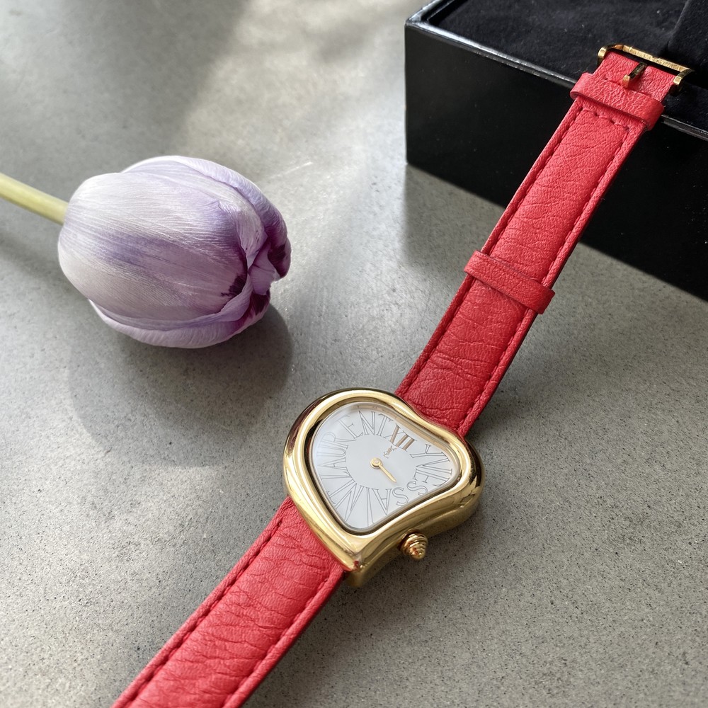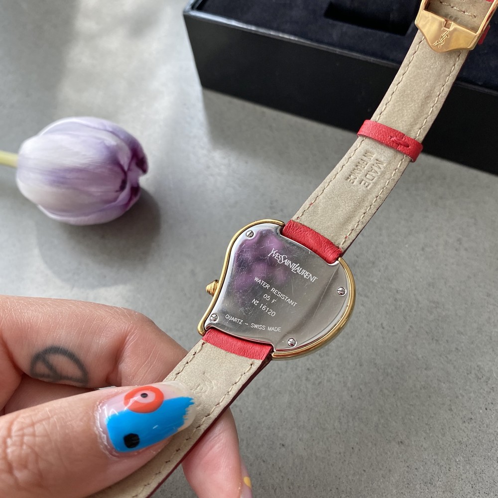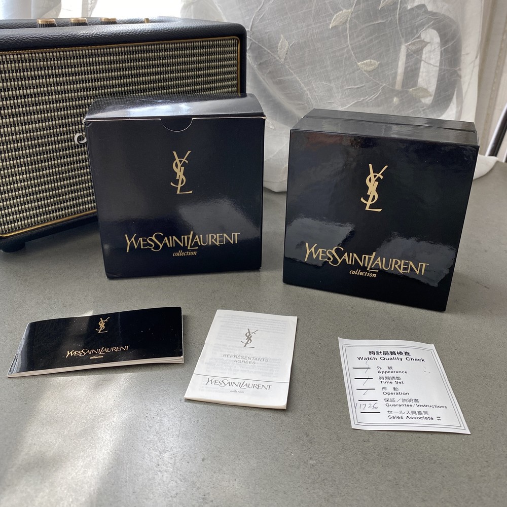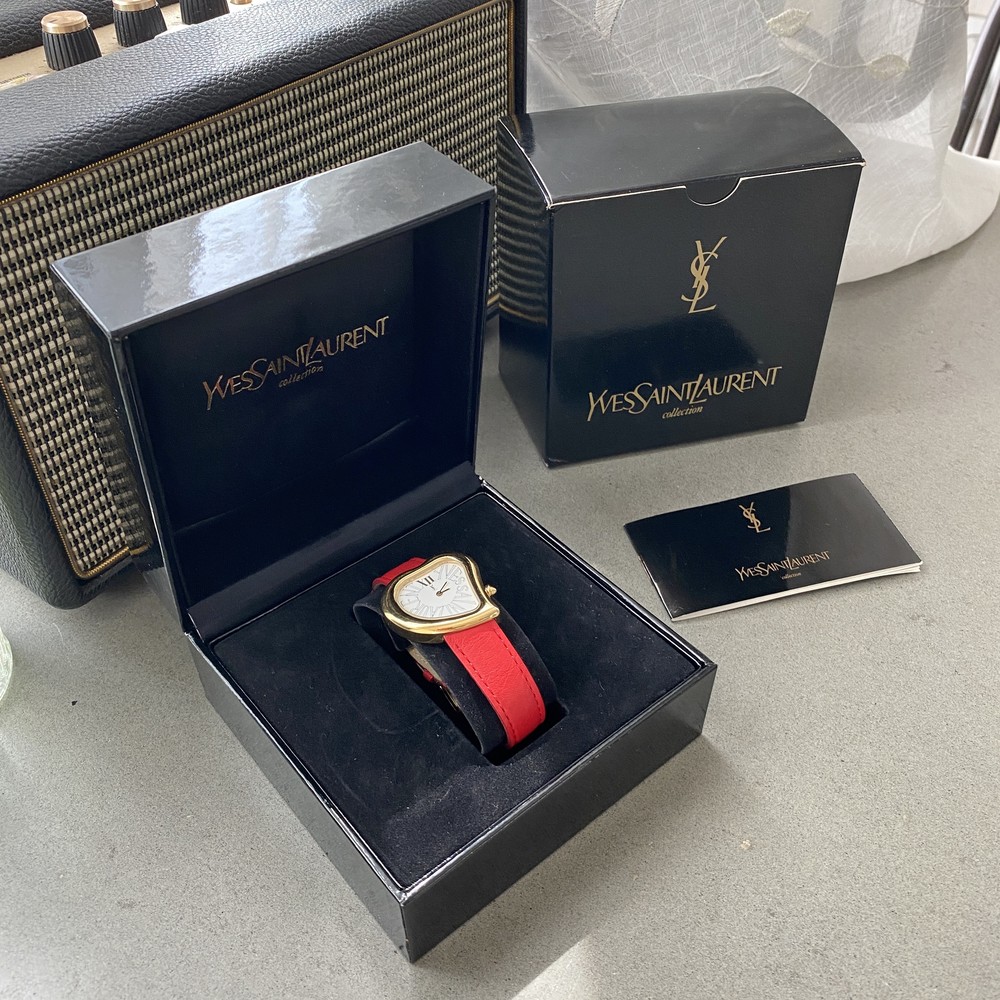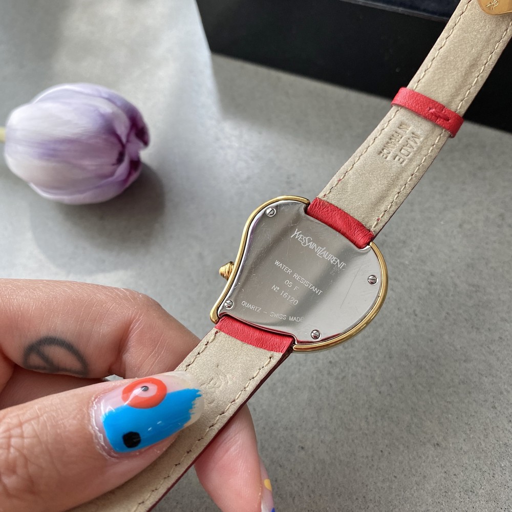 골드 케이스에 입생로랑 로고 다이얼이 인상적인 제품이며