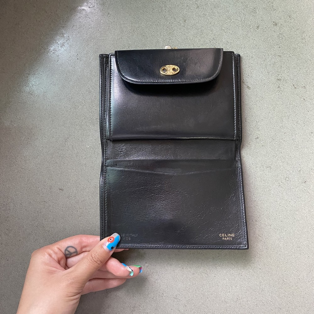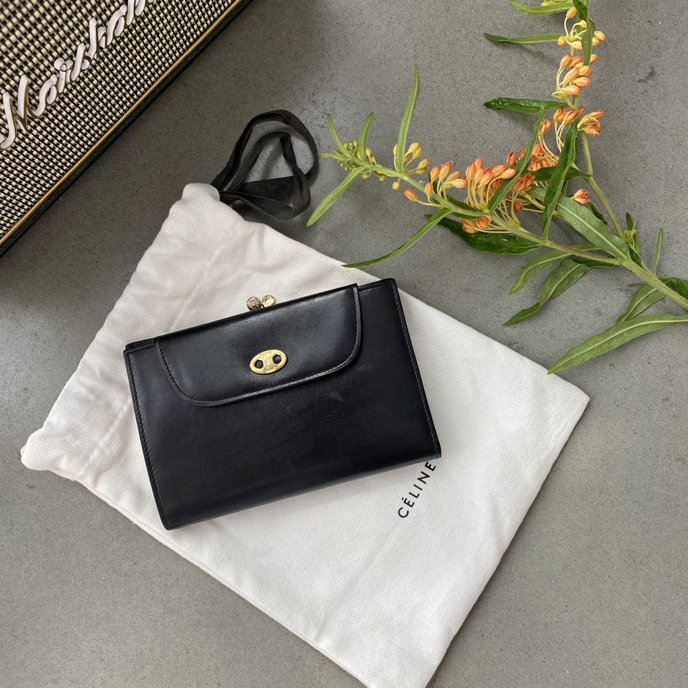 빈티지 셀린느 지갑 모델로 중앙의 셀린느 트리오페 심볼이 인상 적인 제품입니다.