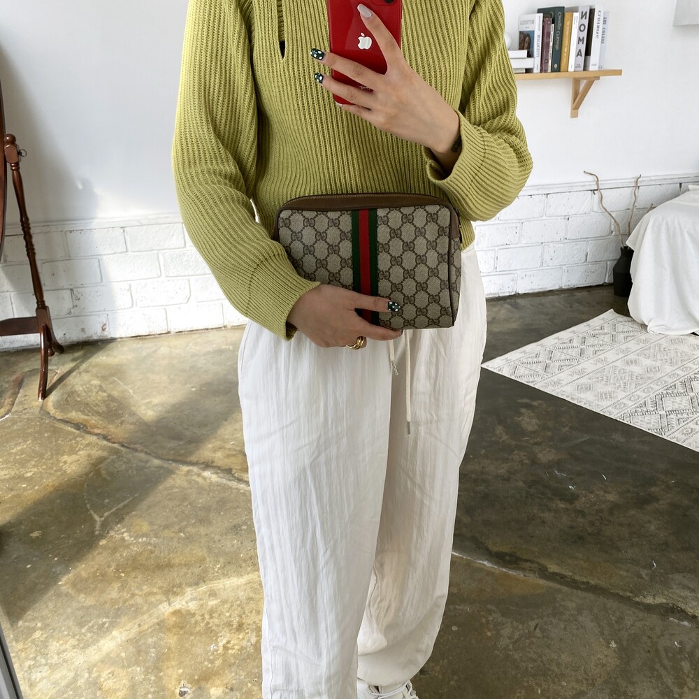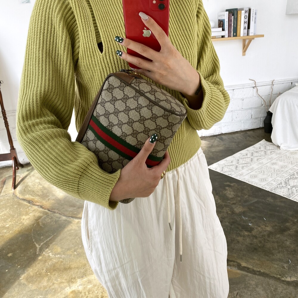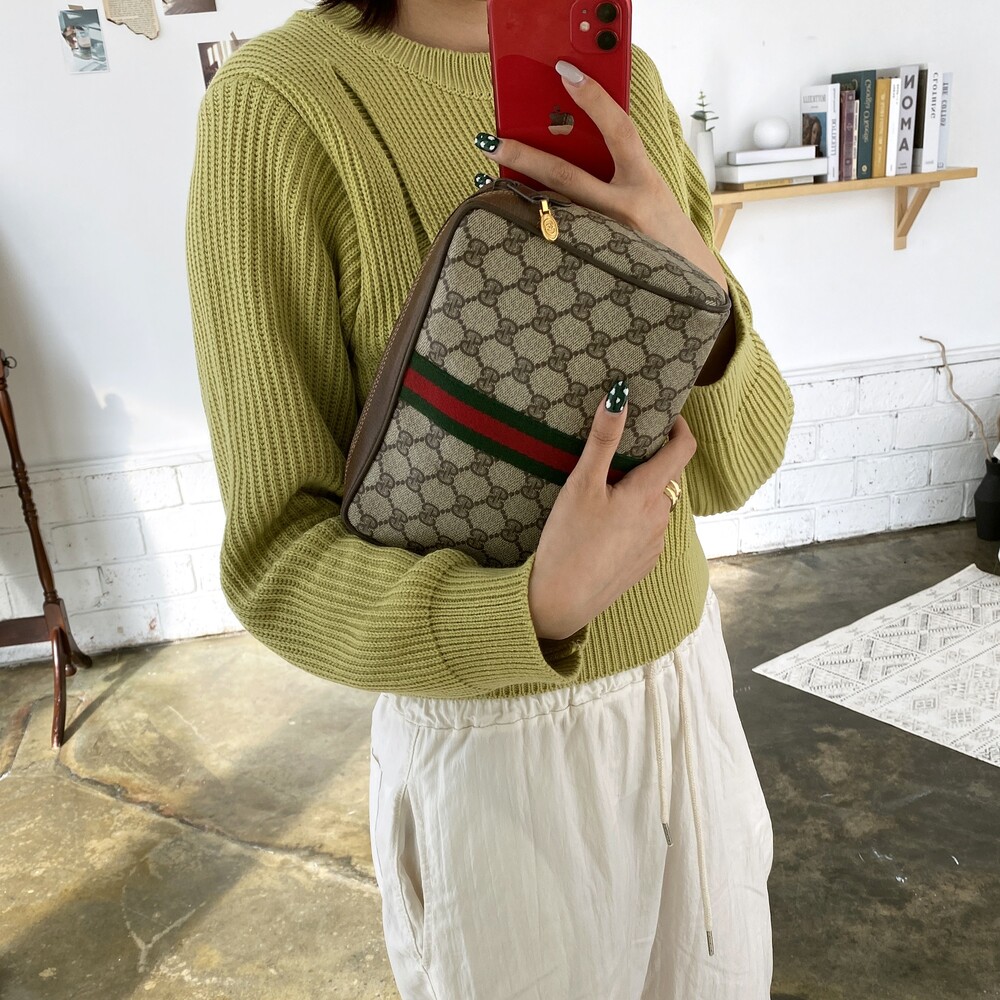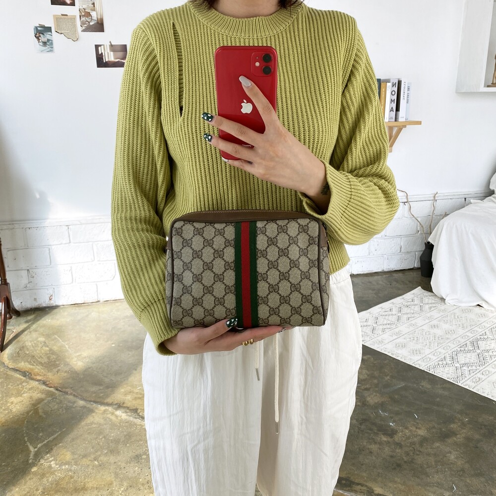중앙의 구찌 웹 라인과 구찌 모노그램 바디 조합이 굉장히 좋은 구찌 오피디아백입니다.