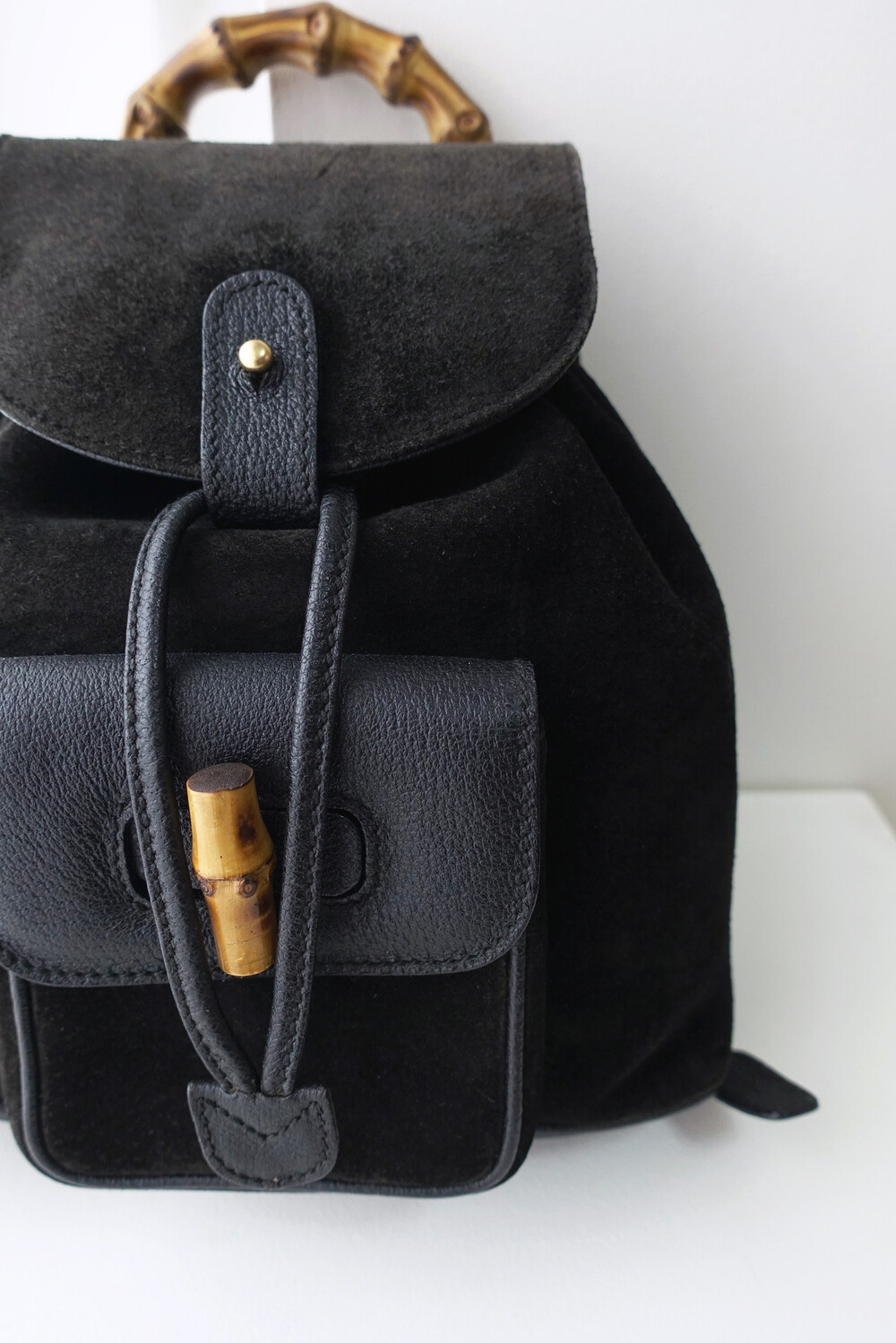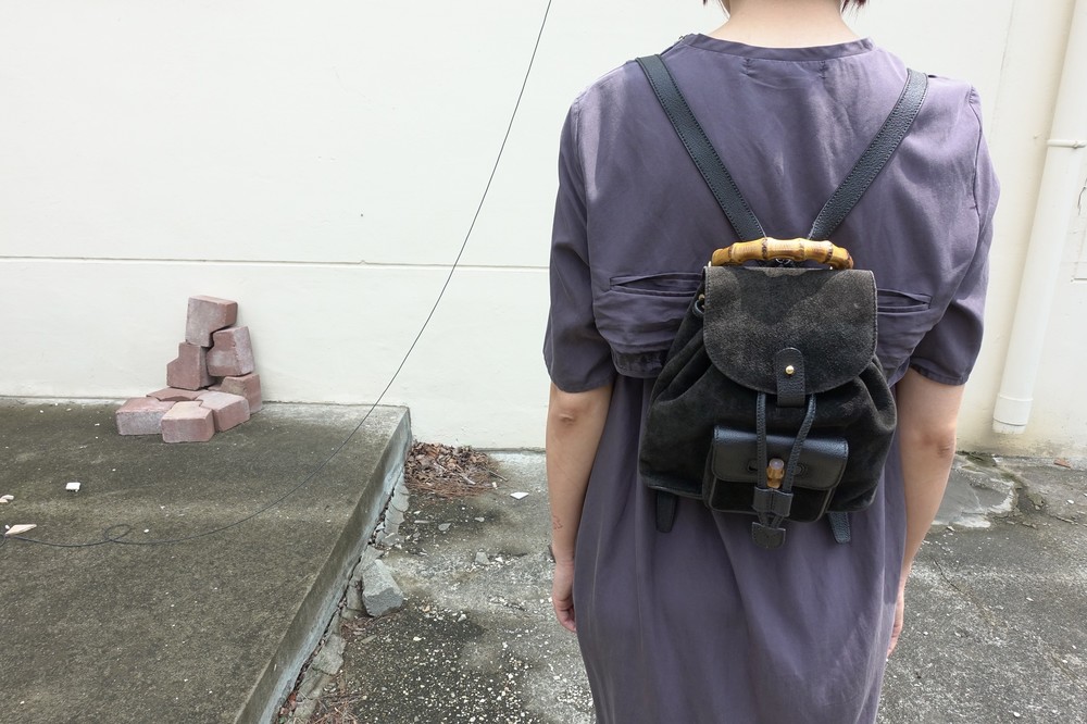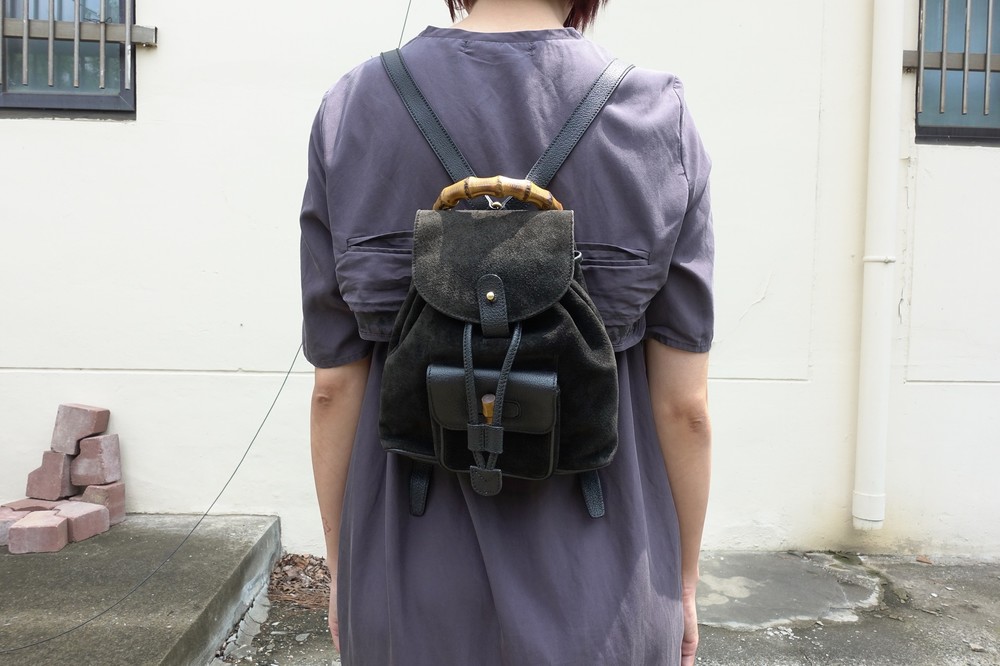 빈티지 구찌 스웨이드 뱀부 백팩 입니다.