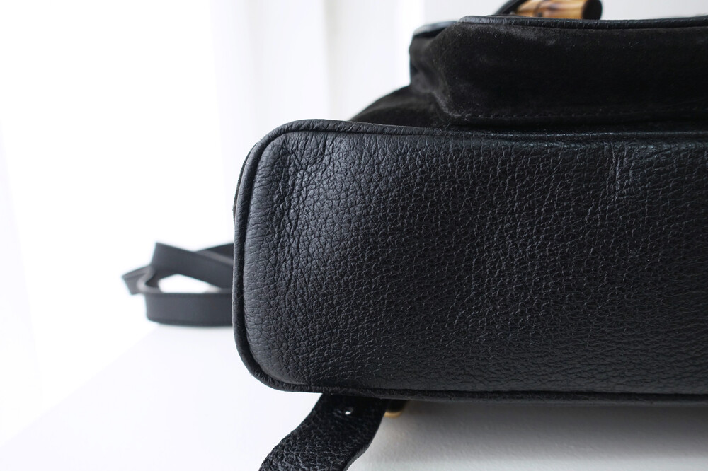 굉장히 좋은 편이며 빈티지 구찌 뱀부 백팩의 매력이 물씬 풍기는 모델입니다.
