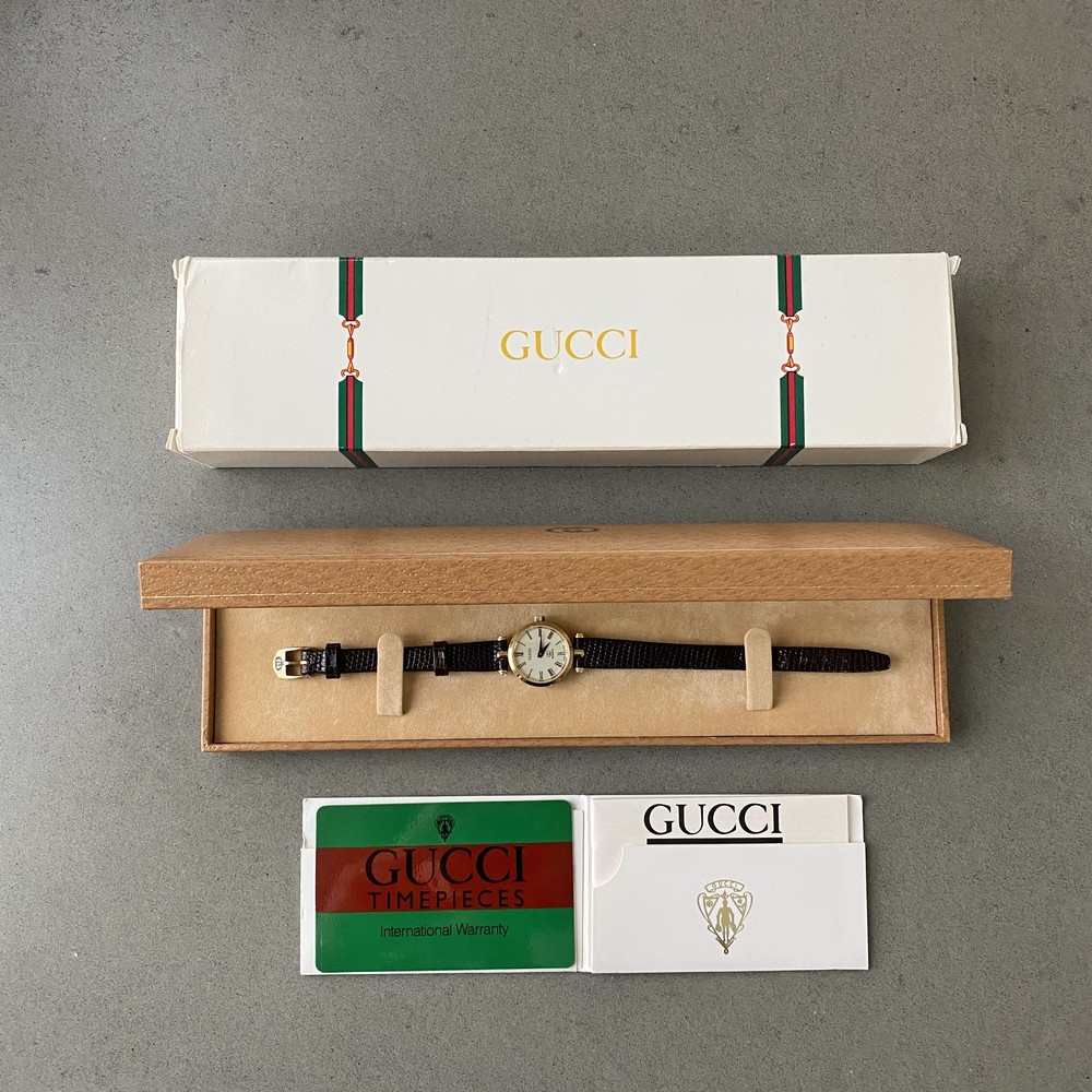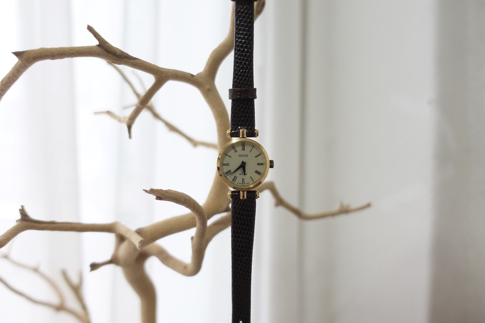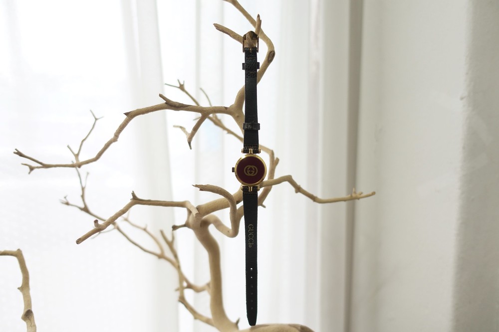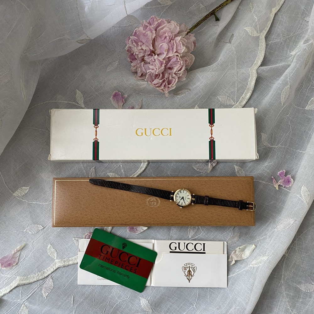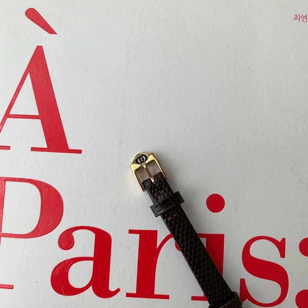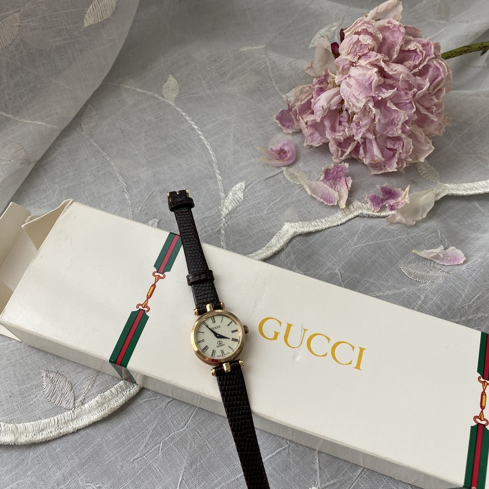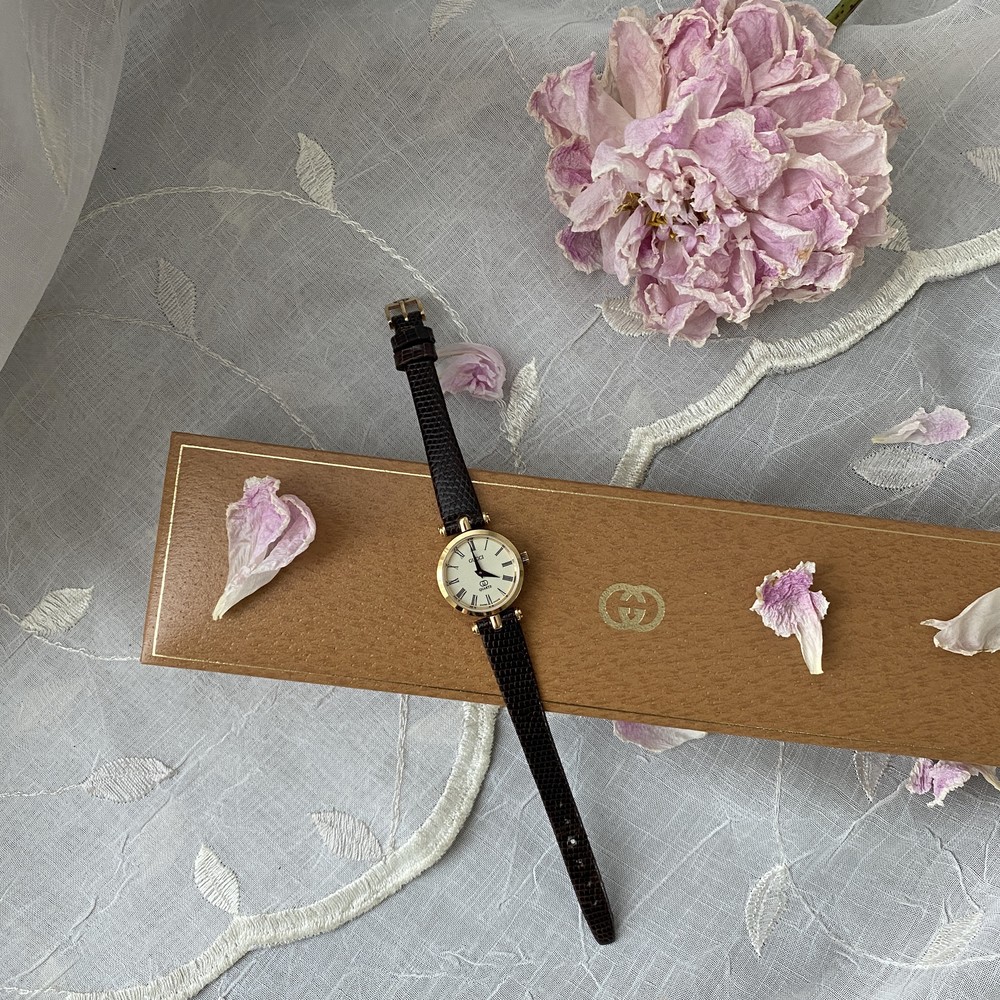 너무나도 잘 에이징 된 골드 다이얼과 구찌 GG 심볼이 인상적이며