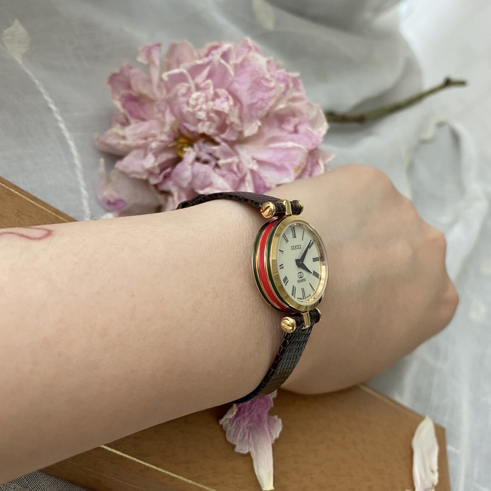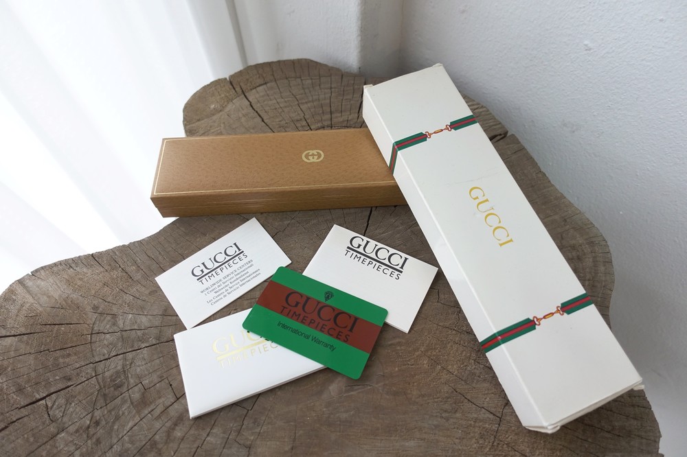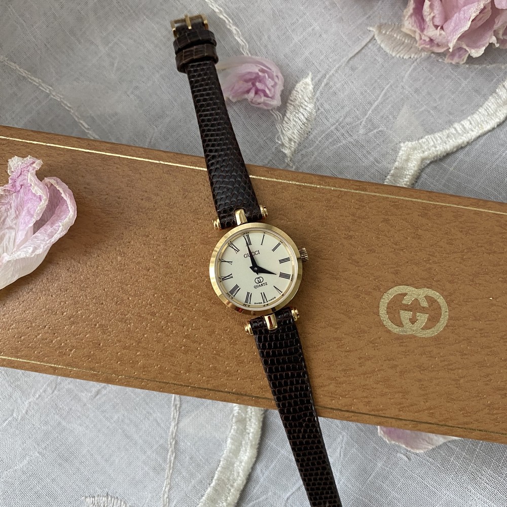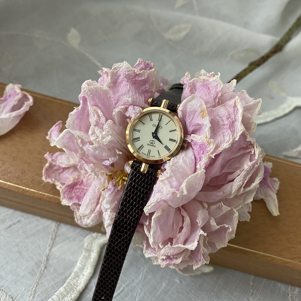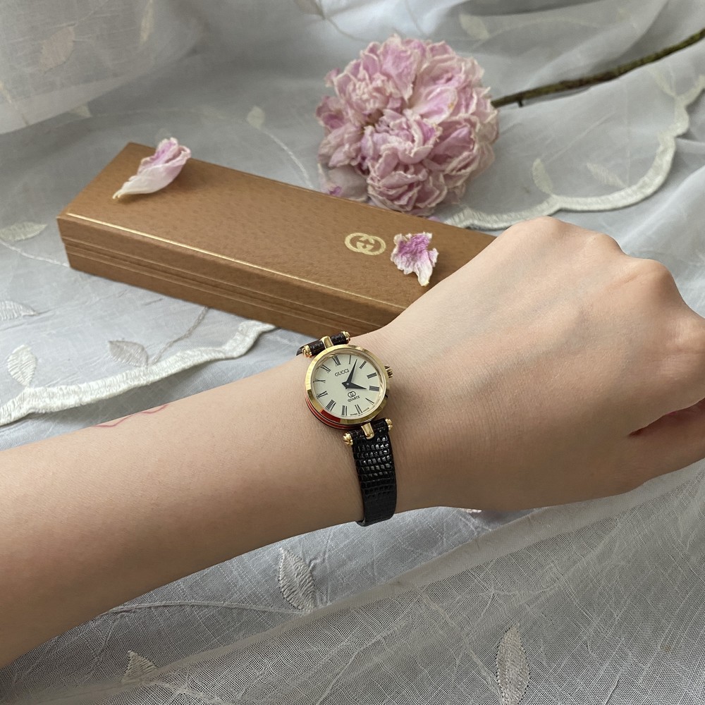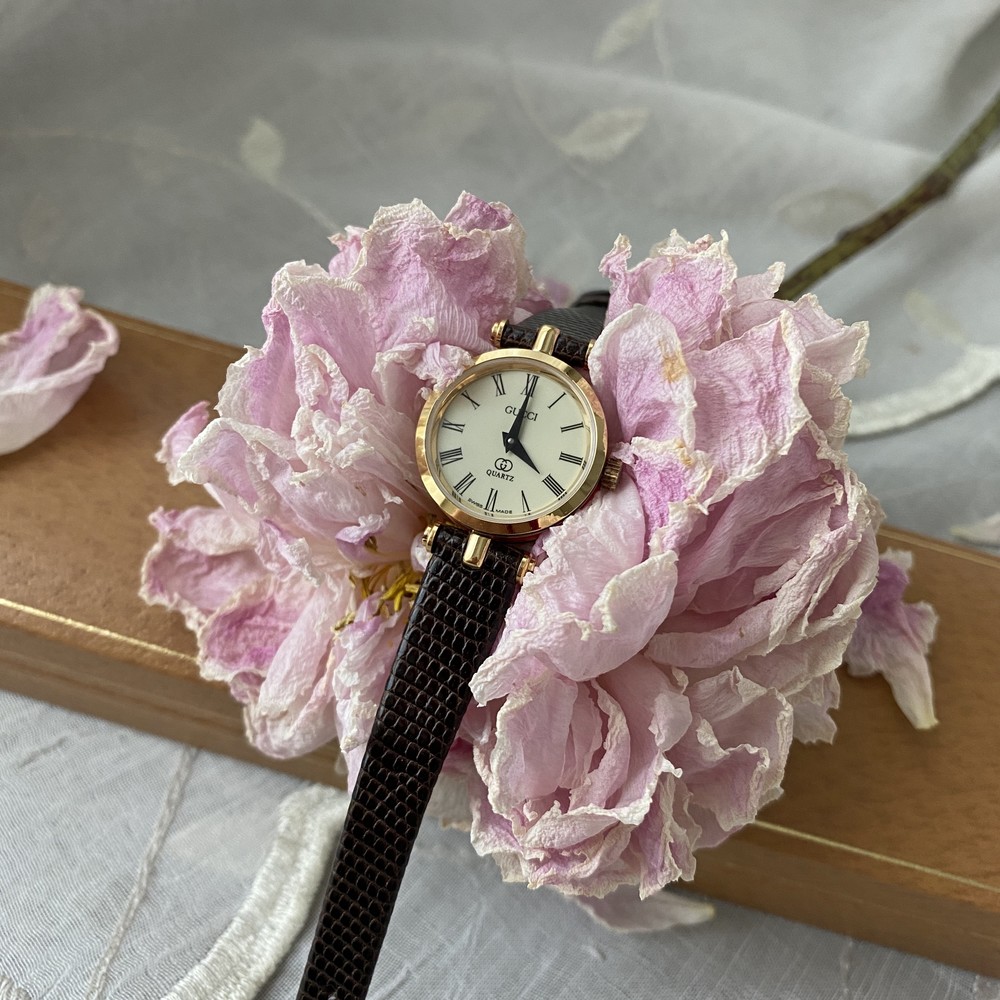 너무나도 잘 에이징 된 골드 다이얼과 구찌 GG 심볼이 인상적이며