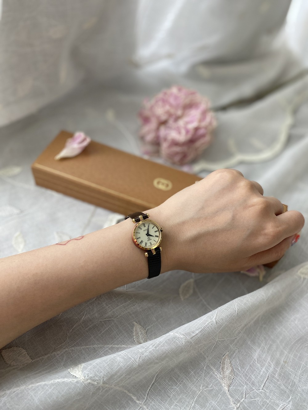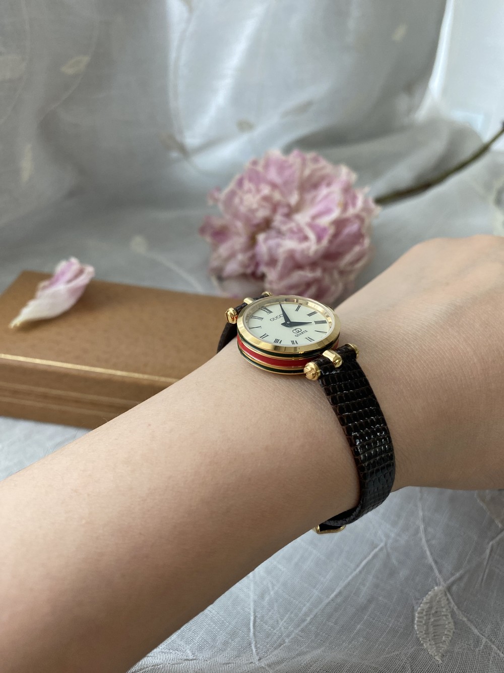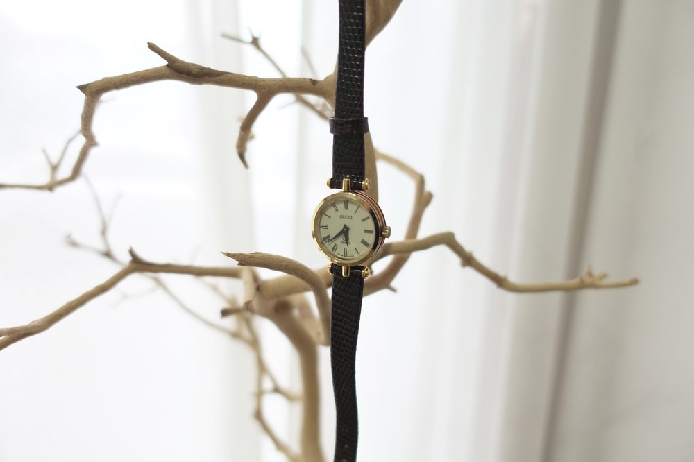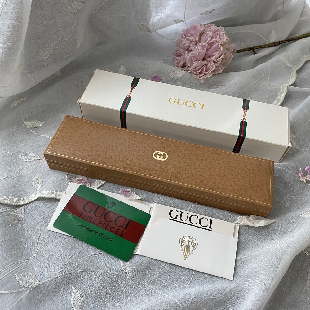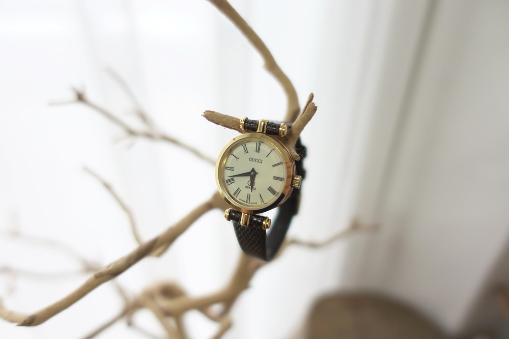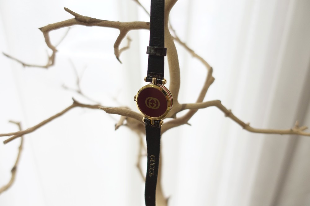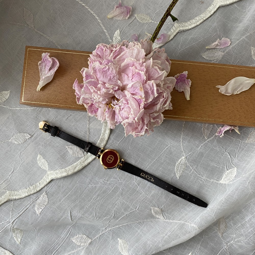 너무나도 잘 에이징 된 골드 다이얼과 구찌 GG 심볼이 인상적이며