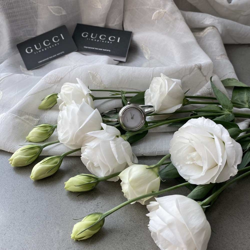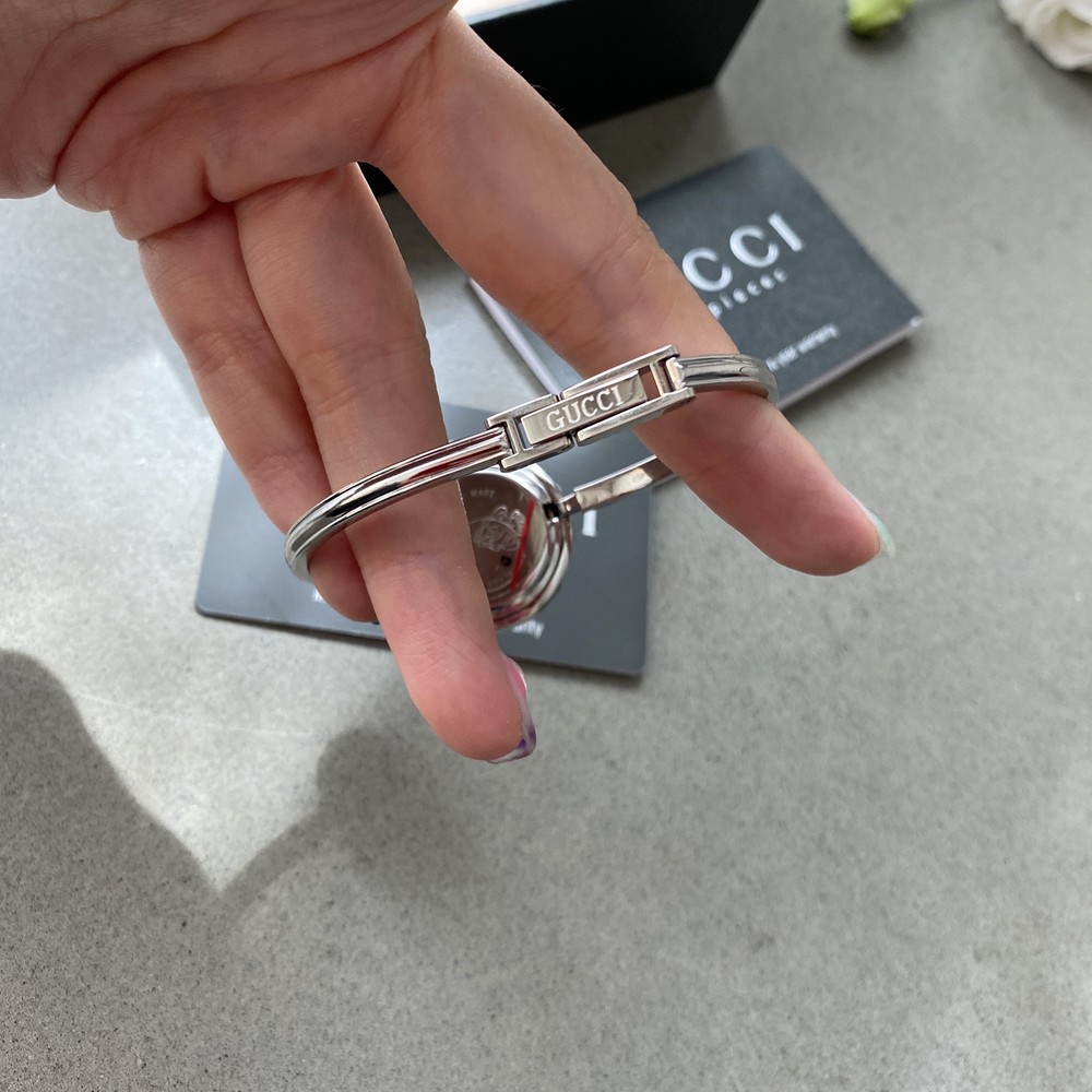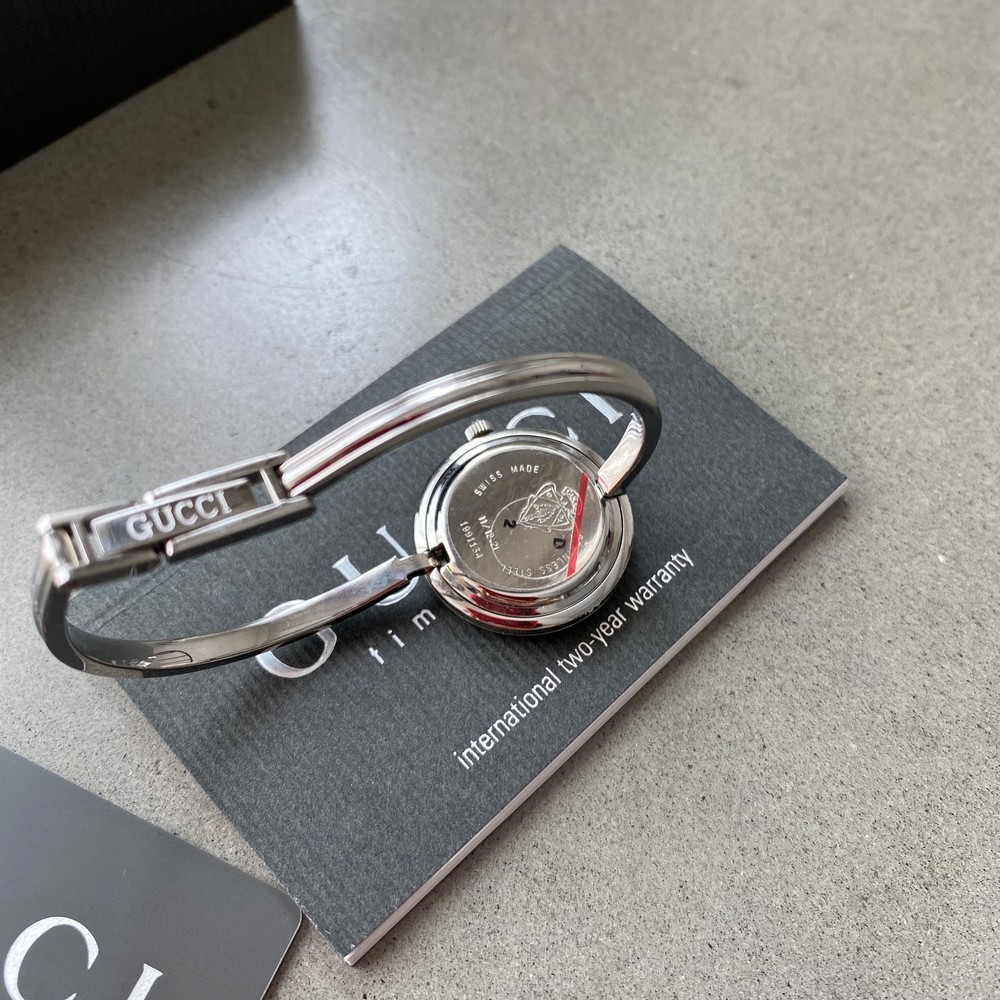 기존 구찌 베젤 교체 시계와 다르게 실버 케이스와 스트랩으로 만들어진 모델 입니다.