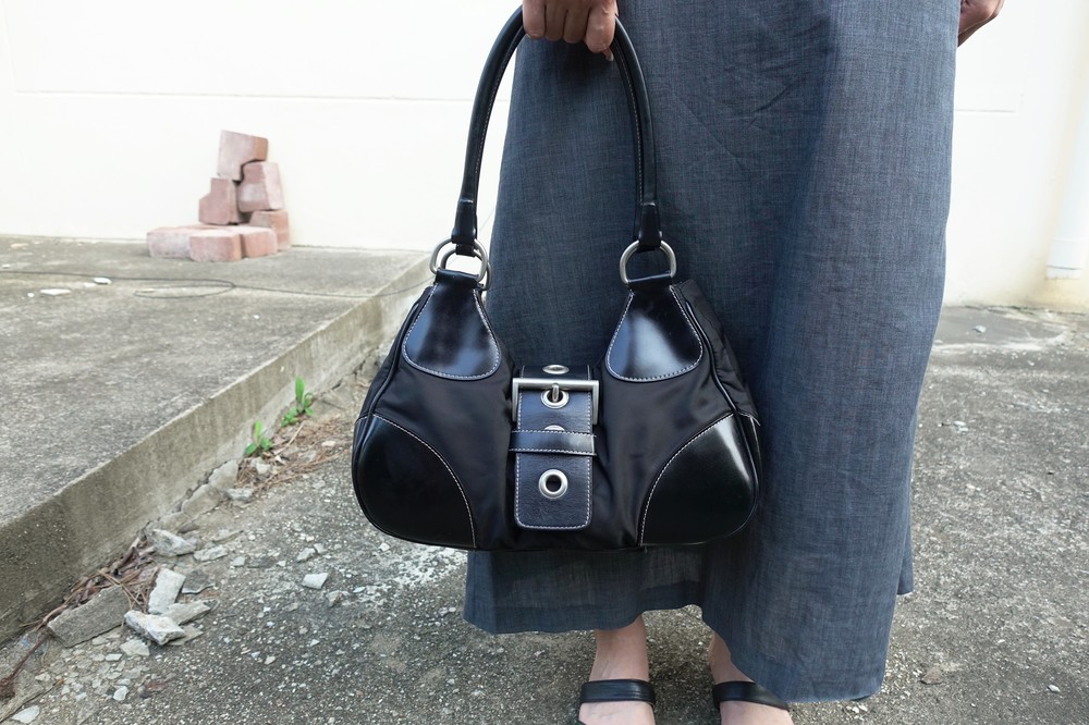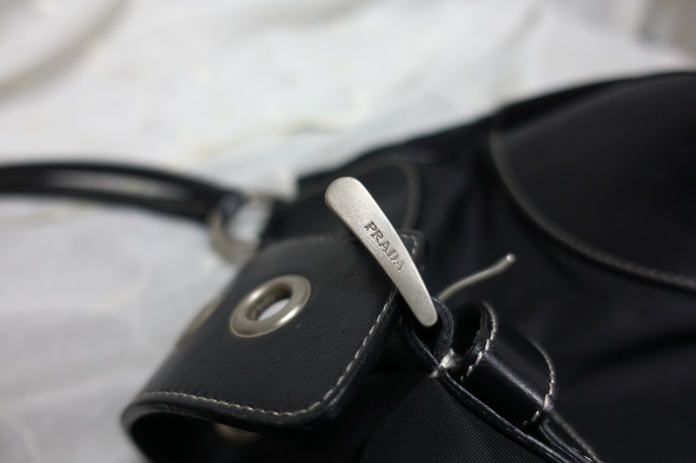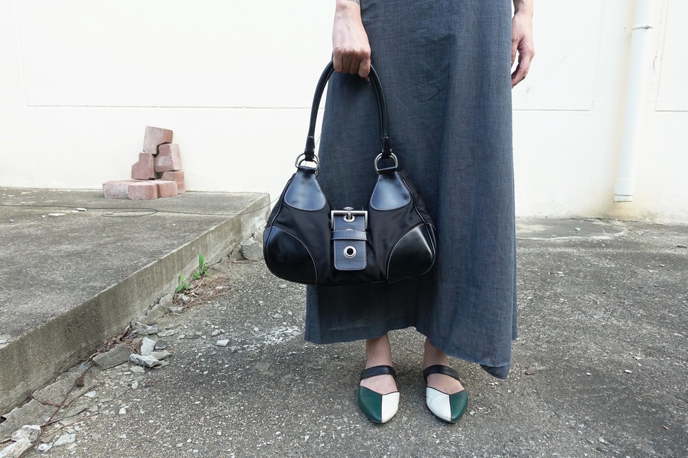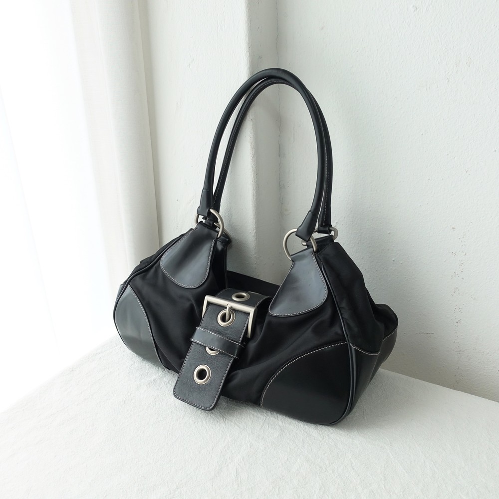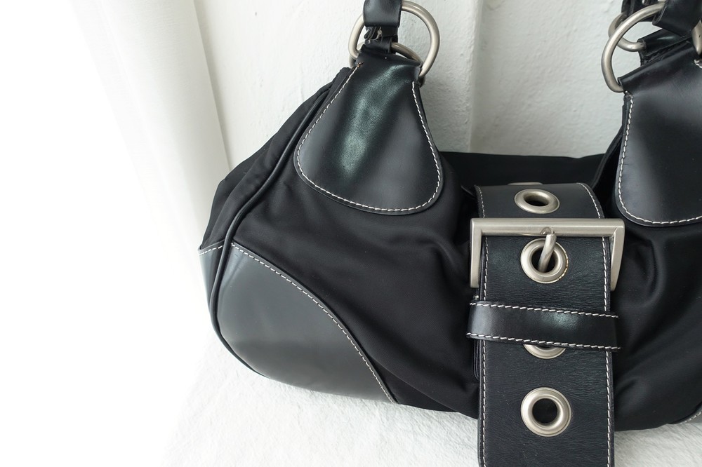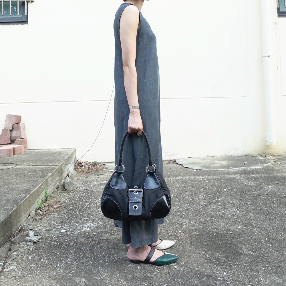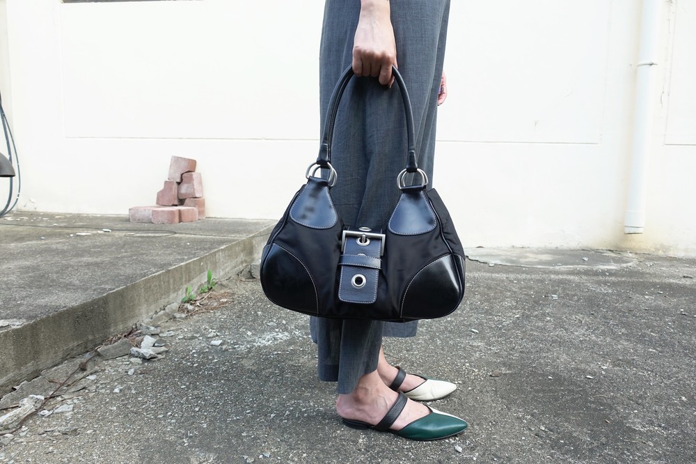 가죽 트림 파츠에 약간의 생활 기스들이 있지만 빈티지 프라다 모델 중