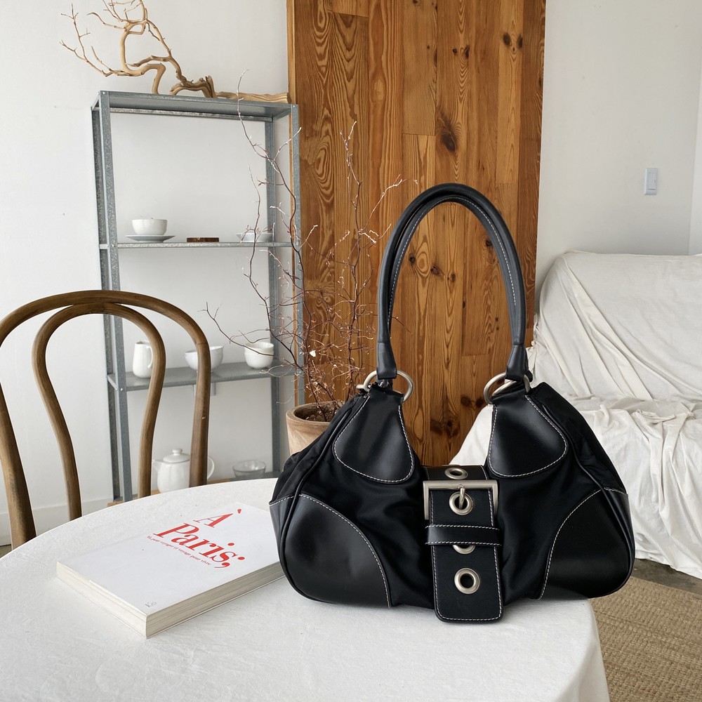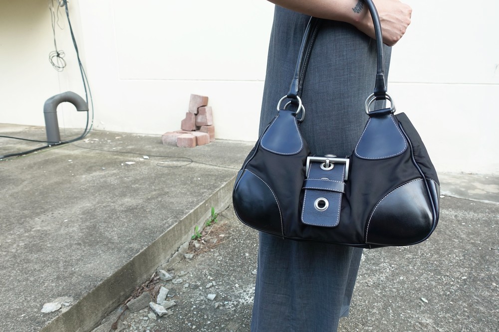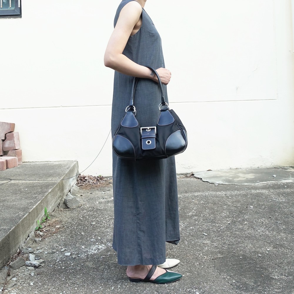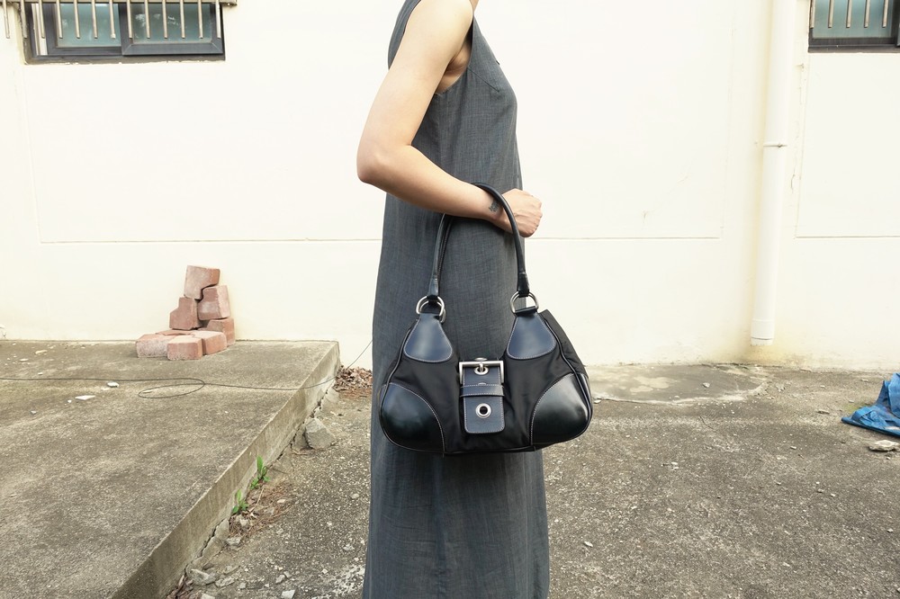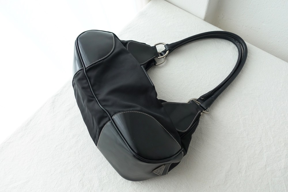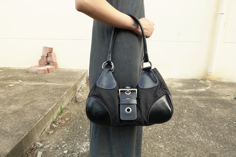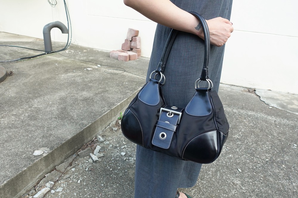 가죽 트림 파츠에 약간의 생활 기스들이 있지만 빈티지 프라다 모델 중