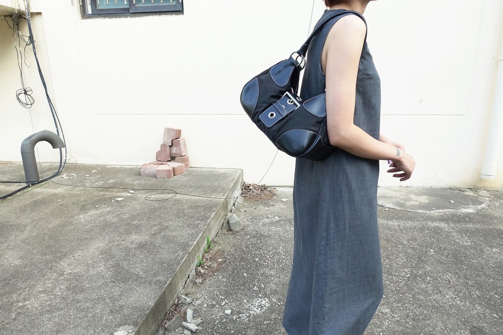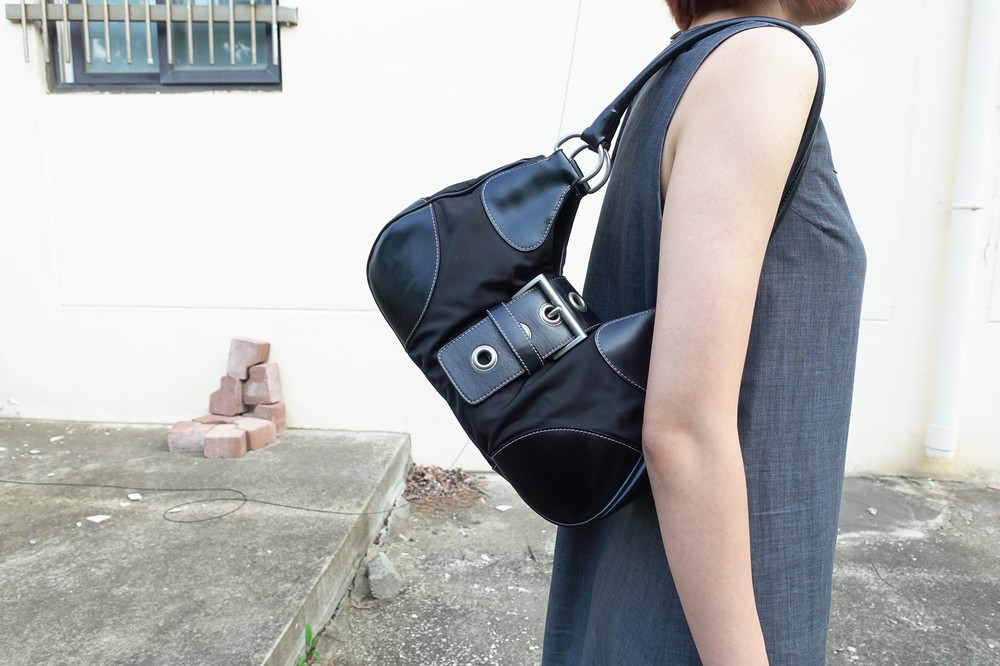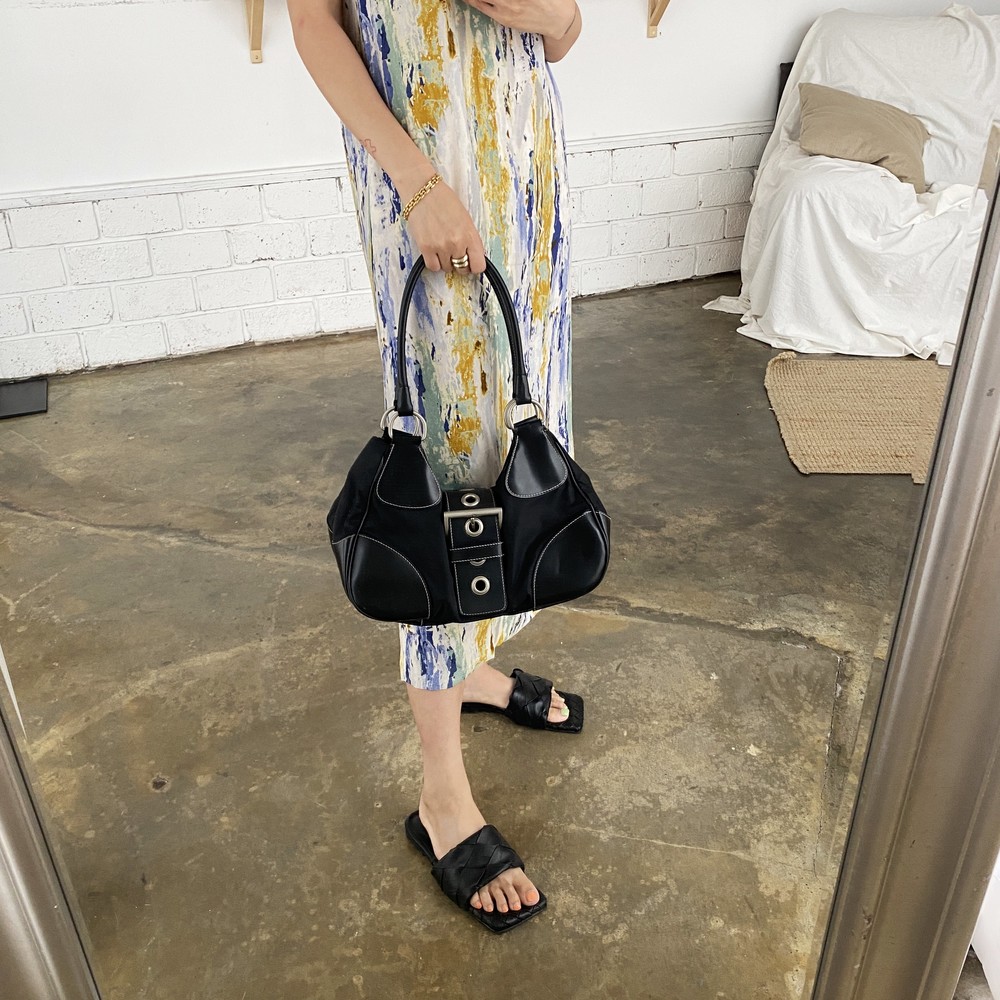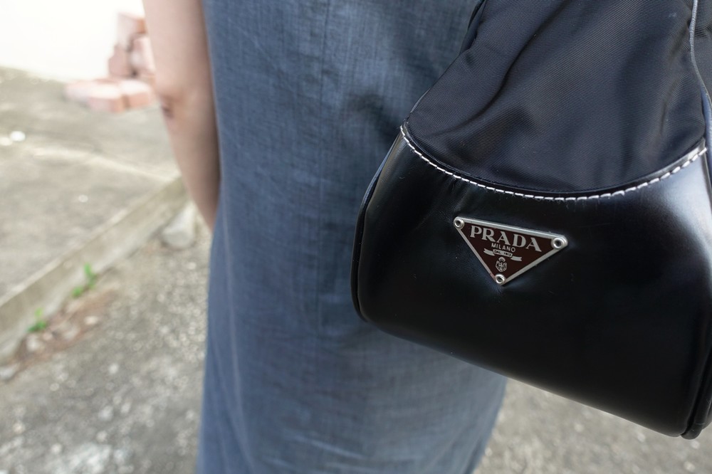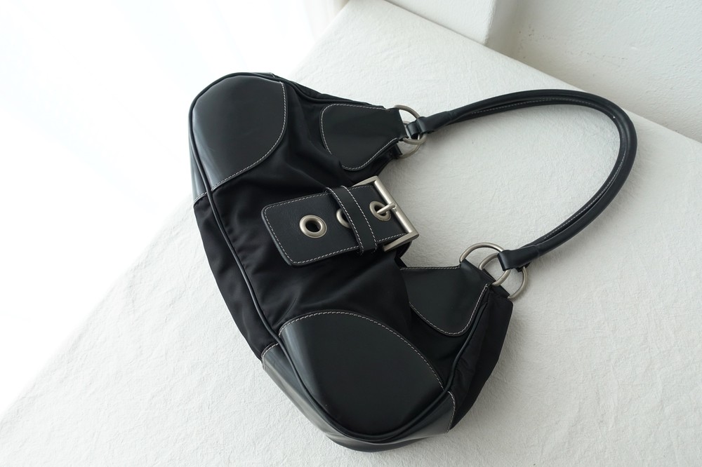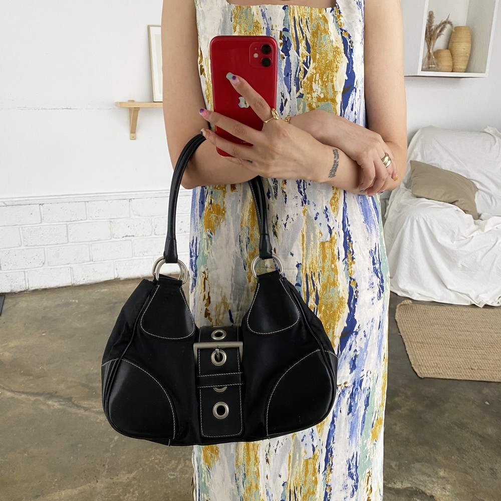가죽 트림 파츠에 약간의 생활 기스들이 있지만 빈티지 프라다 모델 중