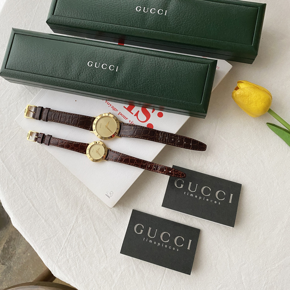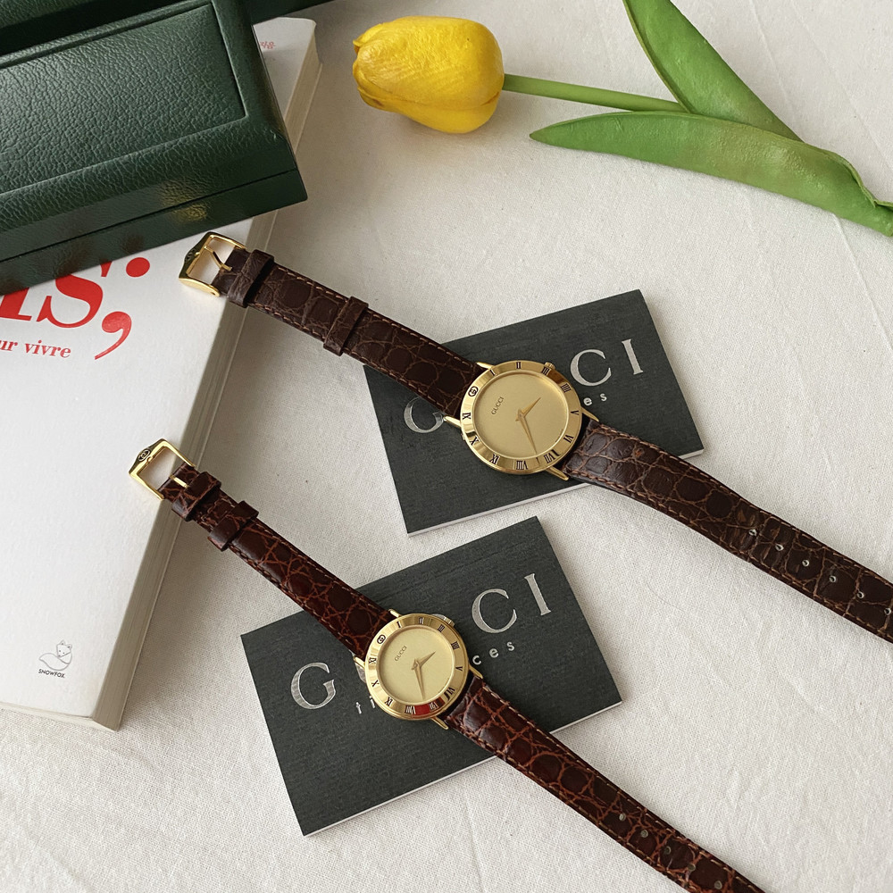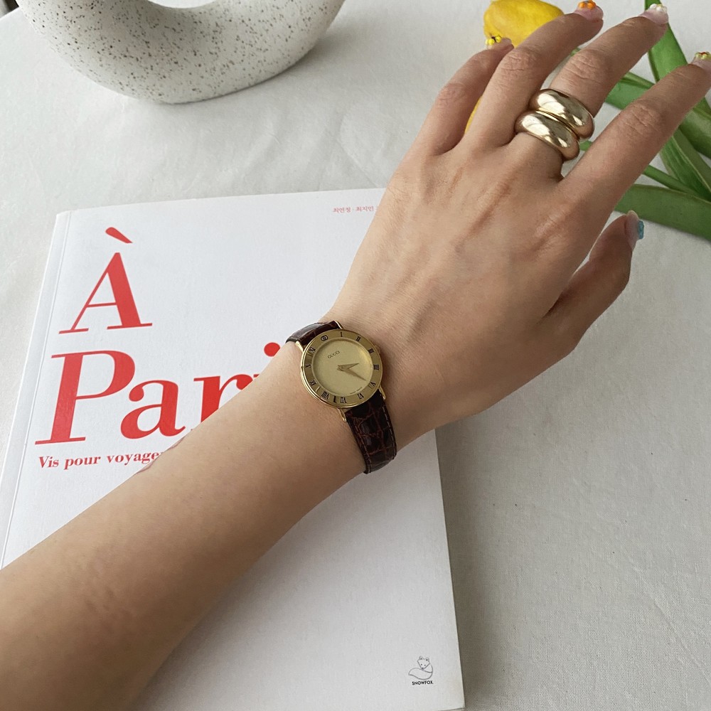 너무나도 잘 에이징 된 골드 다이얼과 구찌 심볼이 인상적인 빈티지 구찌 시계이며