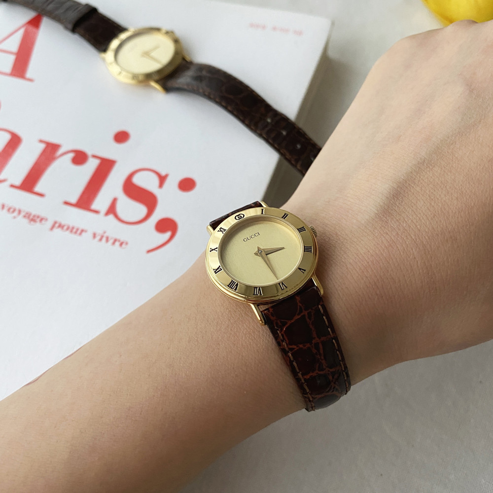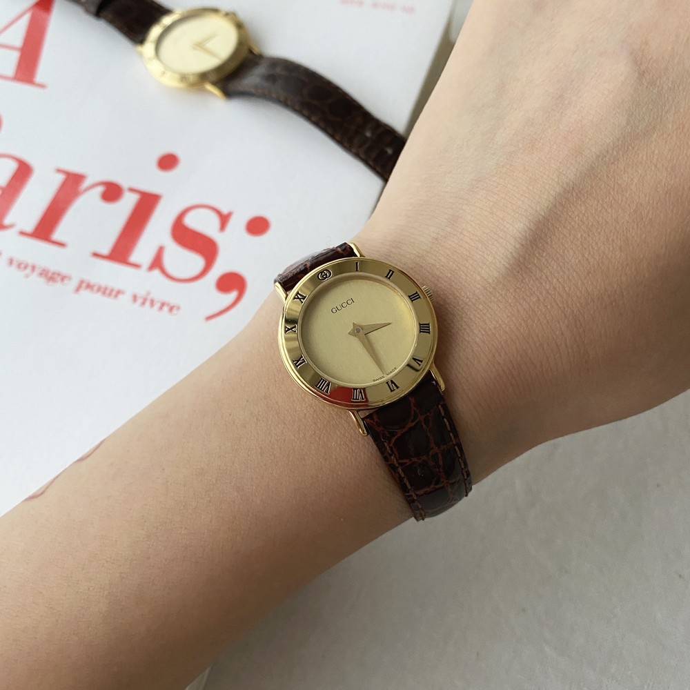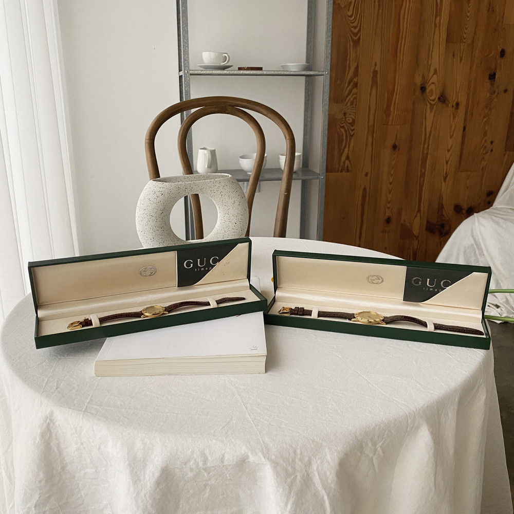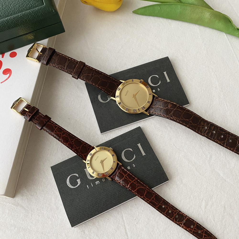 너무나도 잘 에이징 된 골드 다이얼과 구찌 심볼이 인상적인 빈티지 구찌 시계이며