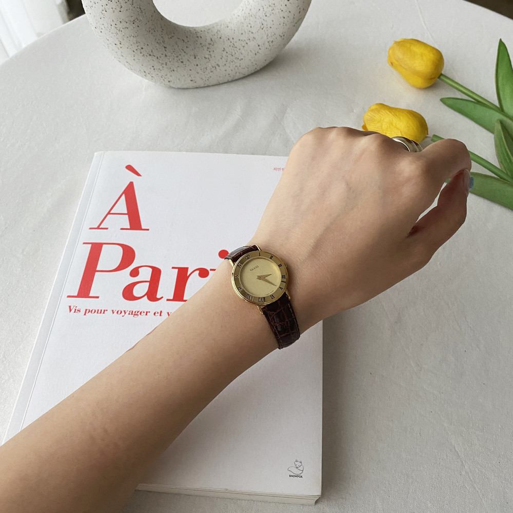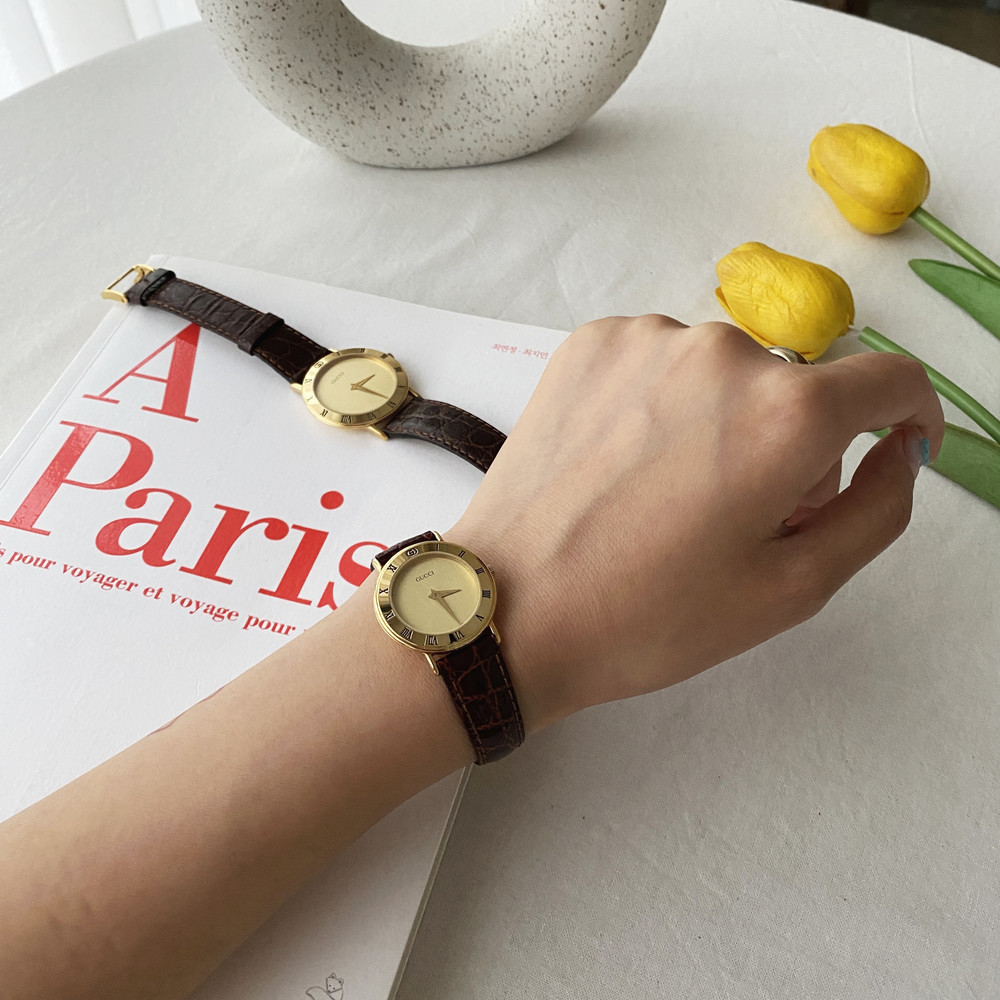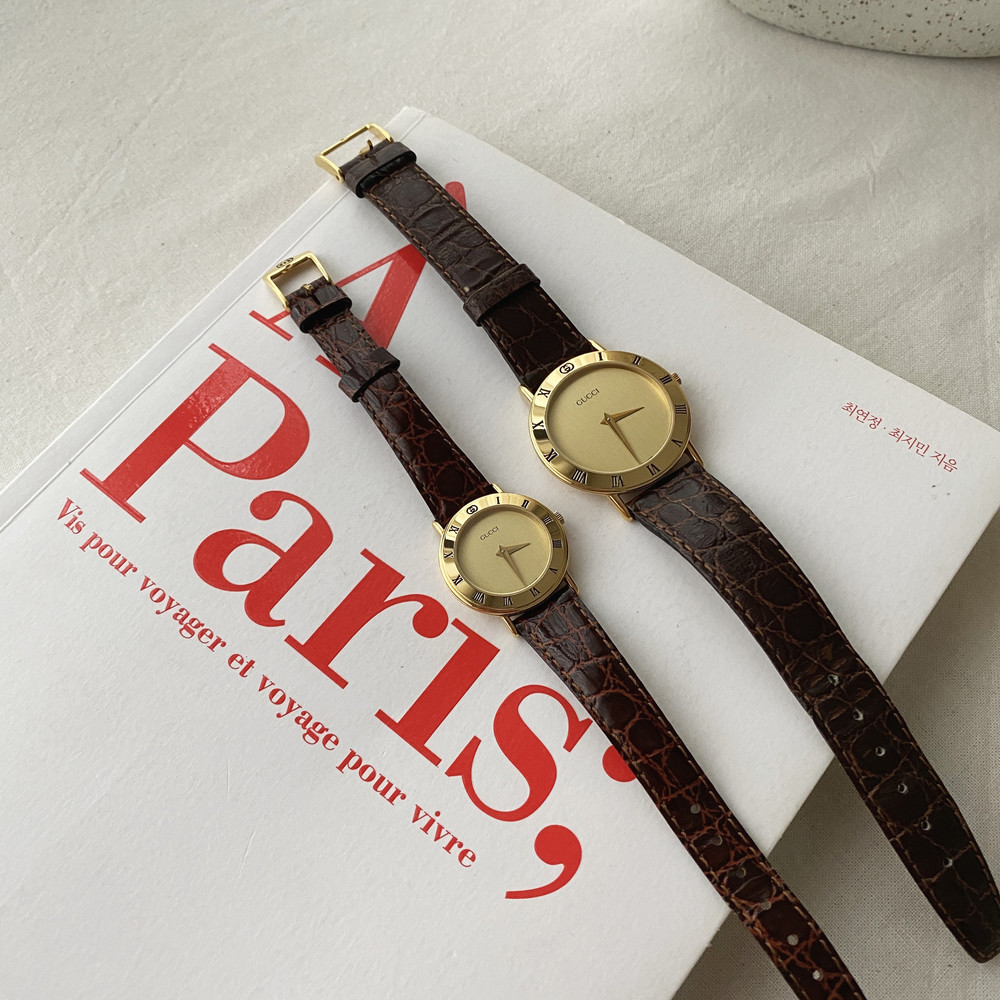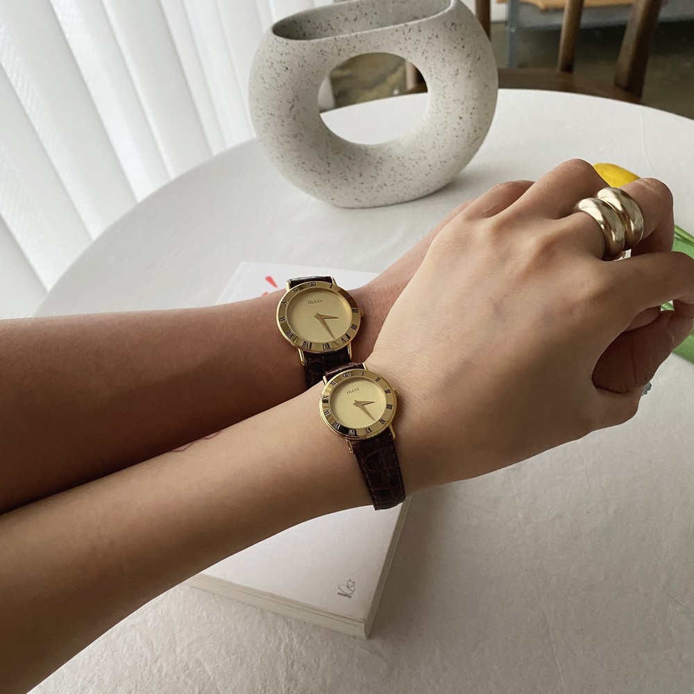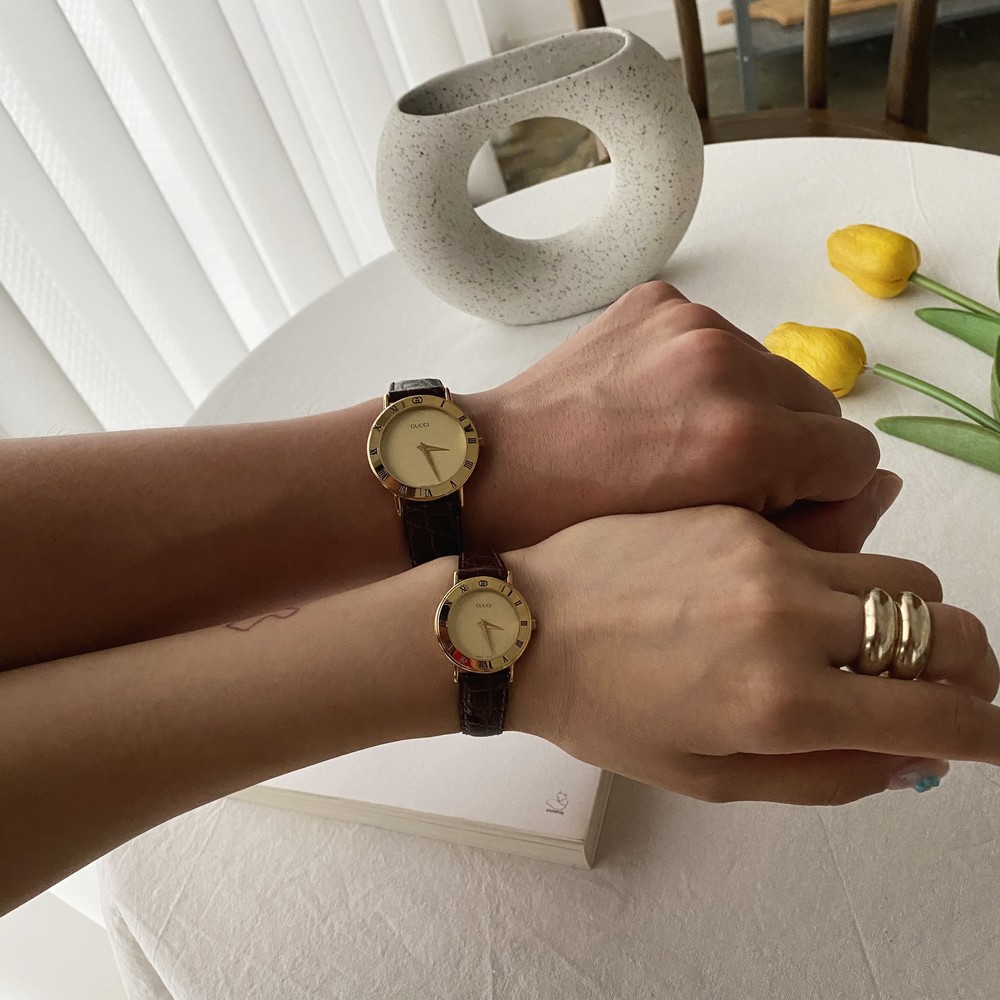 빈티지 모델에서만 볼 수 있는 디자인이라 유니크한 구찌 시계입니다.