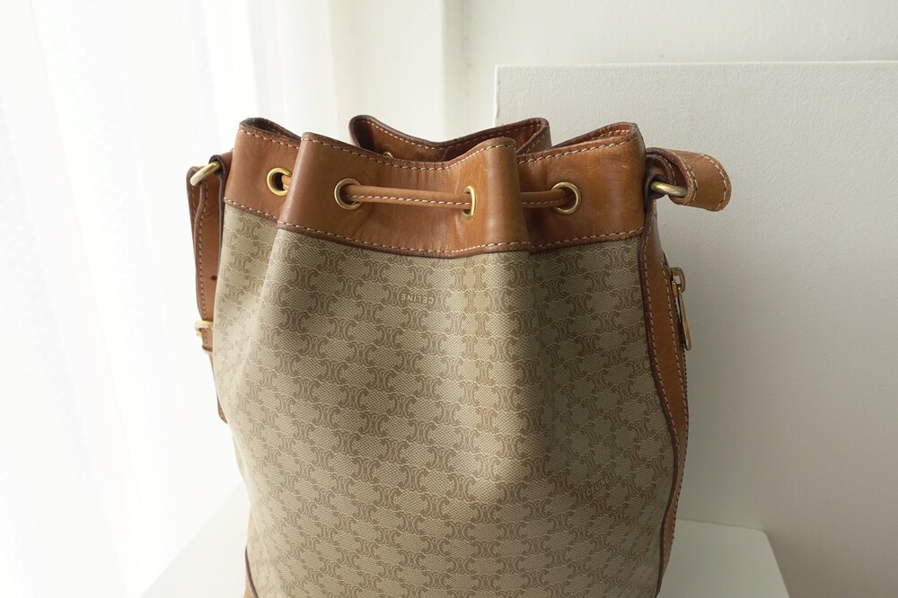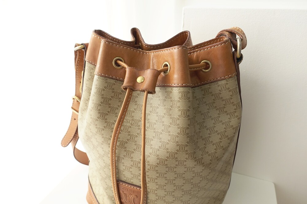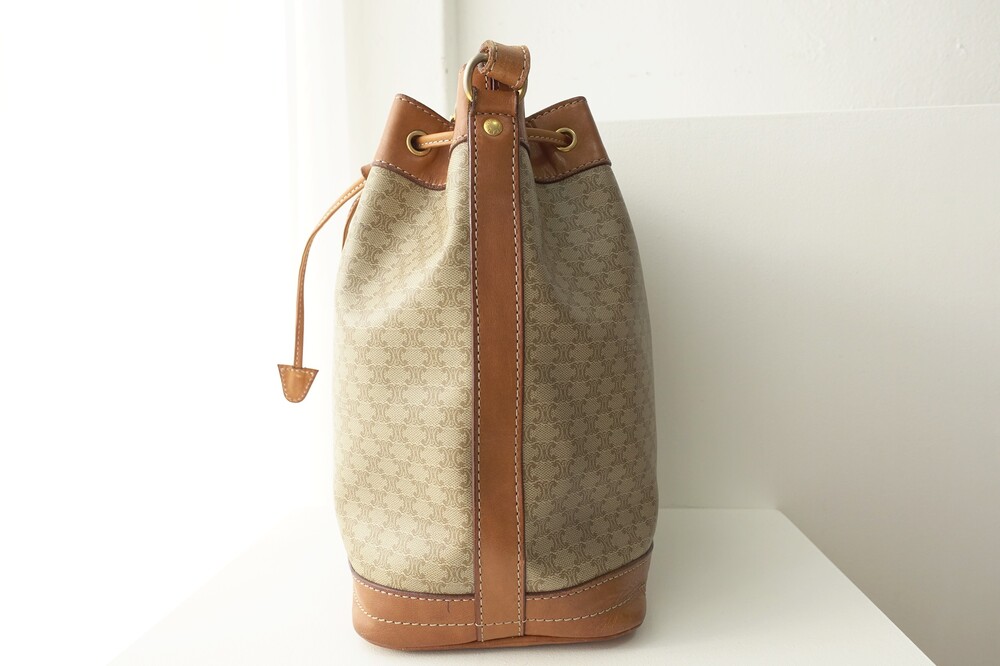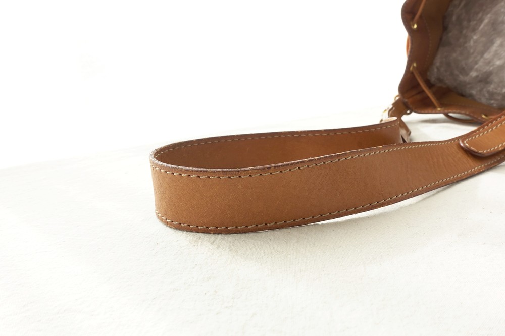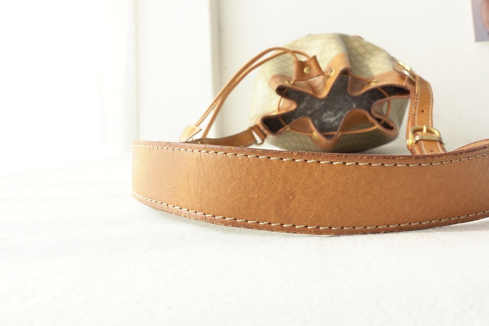 너무나도 잘 에이징 된 내추럴 레더와 마카담 바디 조합이 좋은 버킷 백입니다.