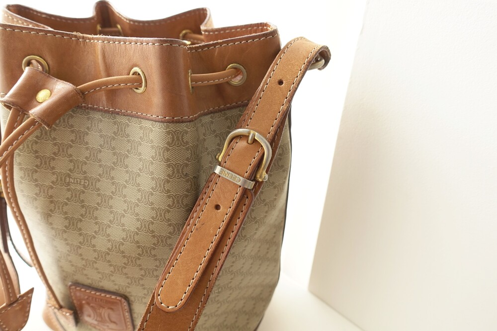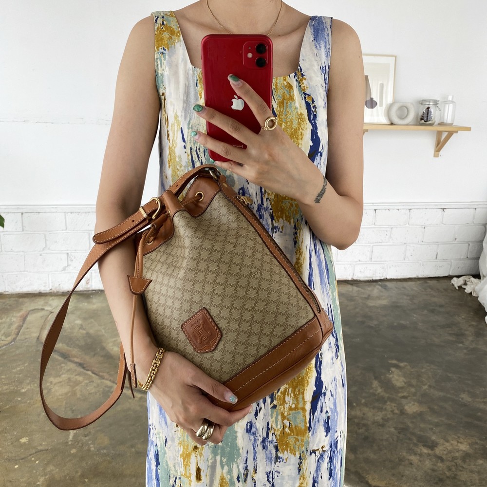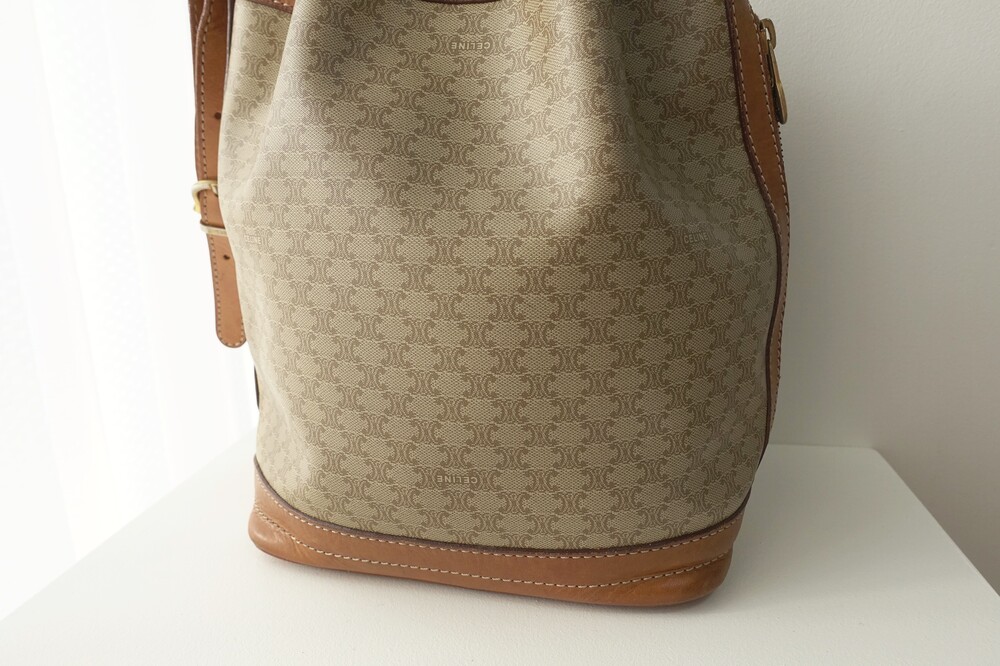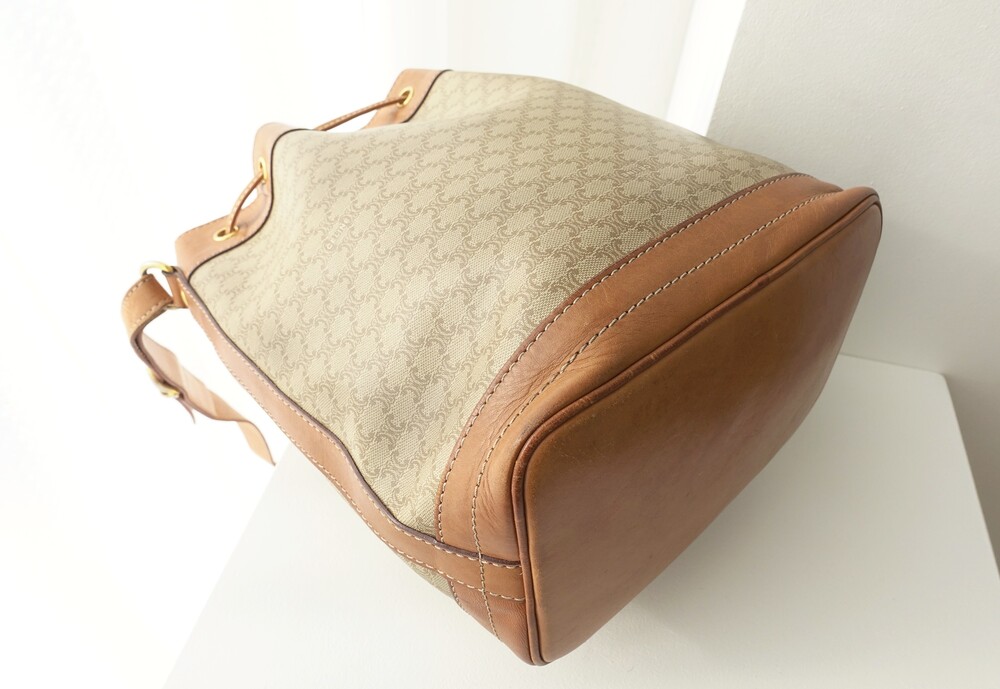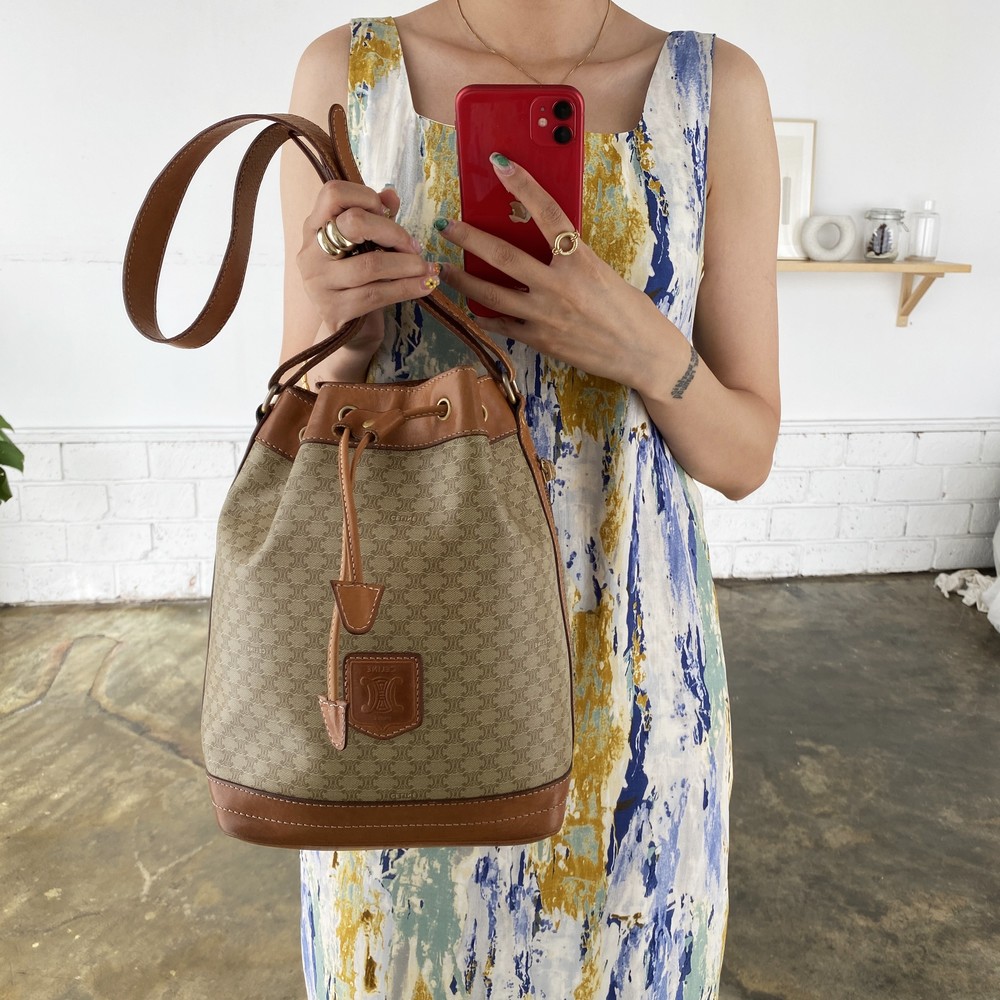 너무나도 잘 에이징 된 내추럴 레더와 마카담 바디 조합이 좋은 버킷 백입니다.