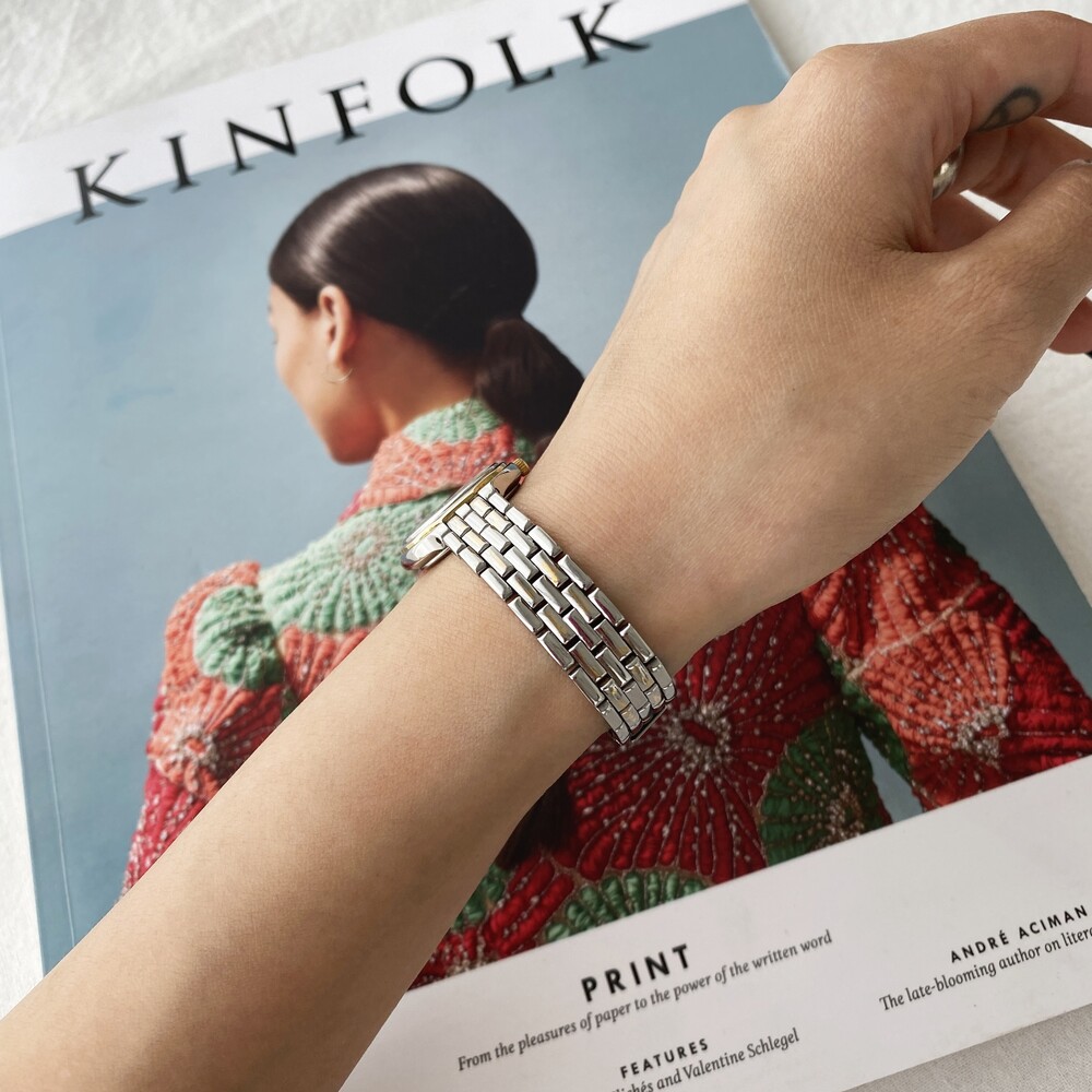 시계 스트랩의 골드 톤 부분에 색 빠짐이 있습니다.