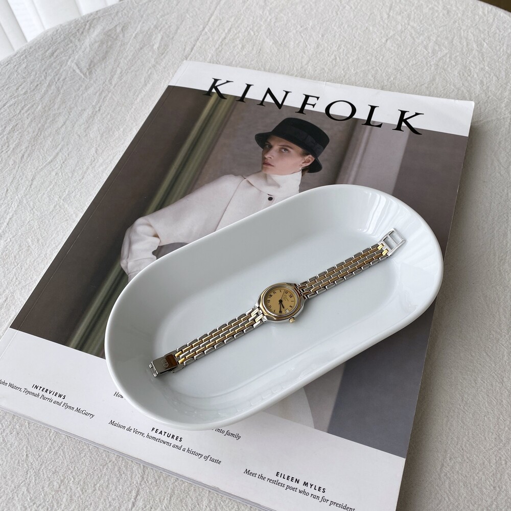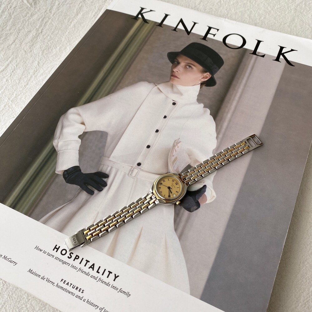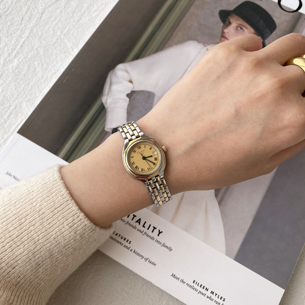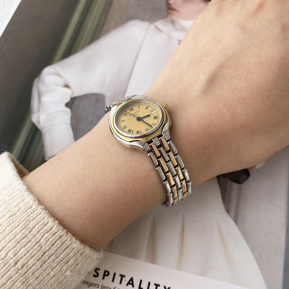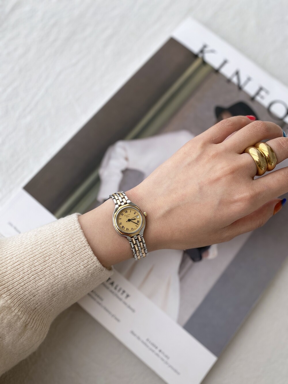 투톤 케이스와 스트랩, 그리고 샴페인 톤의 다이얼 위를