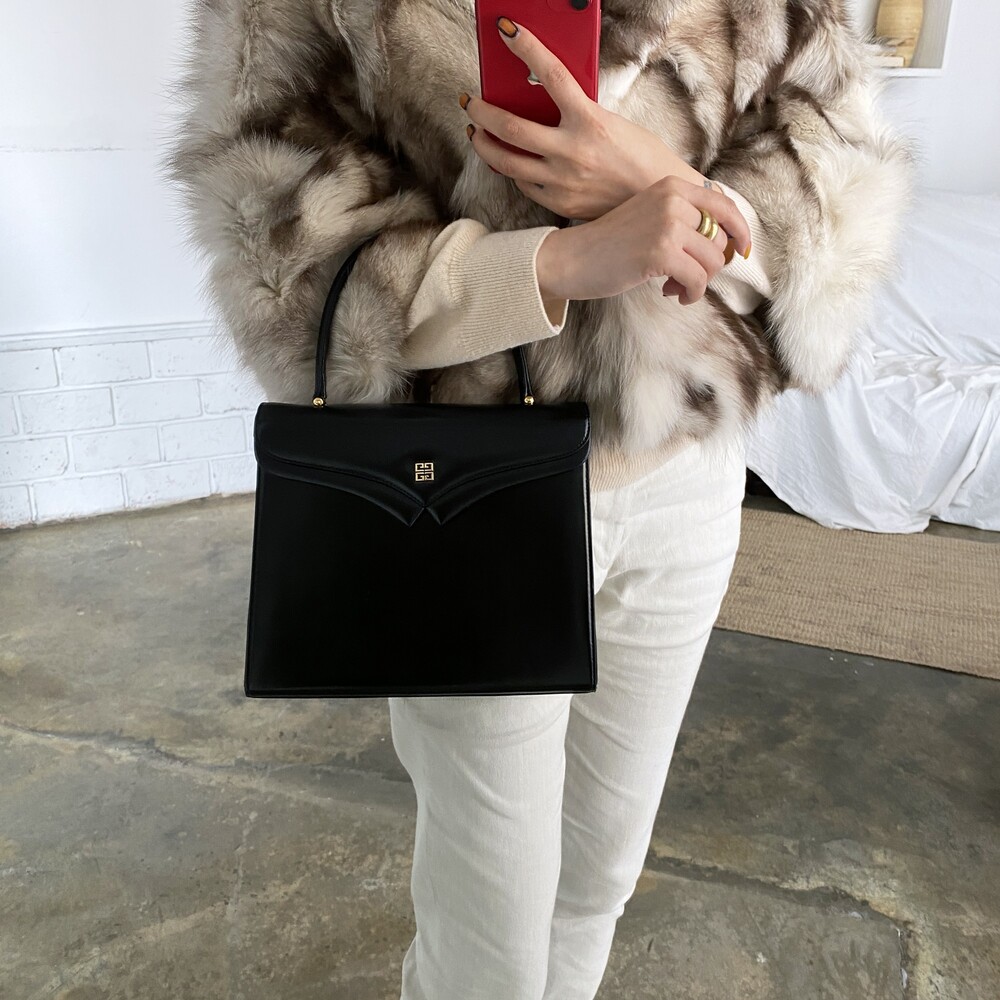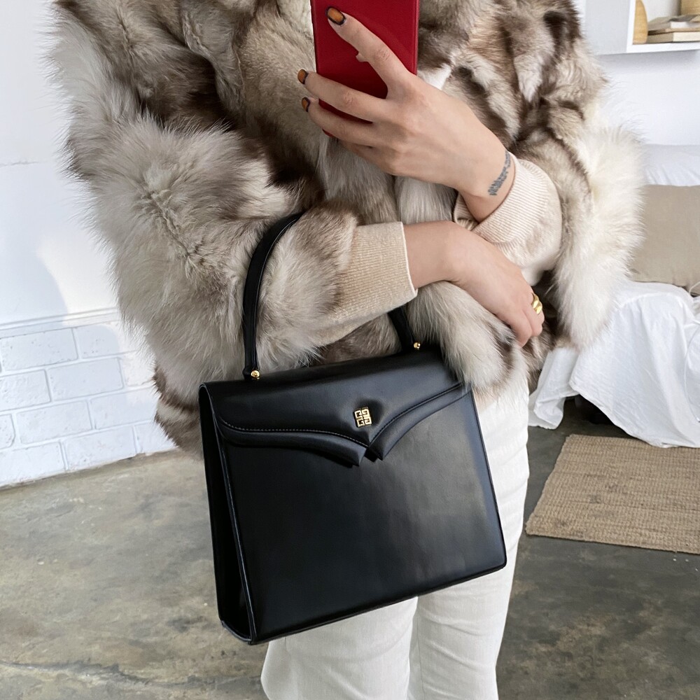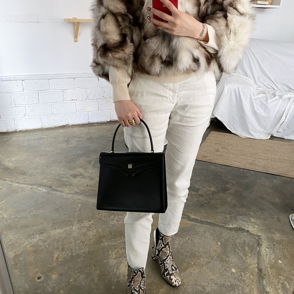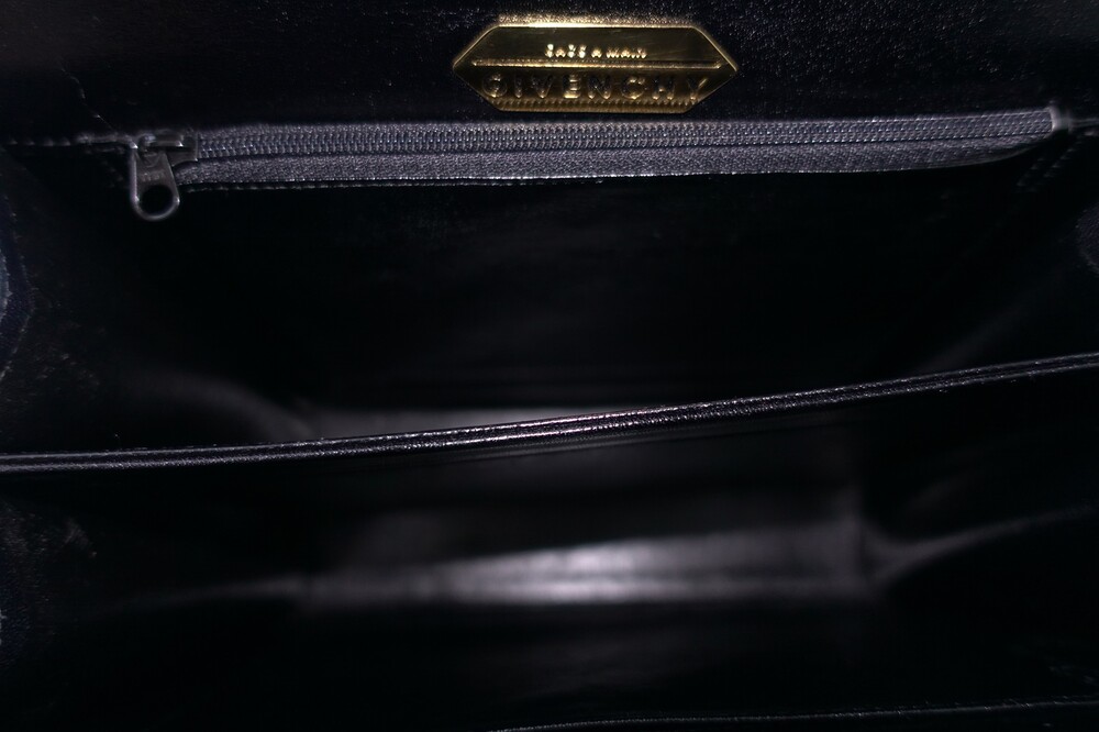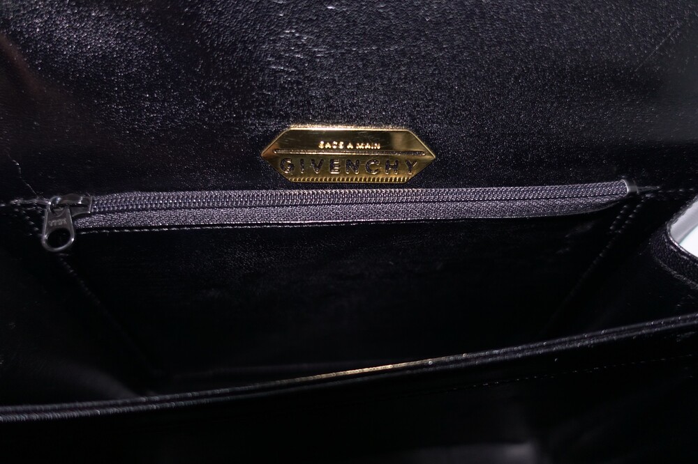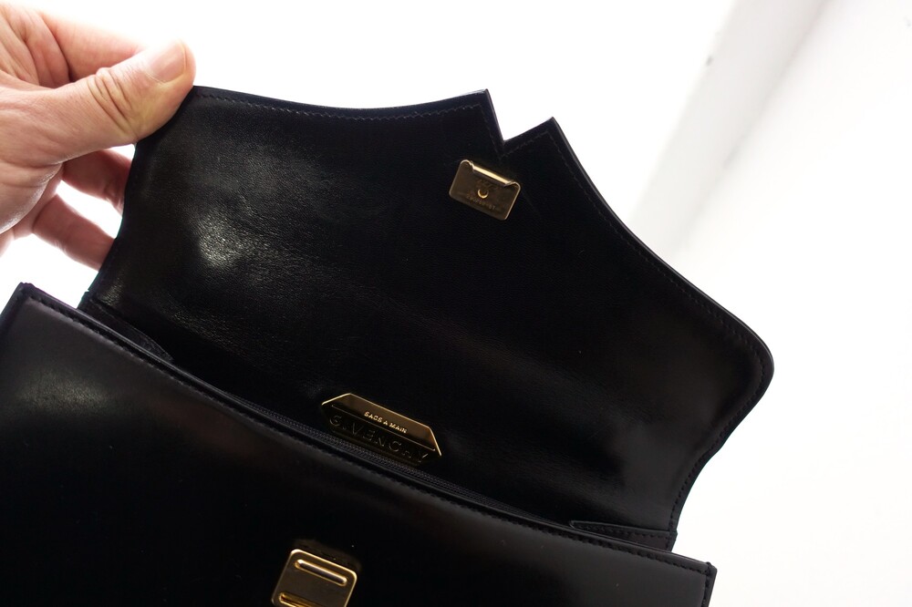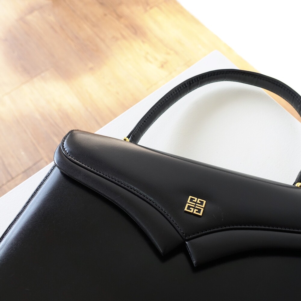 부드러운 블랙톤의 가죽 트림과 중앙의 지방시 심볼이 굉장히 매력적인 가방입니다.