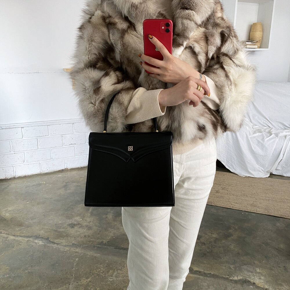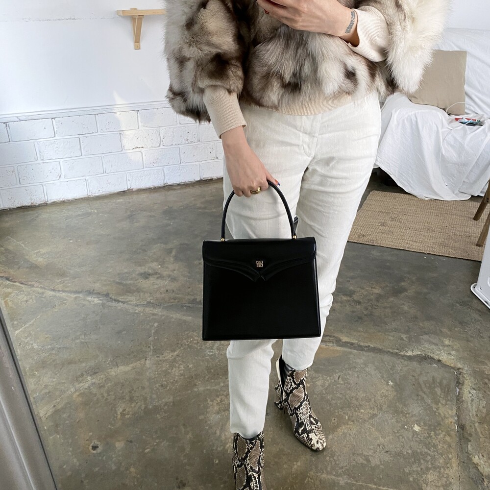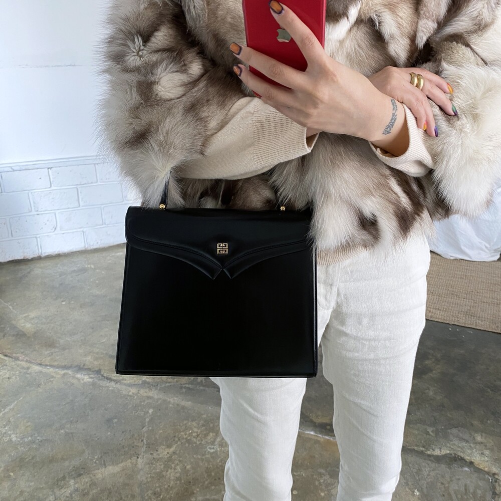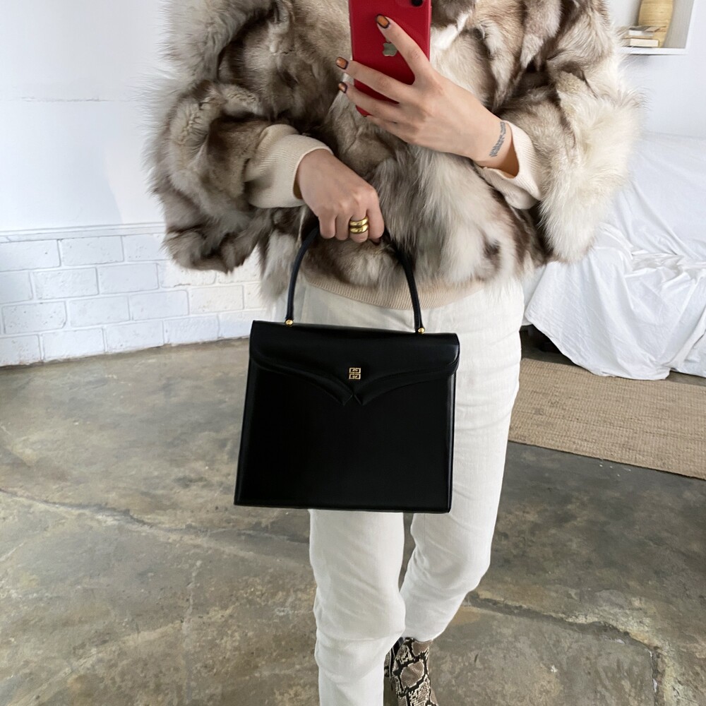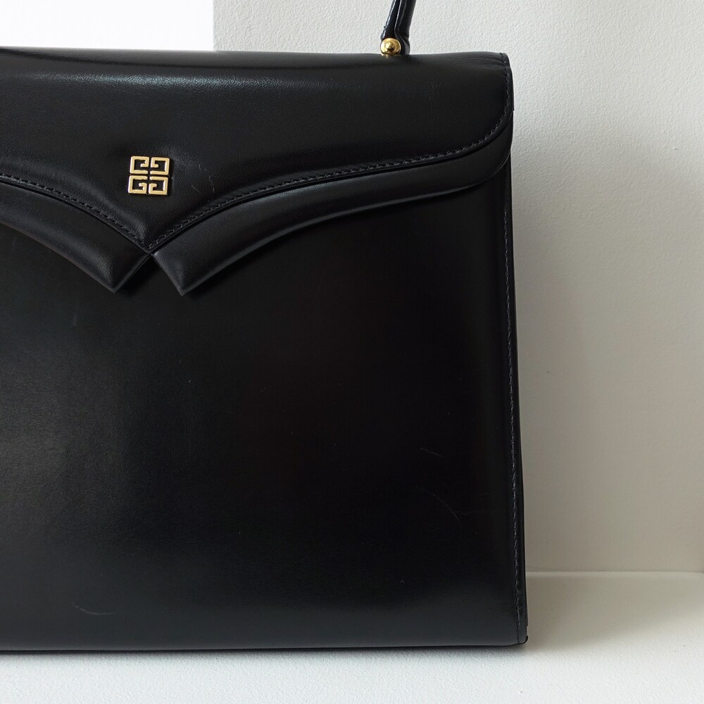 부드러운 블랙톤의 가죽 트림과 중앙의 지방시 심볼이 굉장히 매력적인 가방입니다.
