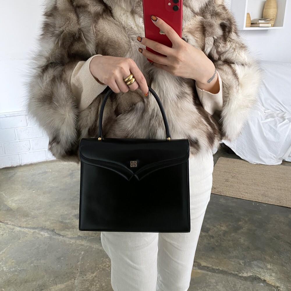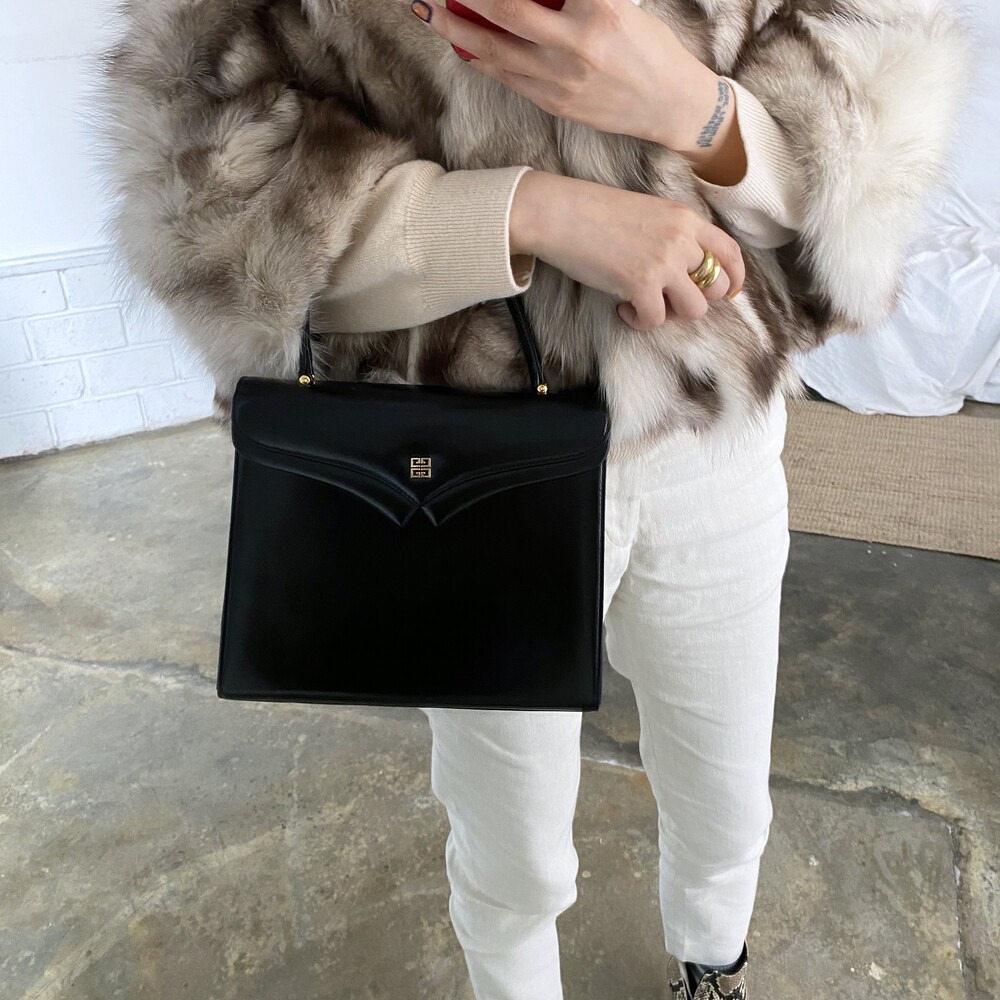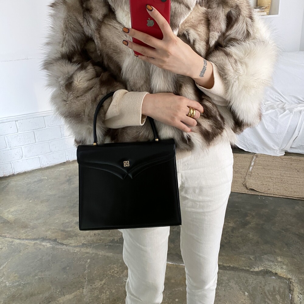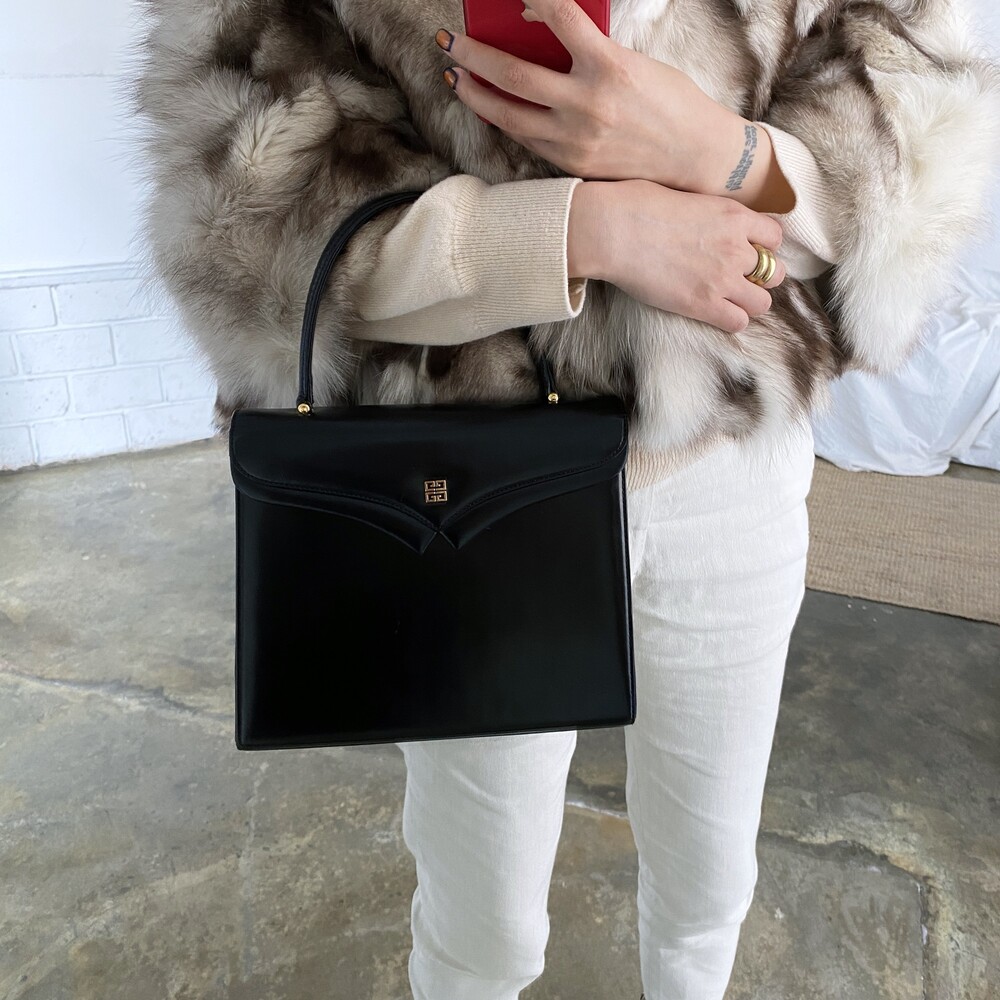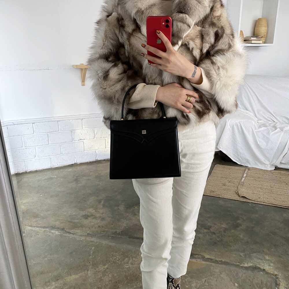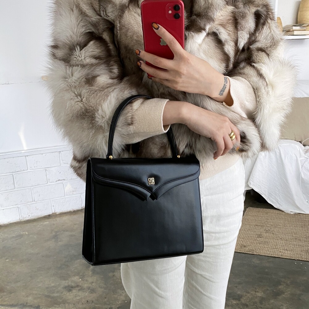 부드러운 블랙톤의 가죽 트림과 중앙의 지방시 심볼이 굉장히 매력적인 가방입니다.
