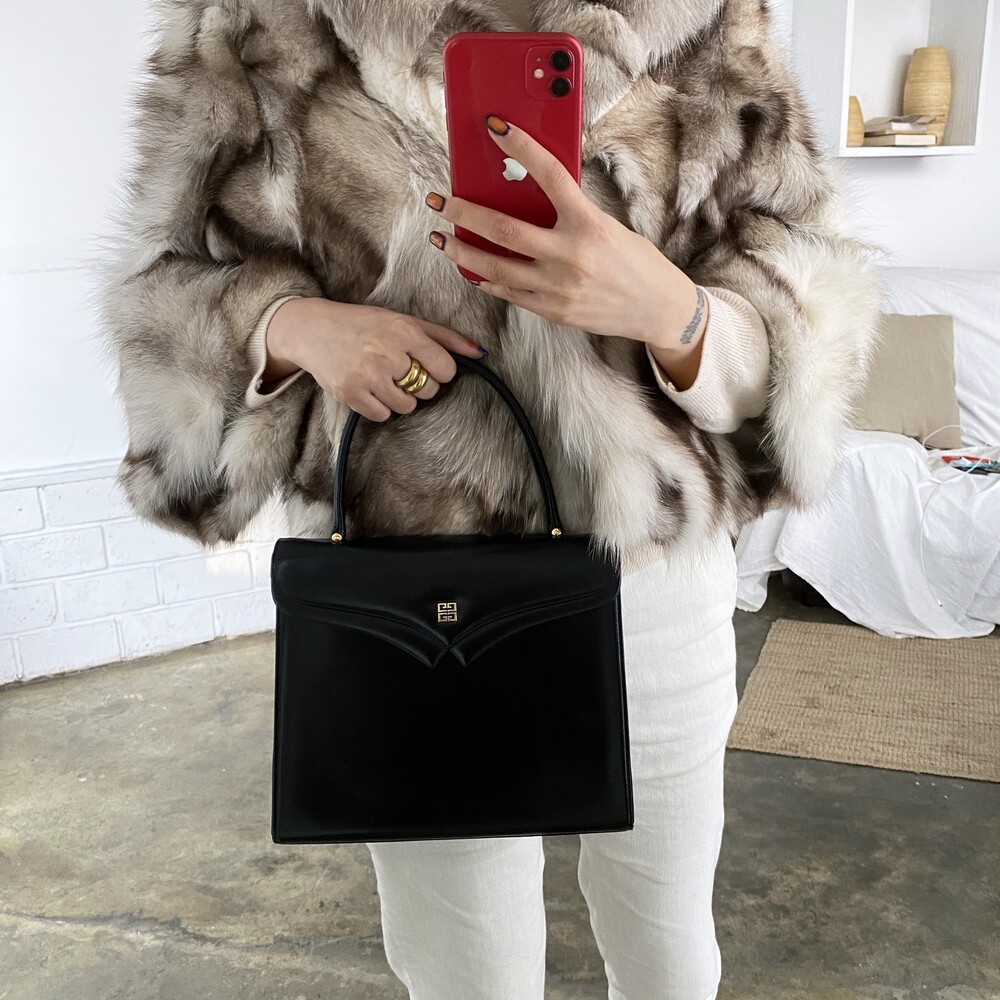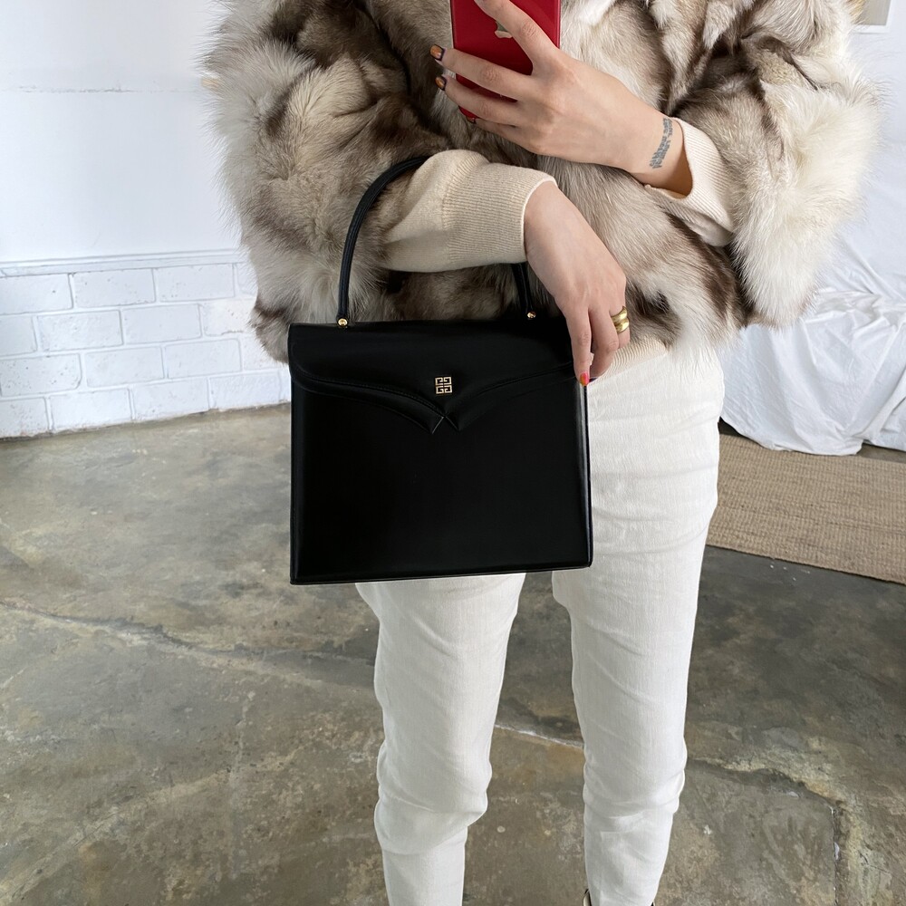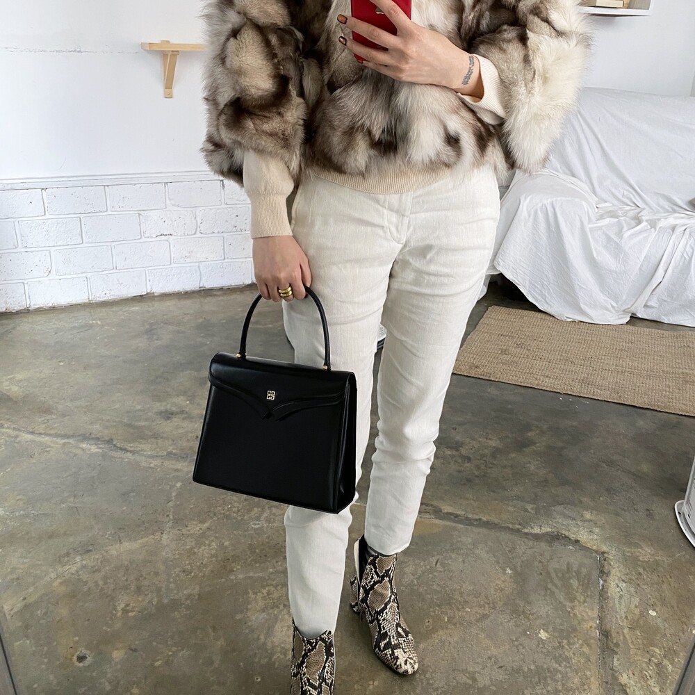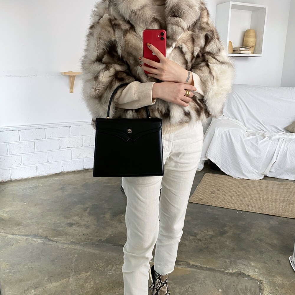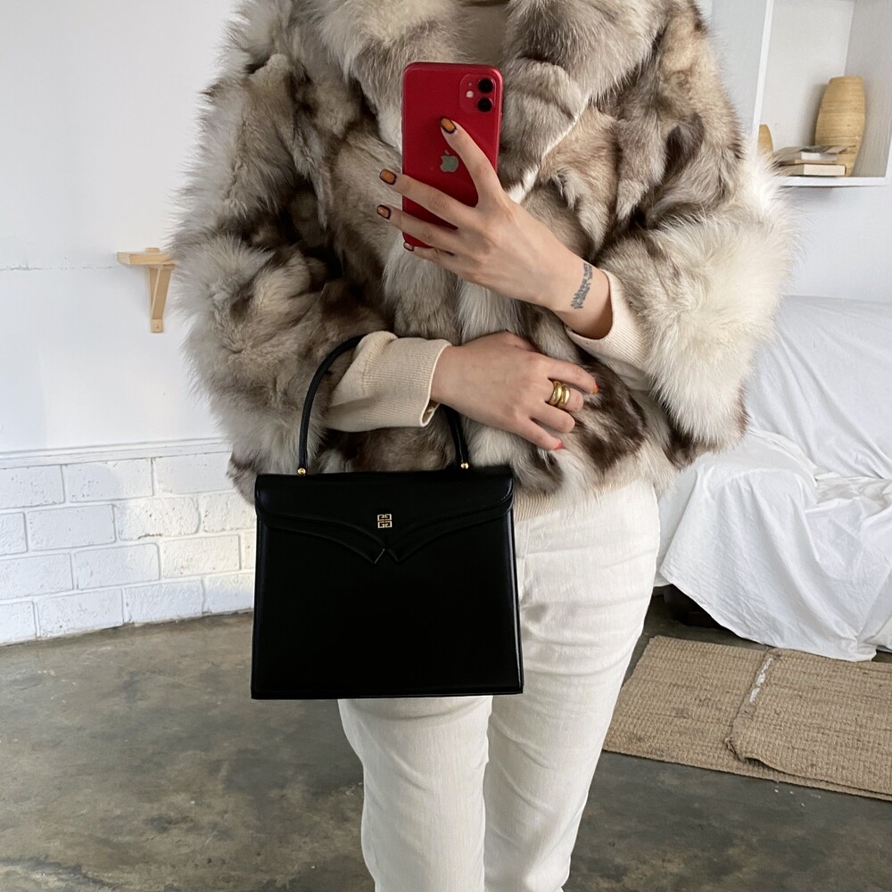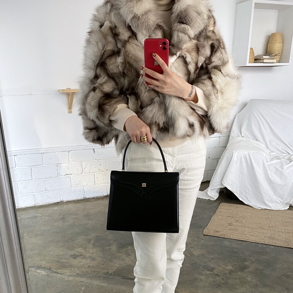 부드러운 블랙톤의 가죽 트림과 중앙의 지방시 심볼이 굉장히 매력적인 가방입니다.