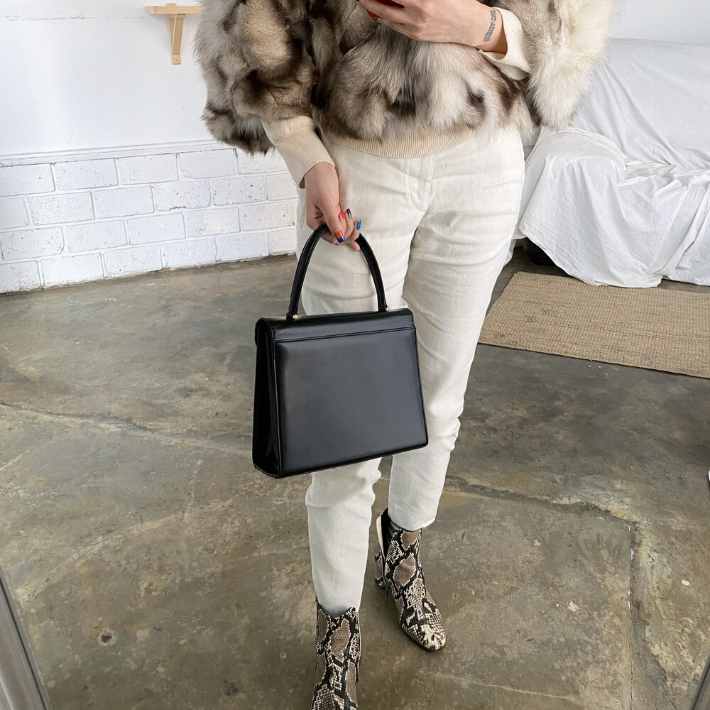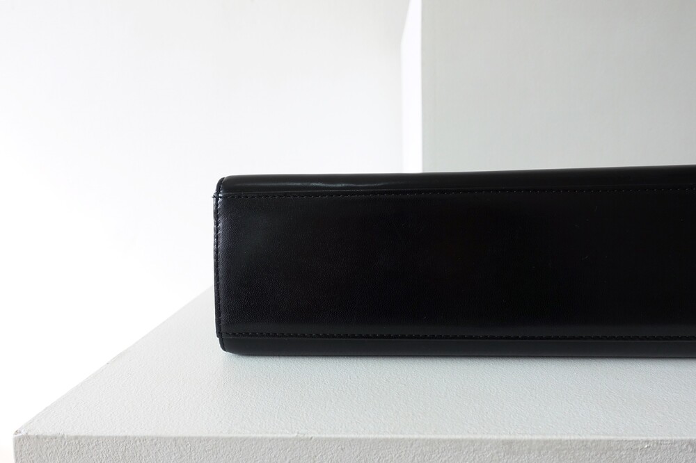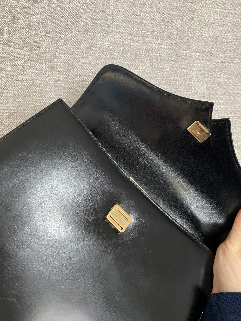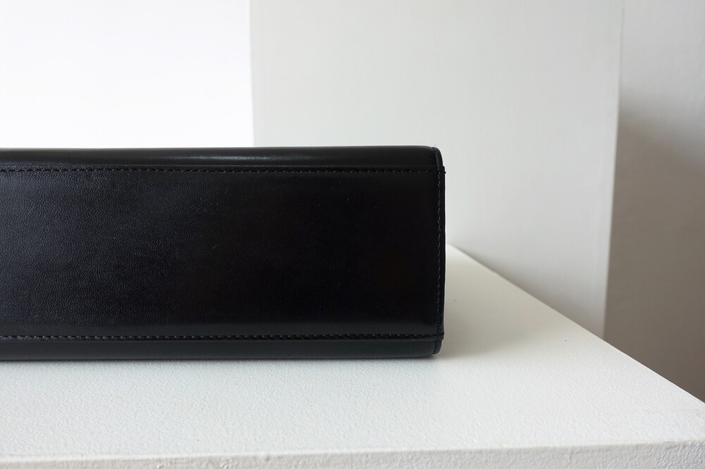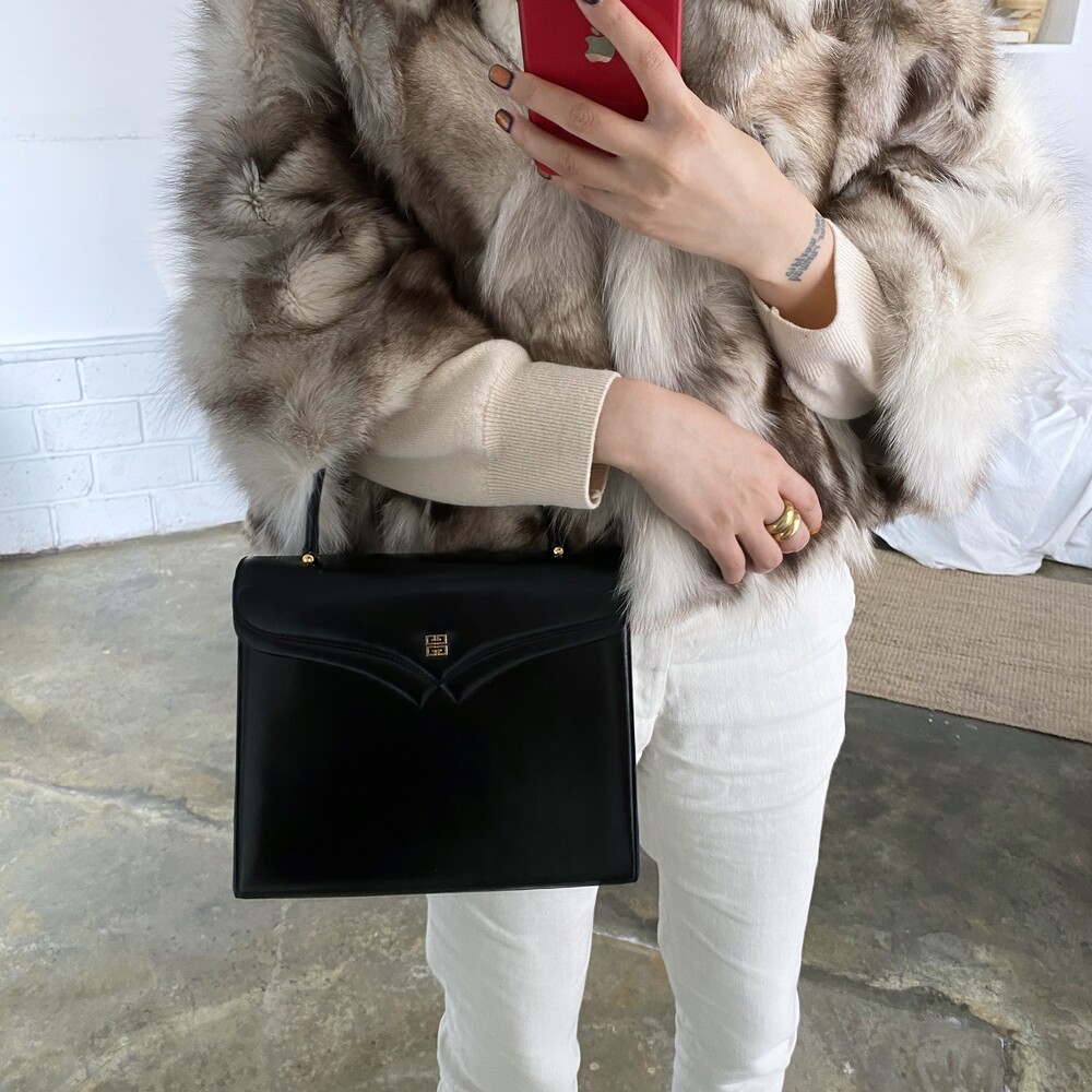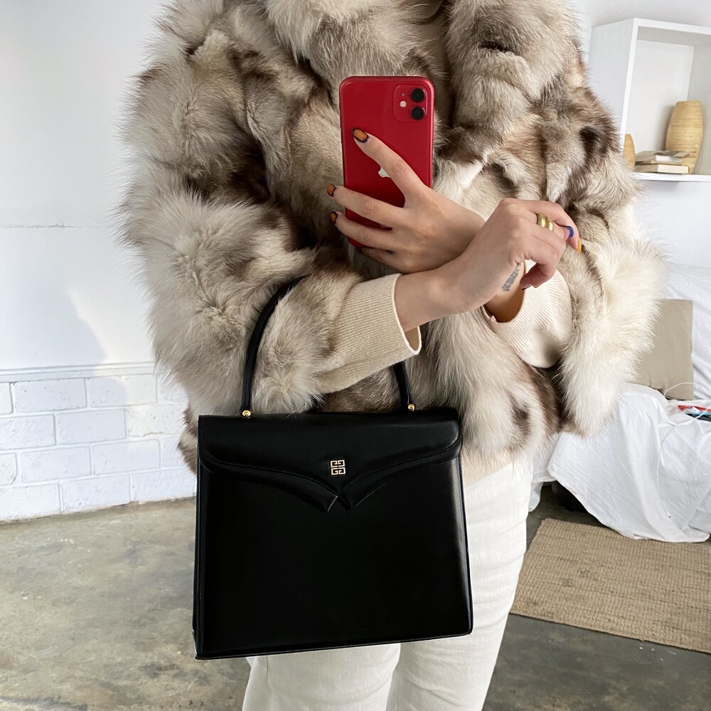 부드러운 블랙톤의 가죽 트림과 중앙의 지방시 심볼이 굉장히 매력적인 가방입니다.